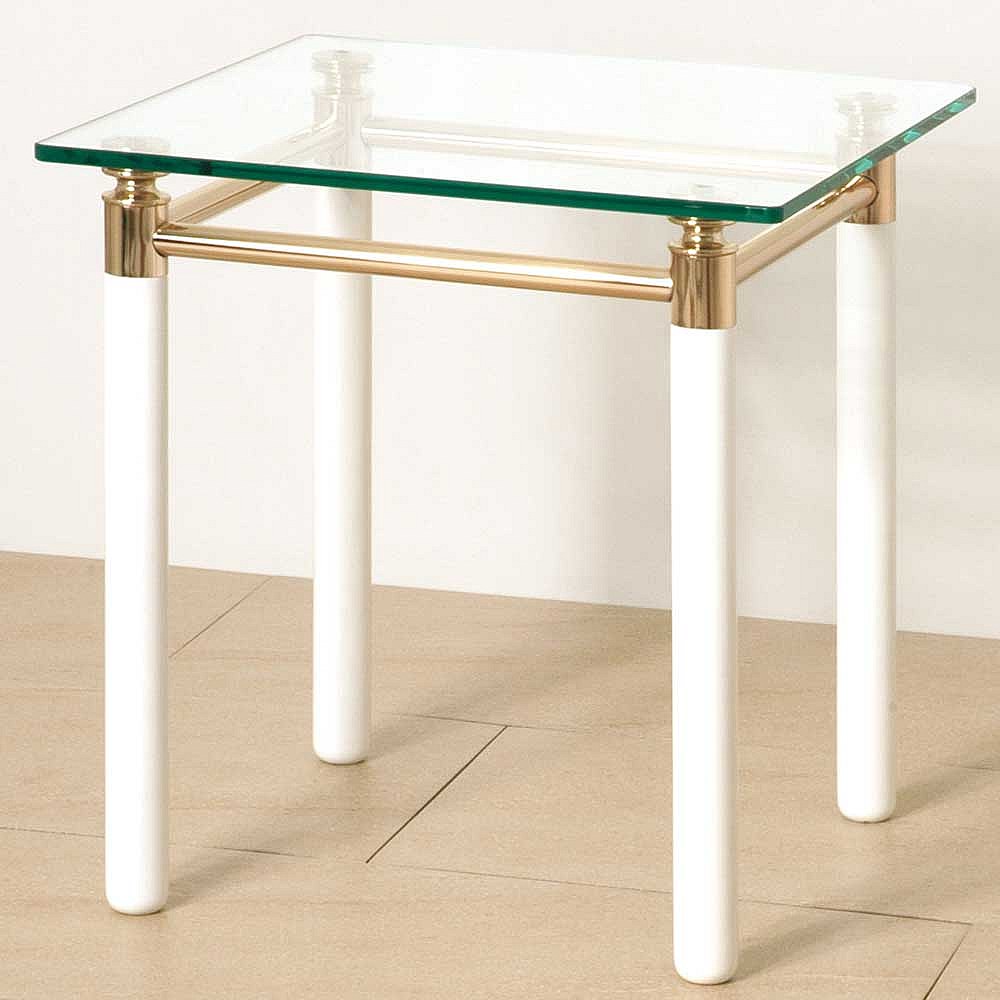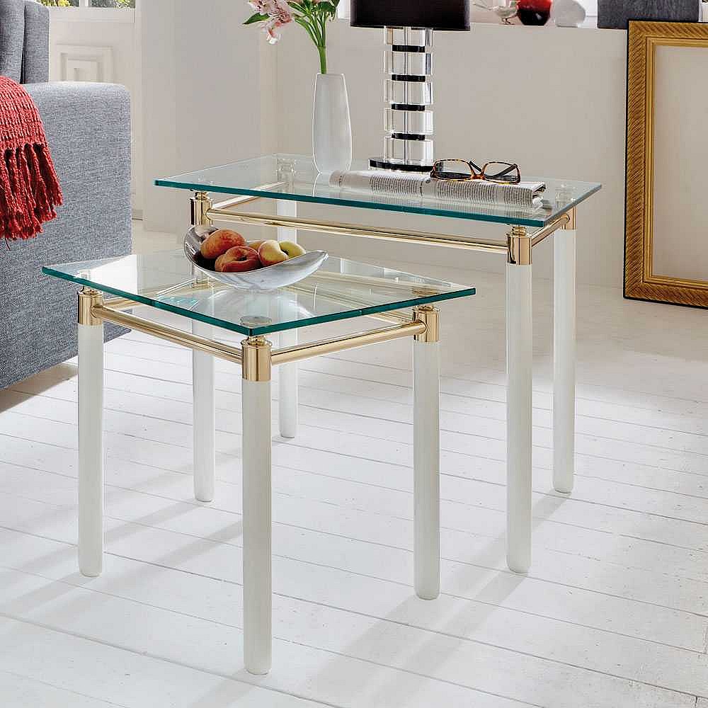 Beistelltisch in Weiß-Goldfarben Klarglasplatte