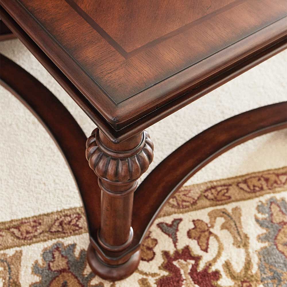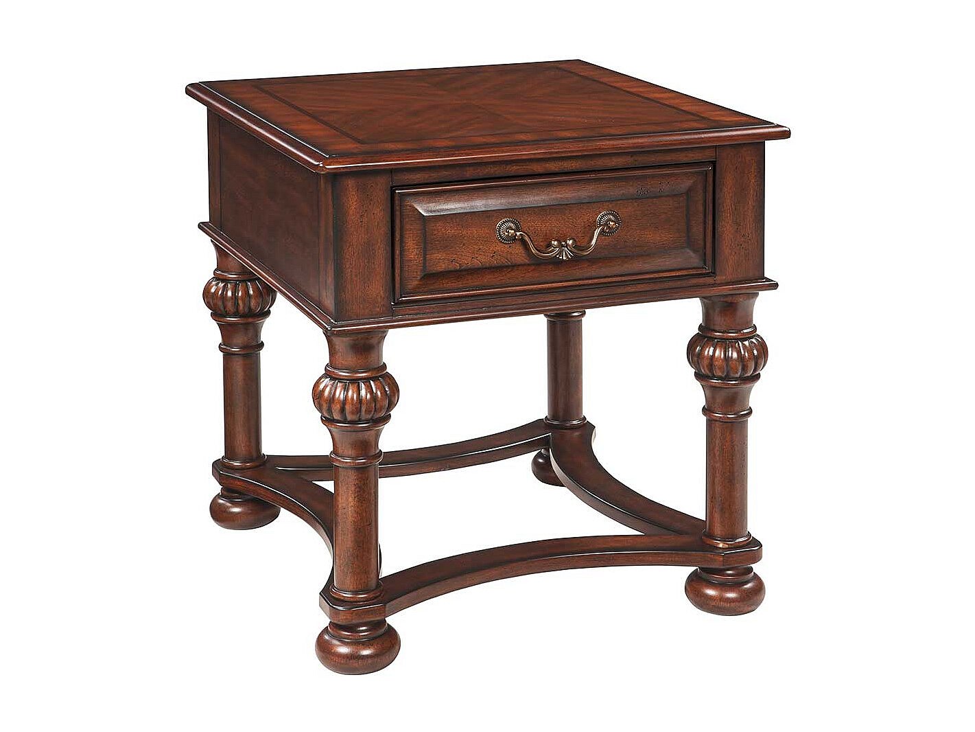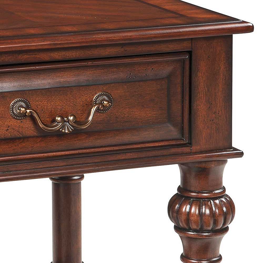 Beistelltisch klassisch in Nussbaumfarben Metallgriff