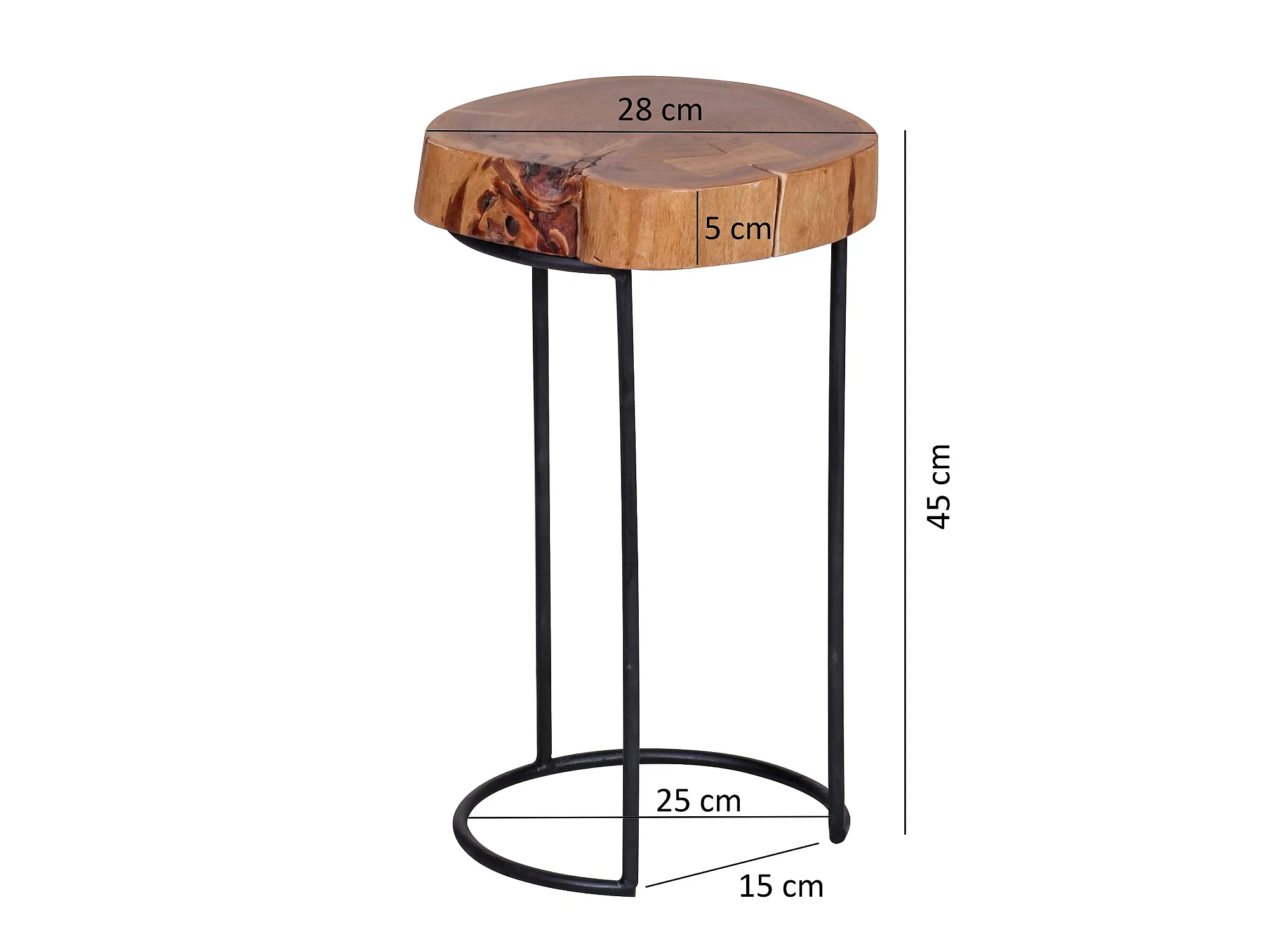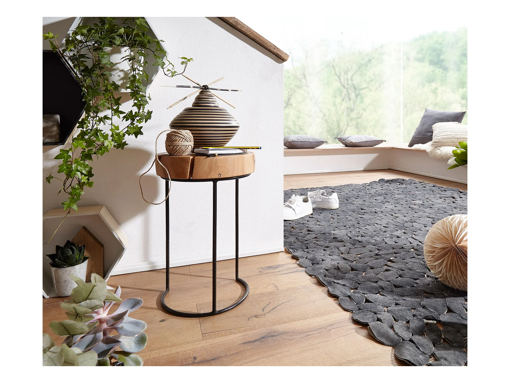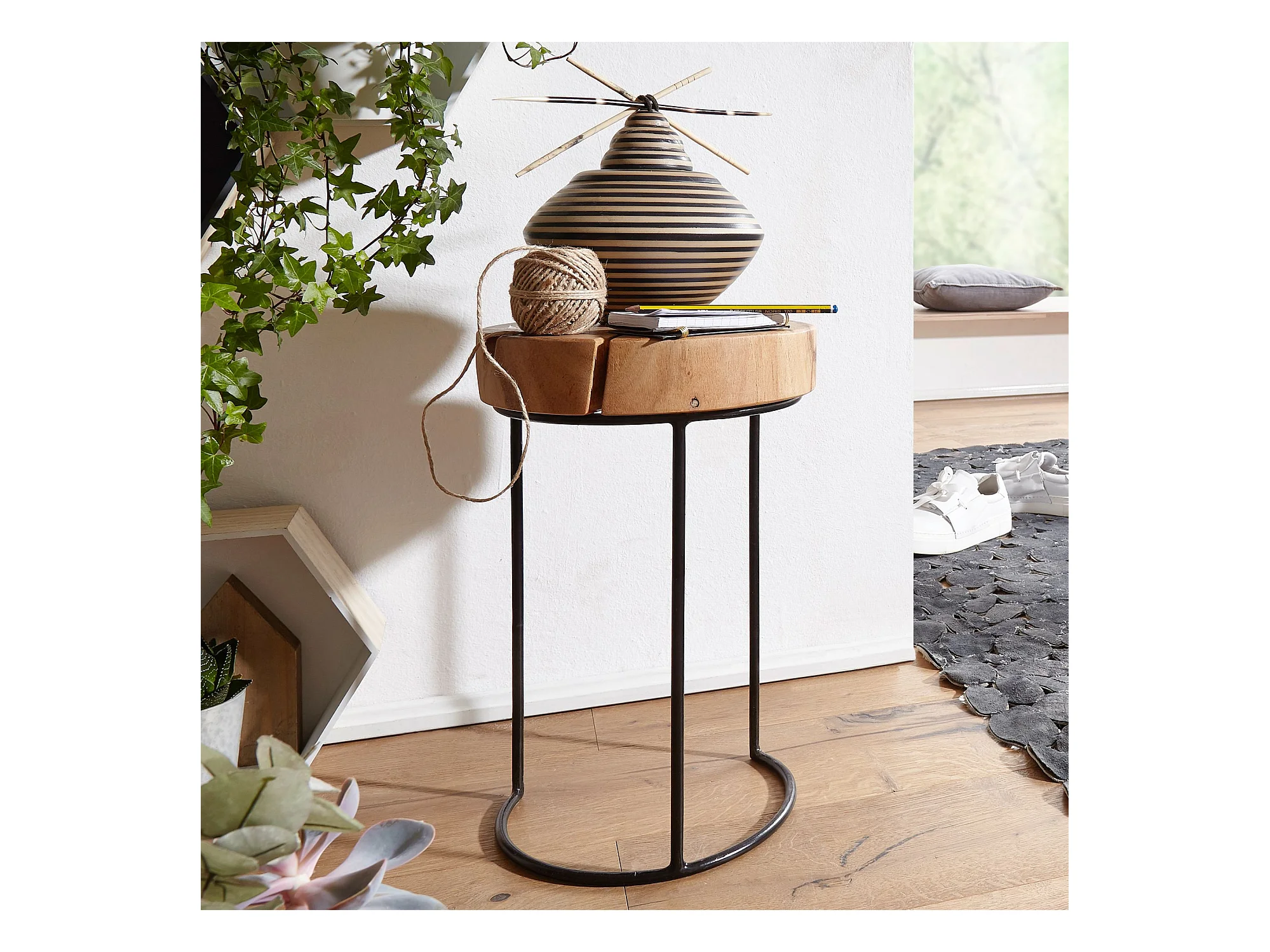 Beistelltisch Massivholz Wohnzimmertisch Metallbeine Landhaus Baumstamm