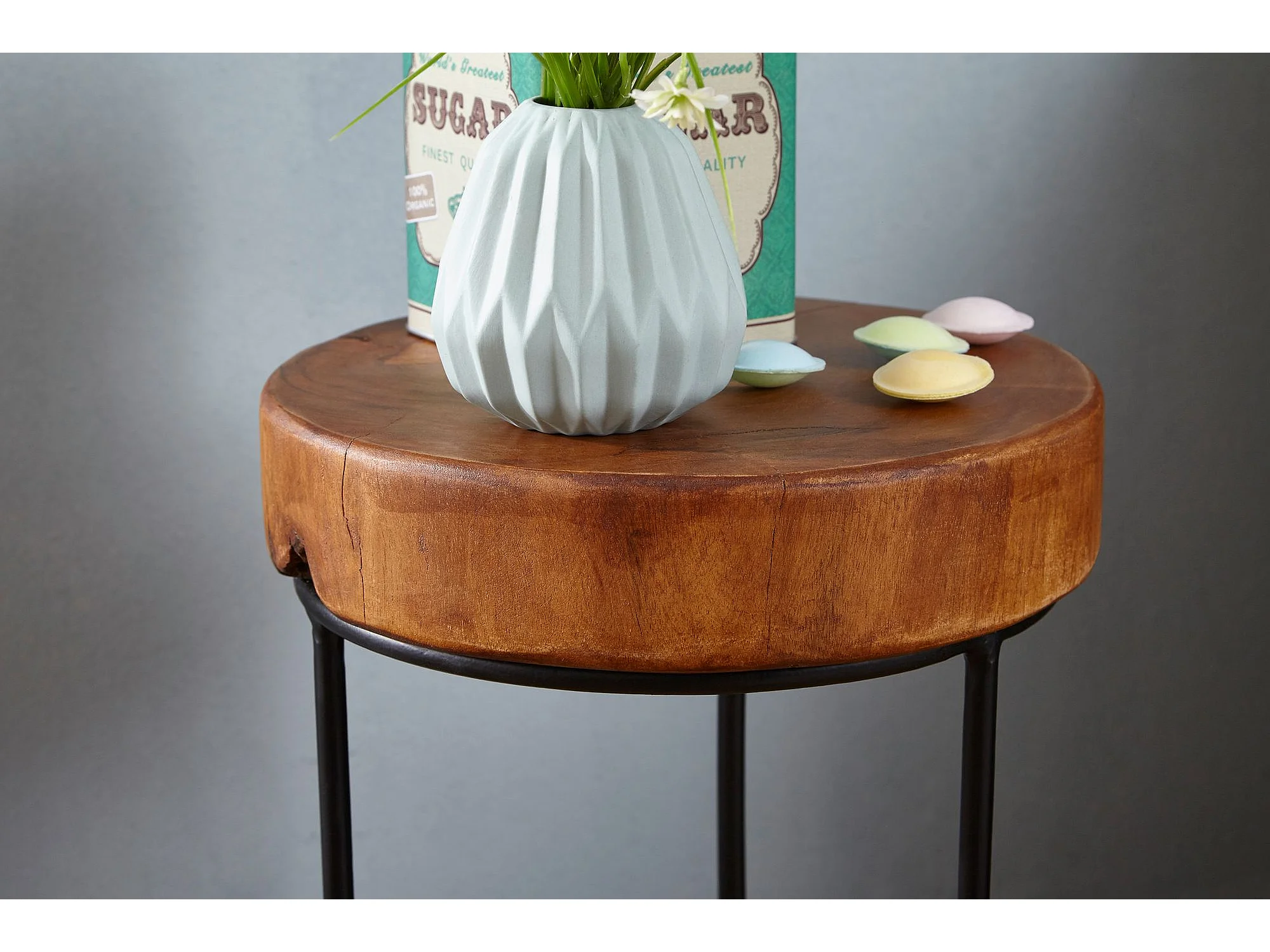 Beistelltisch Massivholz Wohnzimmertisch Metallbeine Landhaus Baumstamm