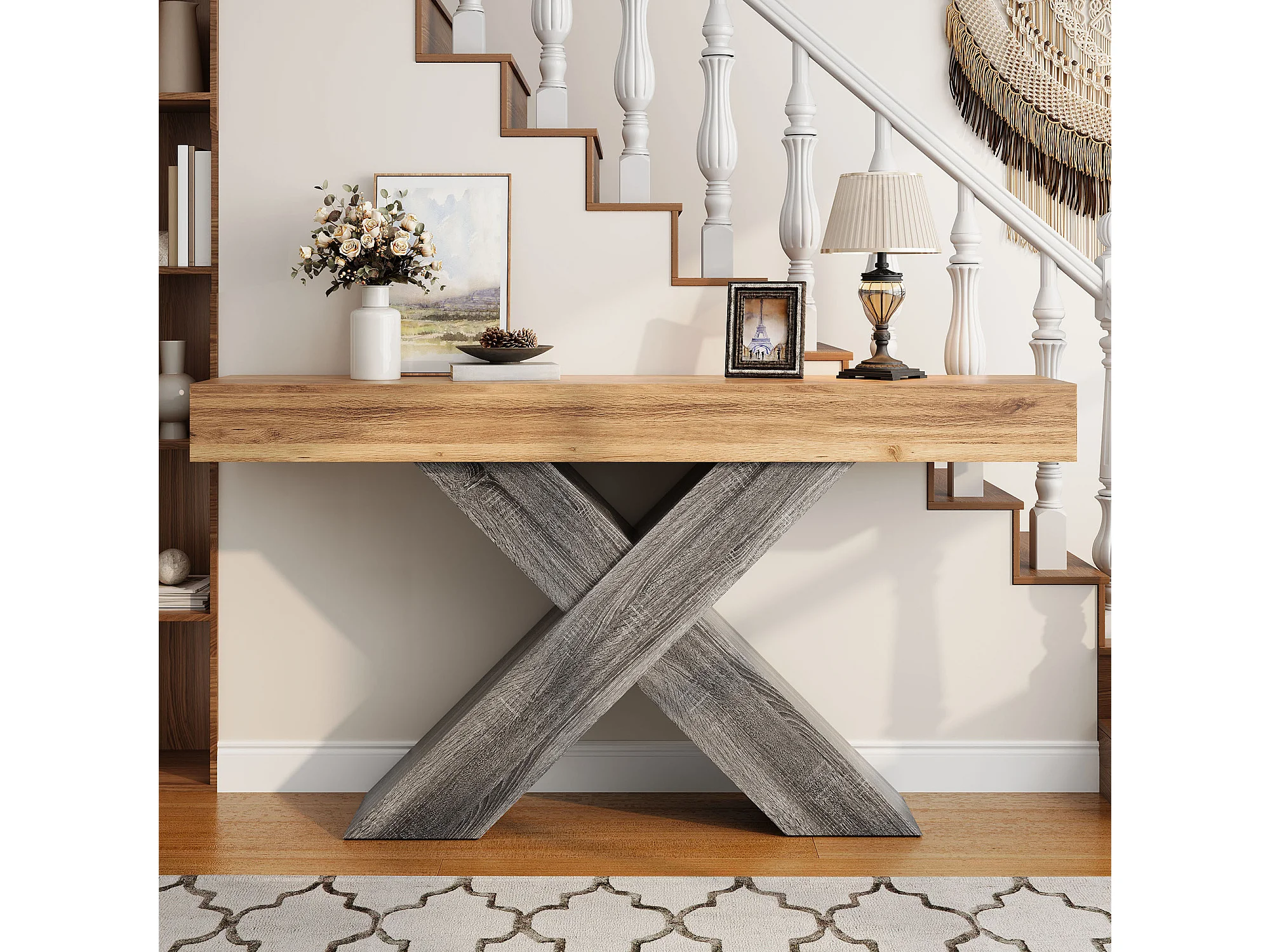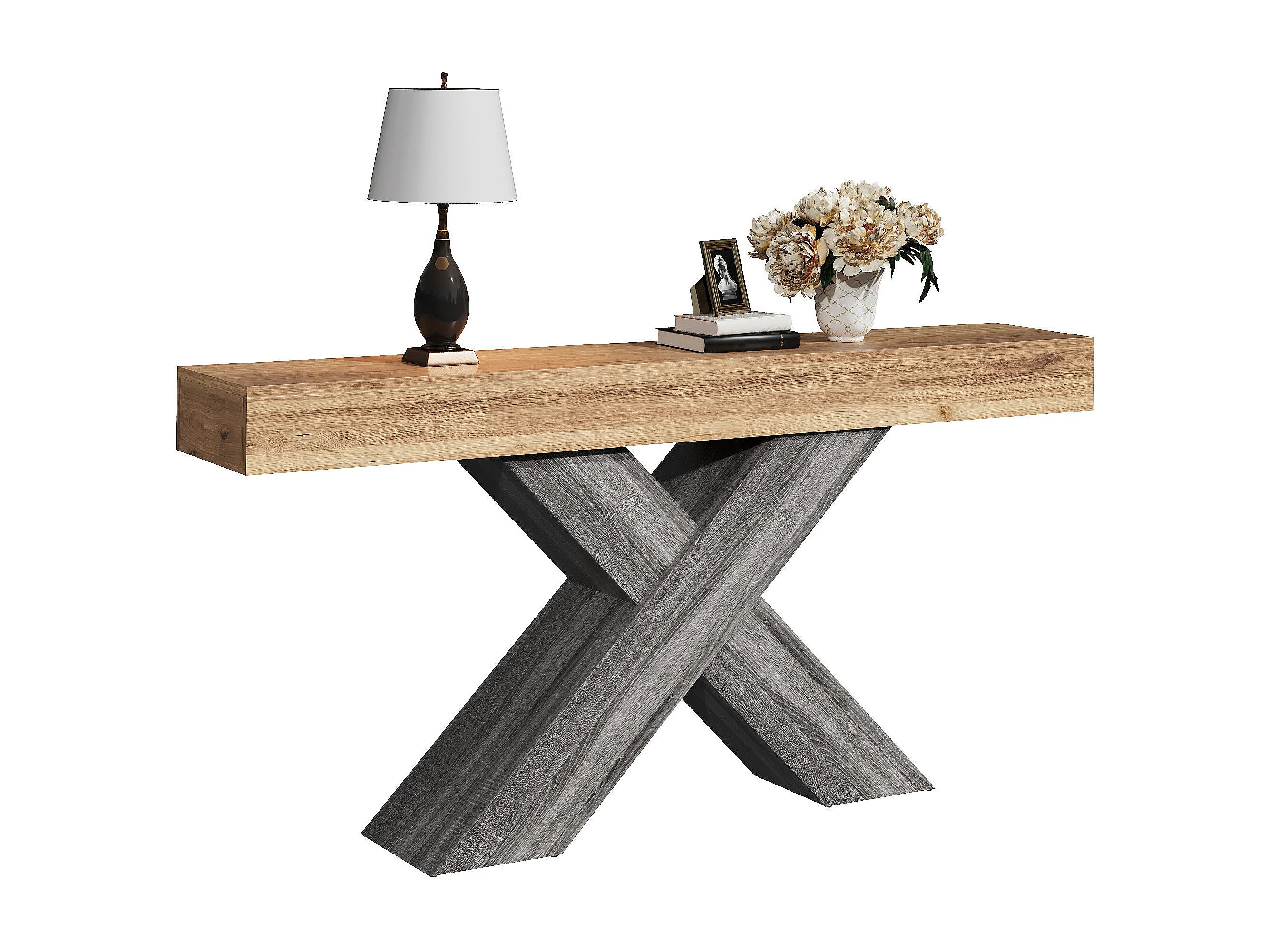 Beistelltisch mit X-Bein - 40x30x80 cm - Maserholzoptik - Massivholzplatte - Spanplatten - Natur