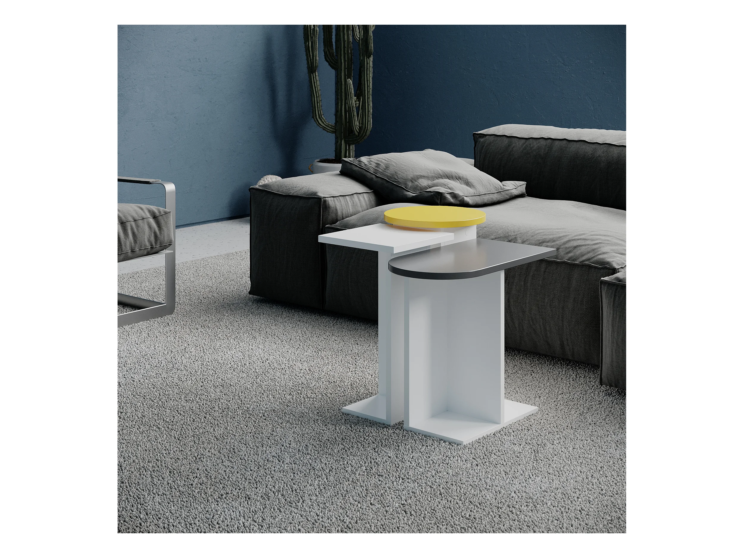 Beistelltisch MUND - Weiß-Anthrazit-Senf - 50 x 27 x 46 cm