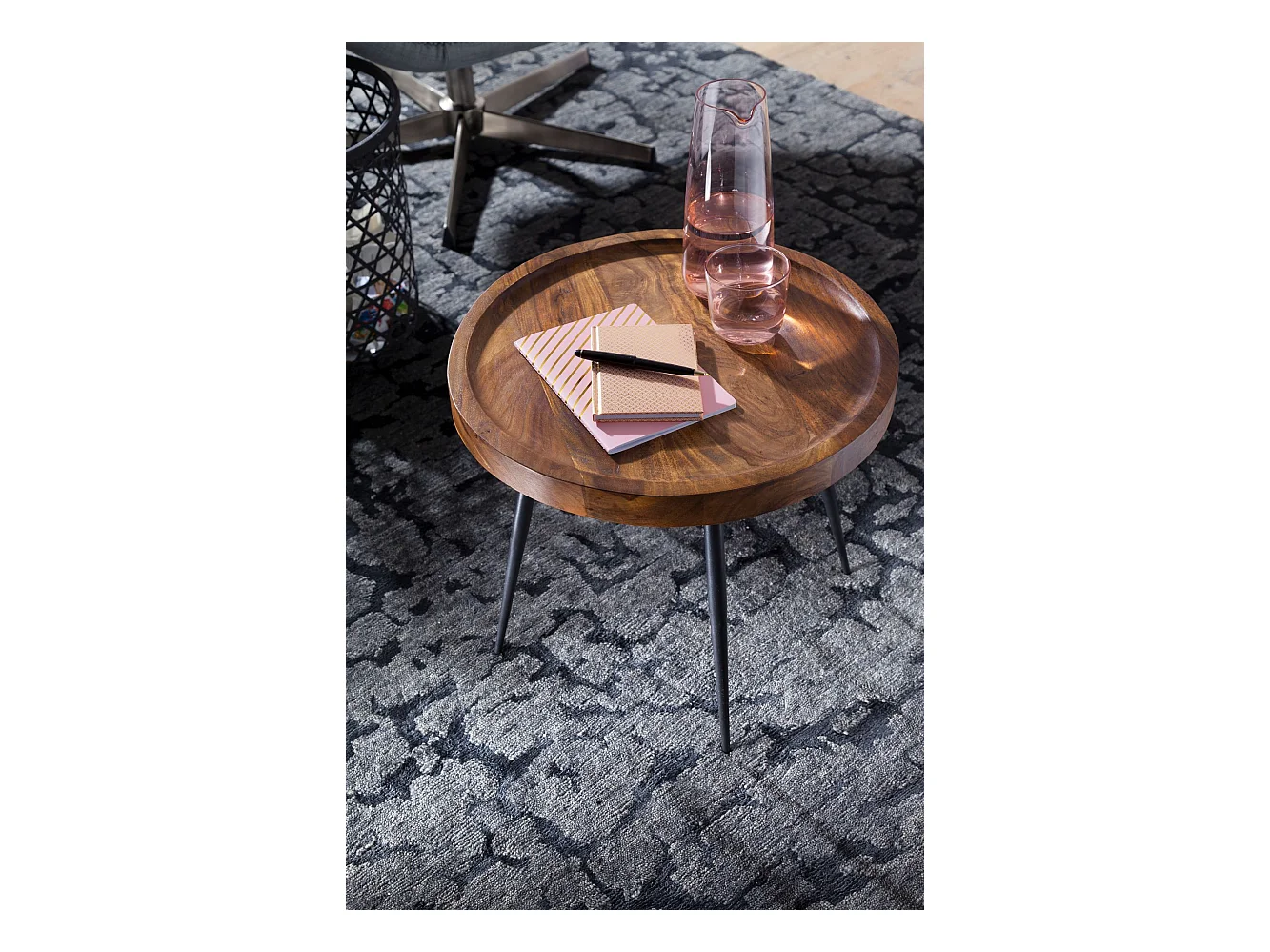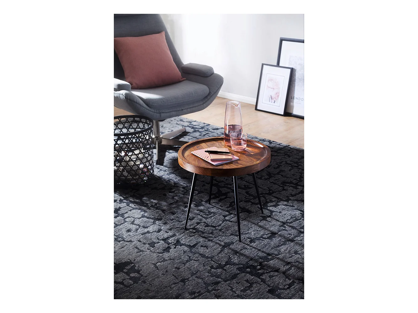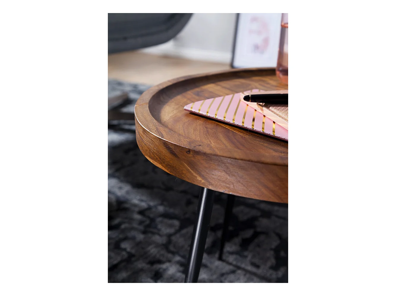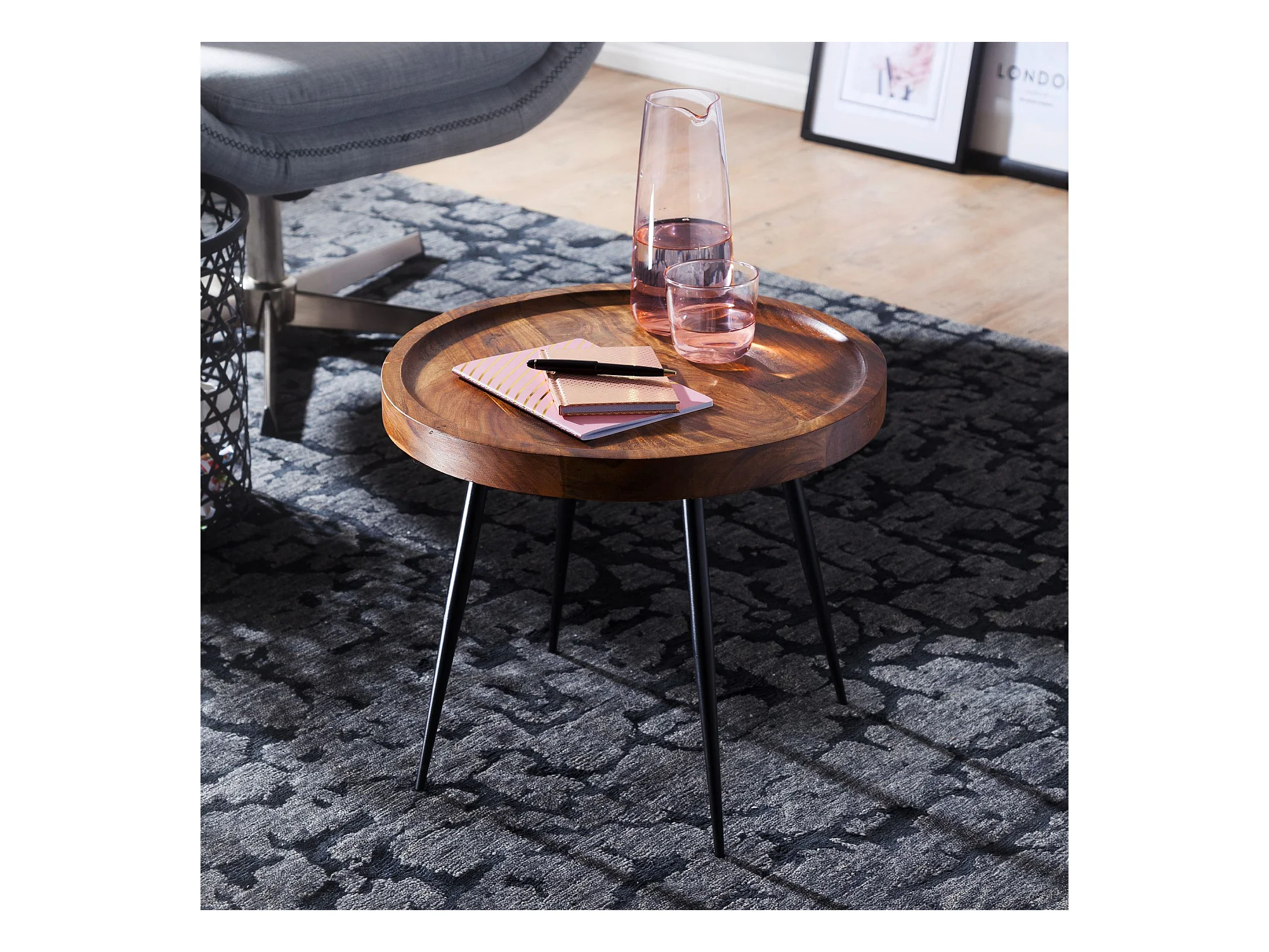 Beistelltisch rund 46x40x46cm Sheesham massiv Holz Metall Couchtisch