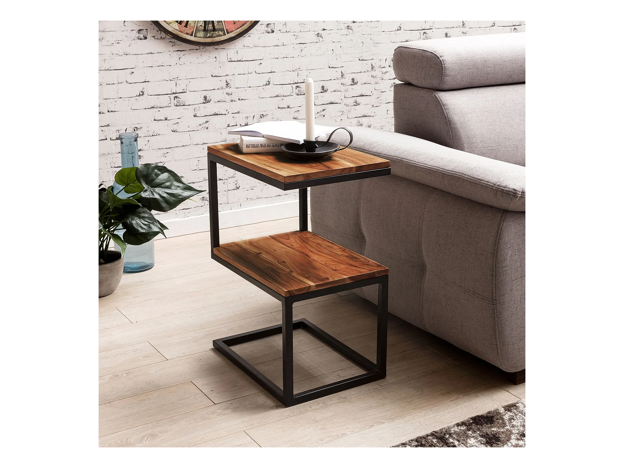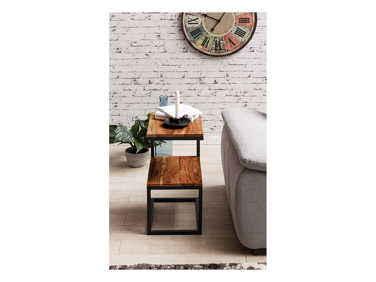 Beistelltisch S-Form Massivholz Metall Wohnzimmertisch Anstelltisch Landhaus