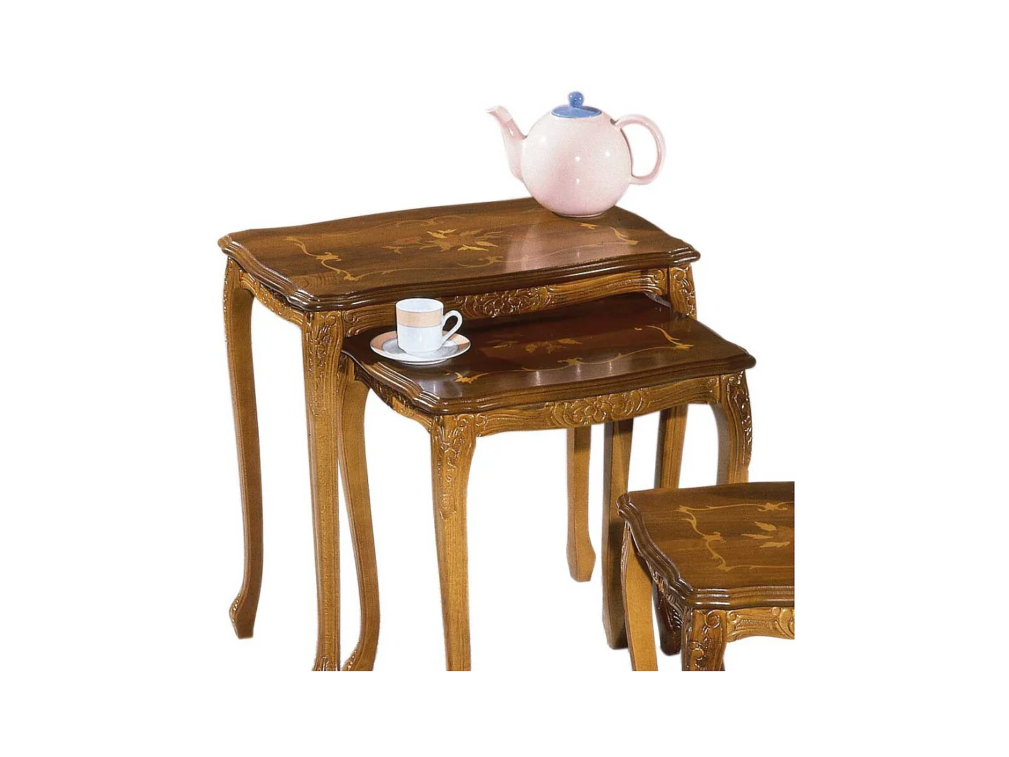 Beistelltisch Set im italienischen Design Nussbaum lackiert (dreiteilig)