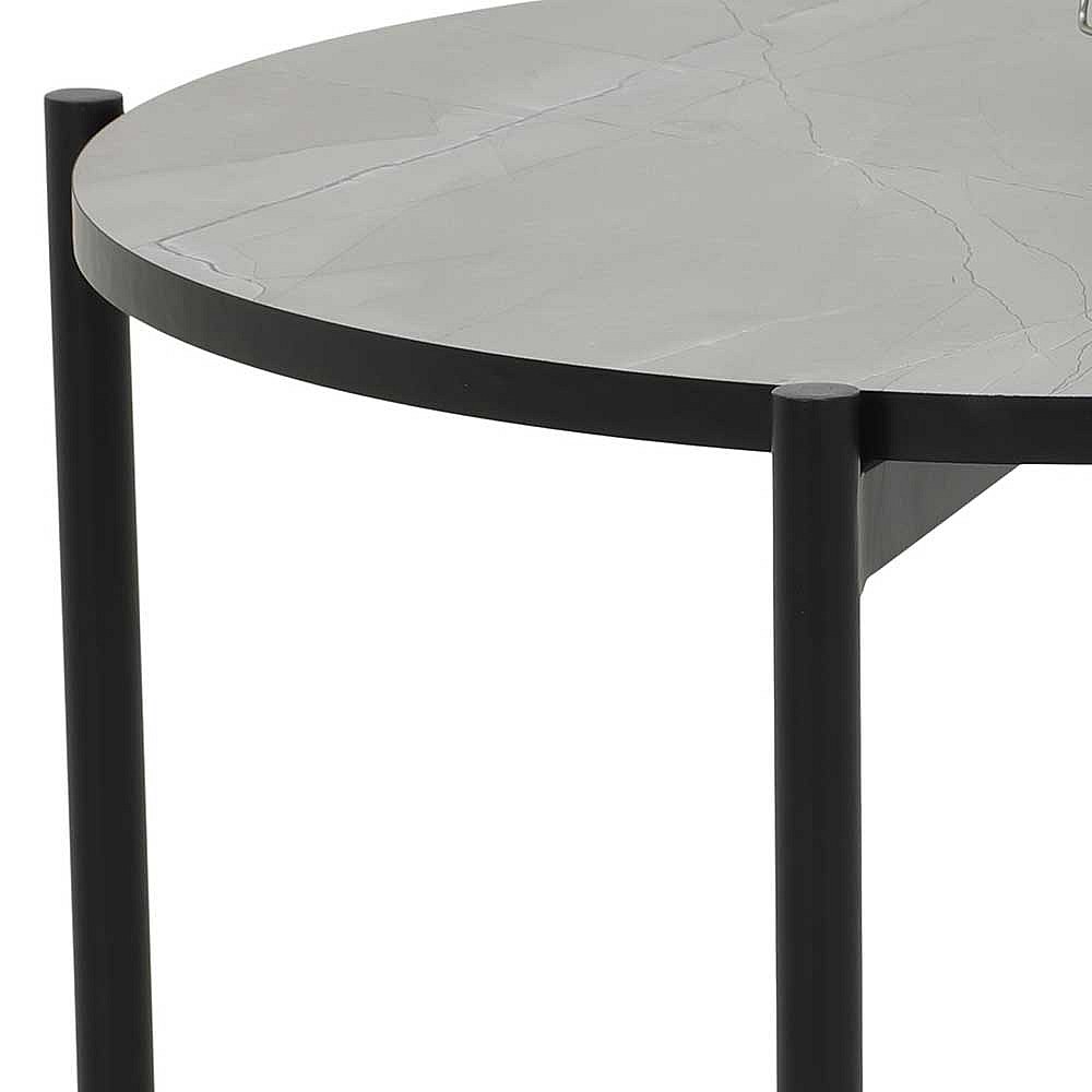 Beistelltisch Sofa rund in Marmor-Optik Grau Schwarz