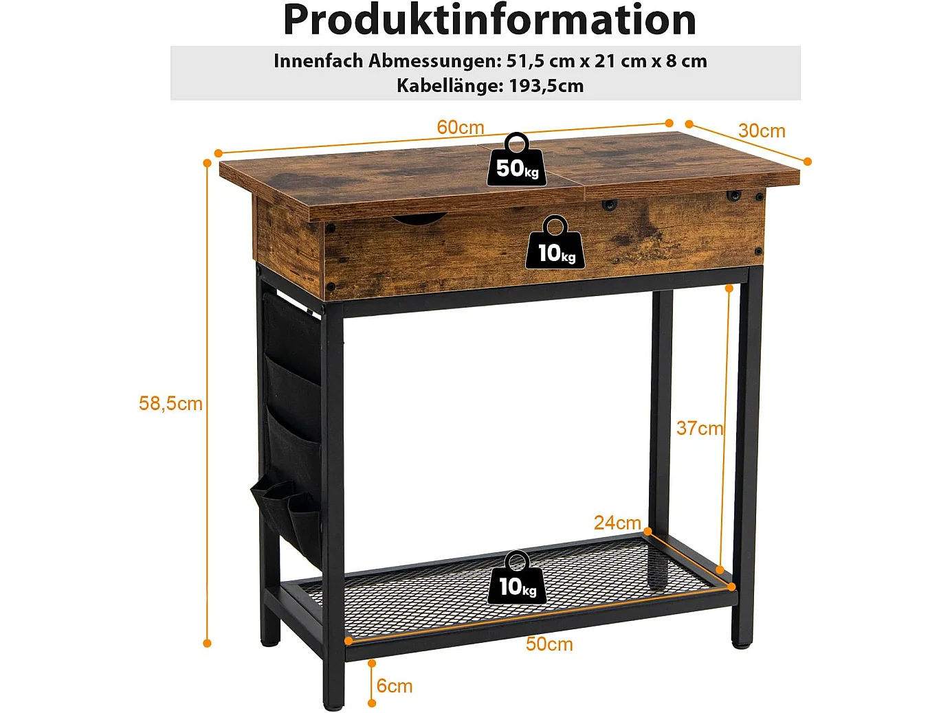Beistelltisch Steckdosen+USB-Anschlüssen
