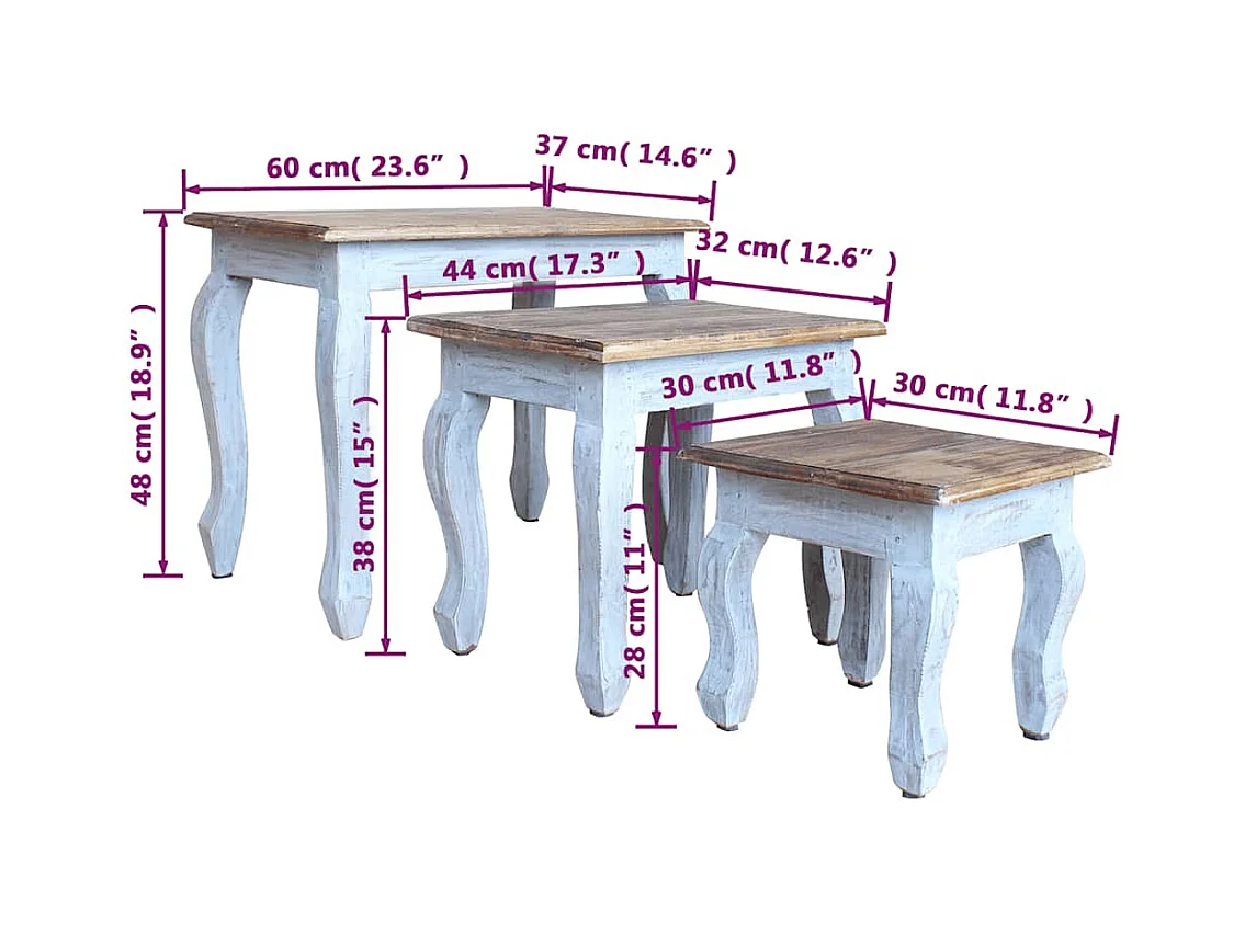 Satztisch-Set 3-tlg. Massives Mahagoniholz