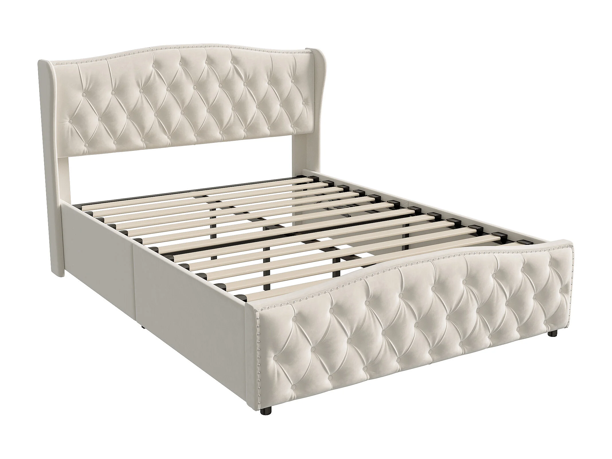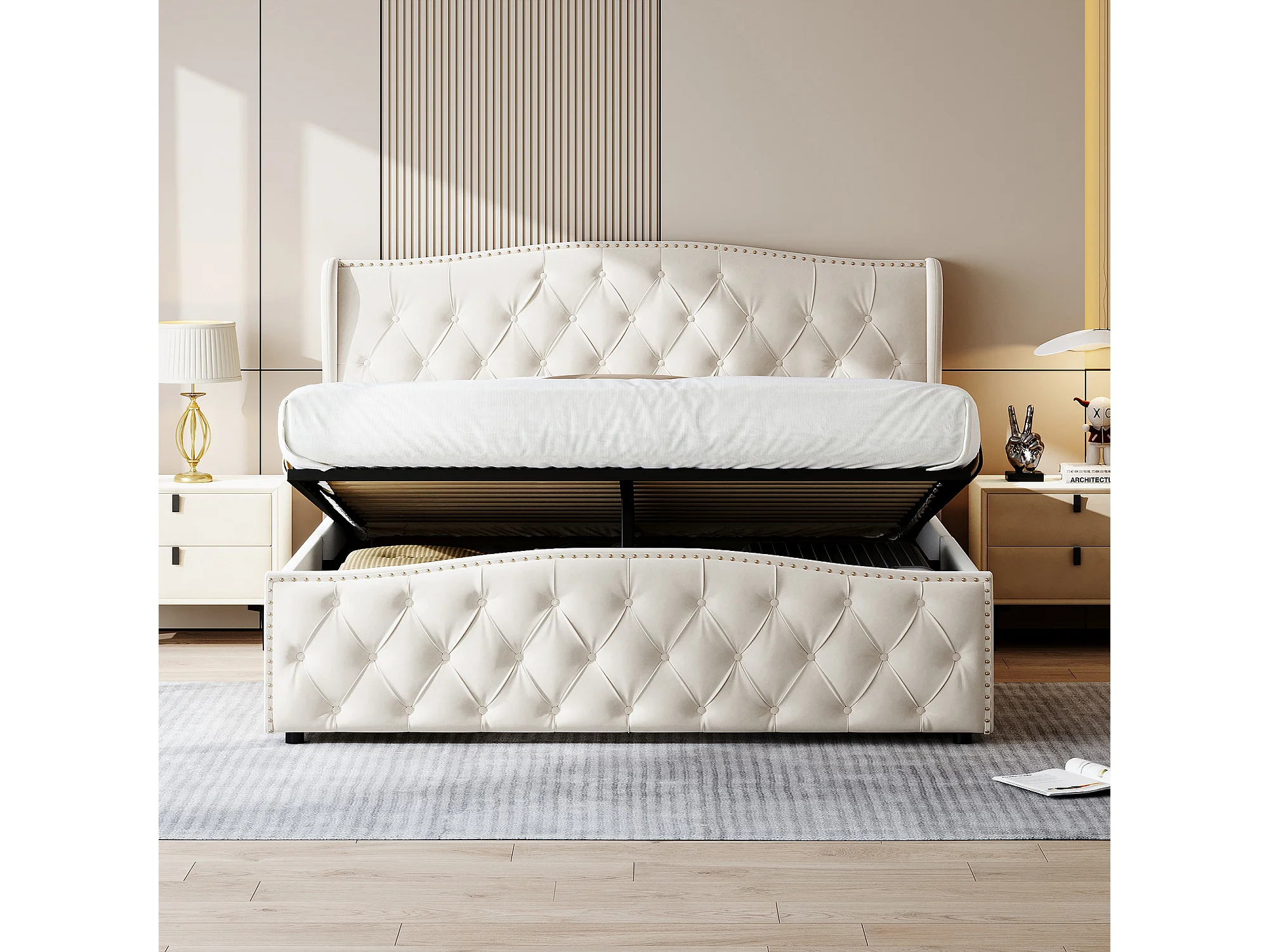 Beleuchteter Koffer 140x200, beleuchteter Capitonné mit Sommier à Lattes, Velours, Beige