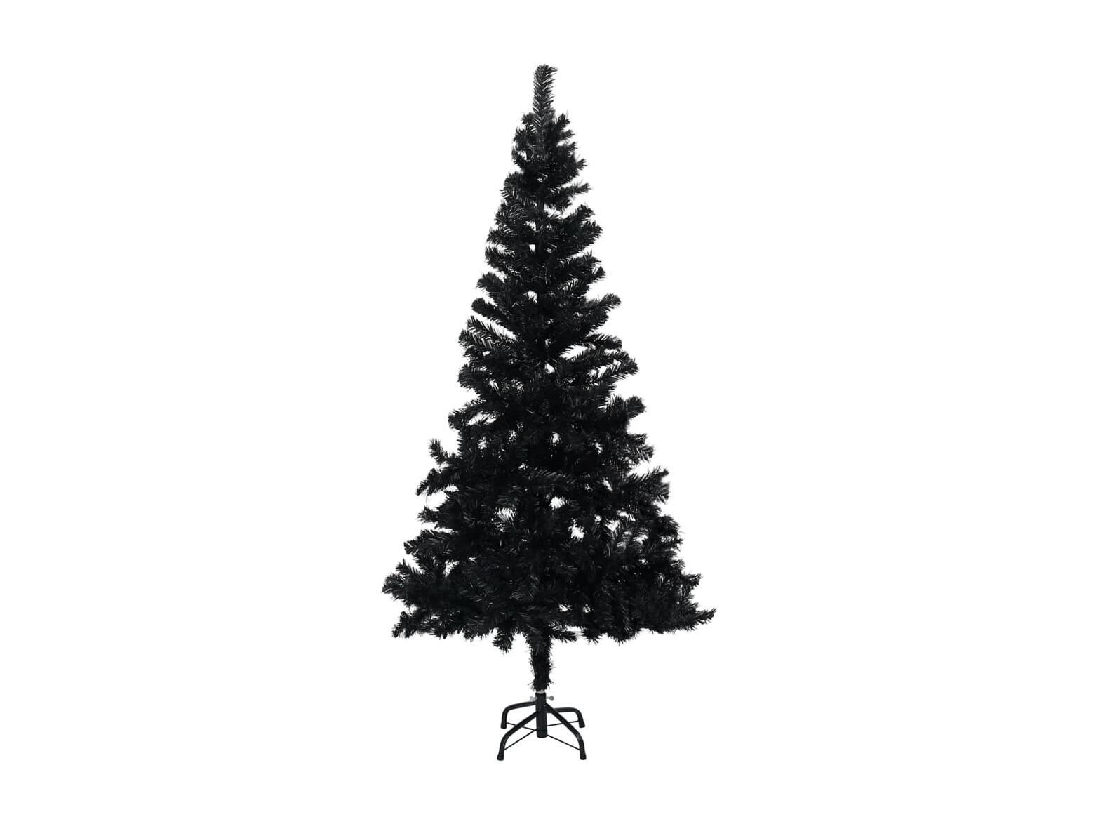 Beleuchteter künstlicher Weihnachtsbaum und Kugeln, schwarz, 210 cm, PVC