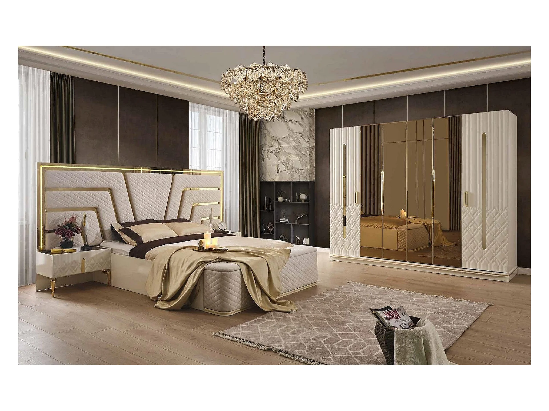 Beleuchtetes Bett Design Doppelbett Luxus Betten Polster Möbel Neu