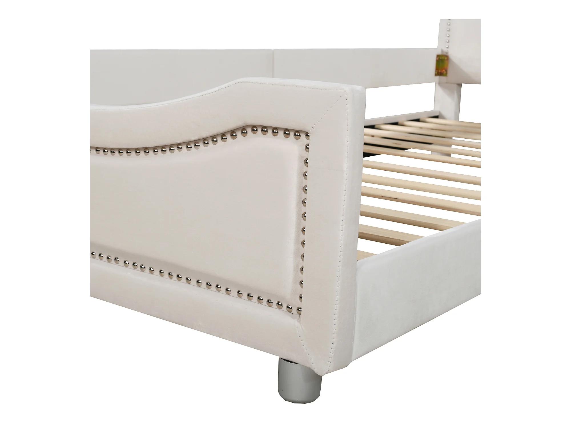 Einzelbett 90x200cm für Kinder - Schlafsofa aus Samt - Beige