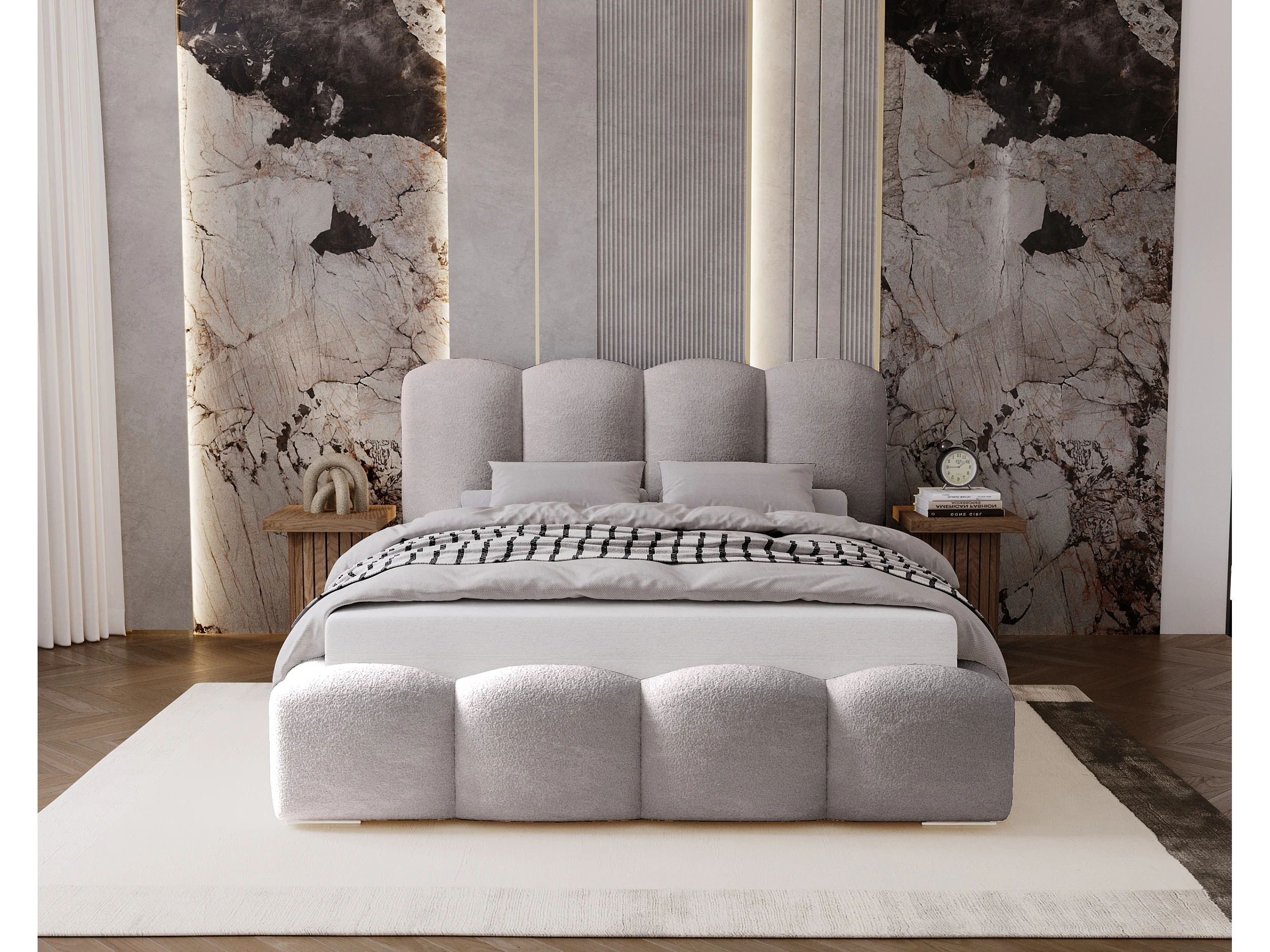 BESILIO Polsterbett 140x200 Fluffy – Wolkenbett Bouclé, Bett mit Bettkasten und Lattenrost, dicke Polsterung, modernes Stauraumbett Schlafzimmer – Hellgrau