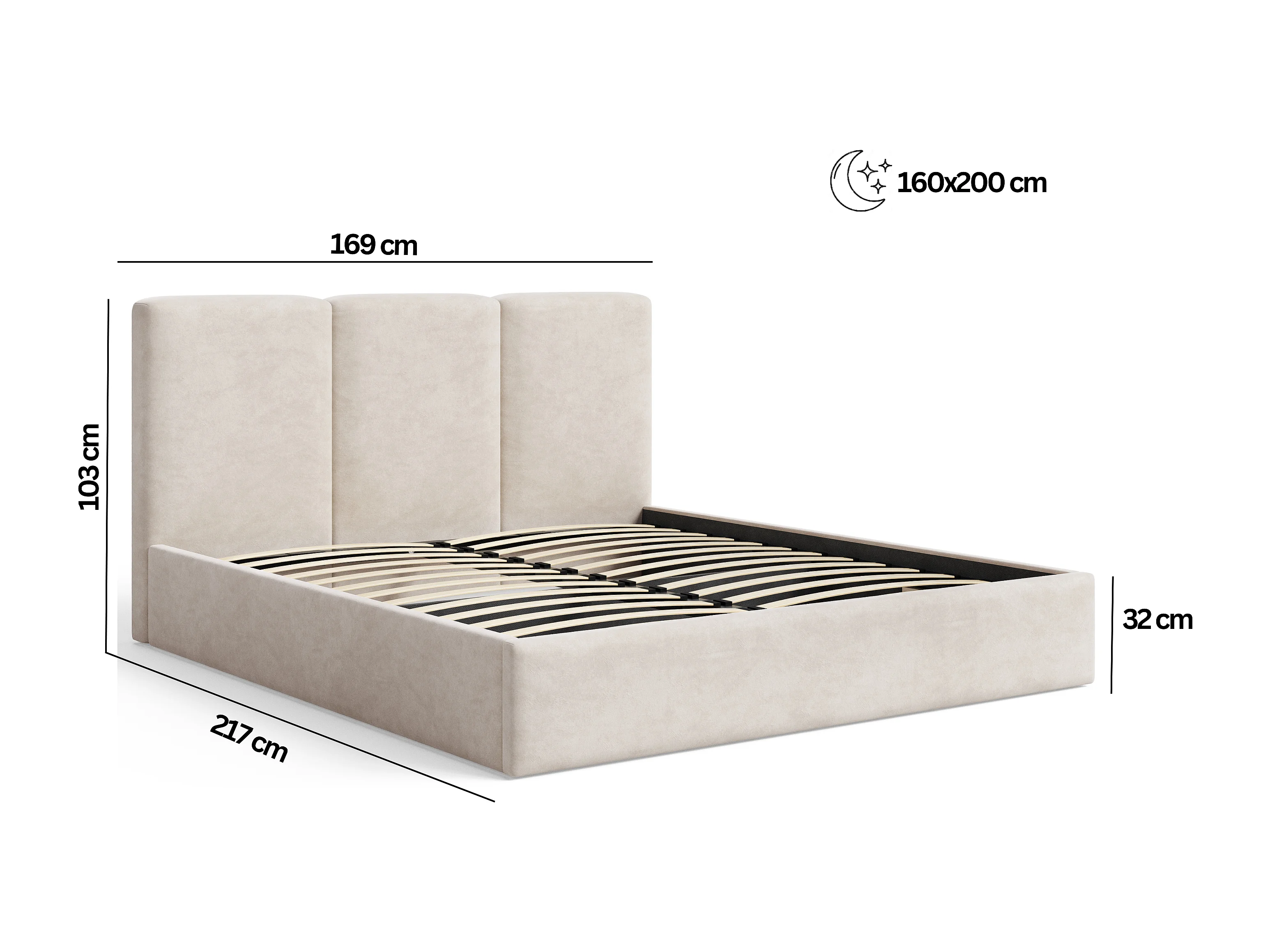 BESILIO Polsterbett 160x200 Mira Bouclé – Bett mit Bettkasten und Holzlattenrost, modernes Stauraumbett Schlafzimmer, Bouclé Stoff – Grau