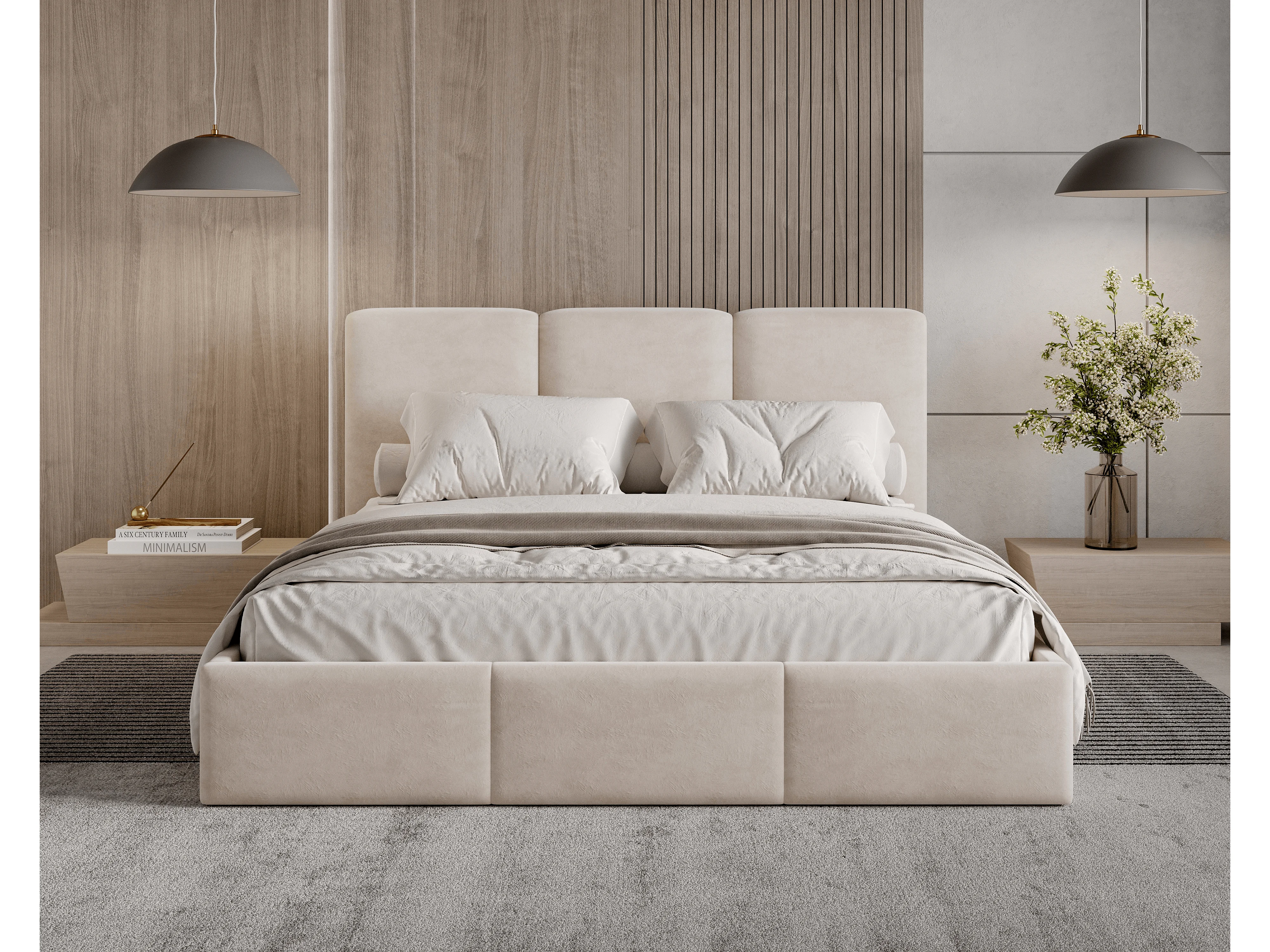 BESILIO Polsterbett mit Stauraum 120x200 Elora – schlankes Bett mit dekorativem Kopfteil und Metallrahmen – Beige
