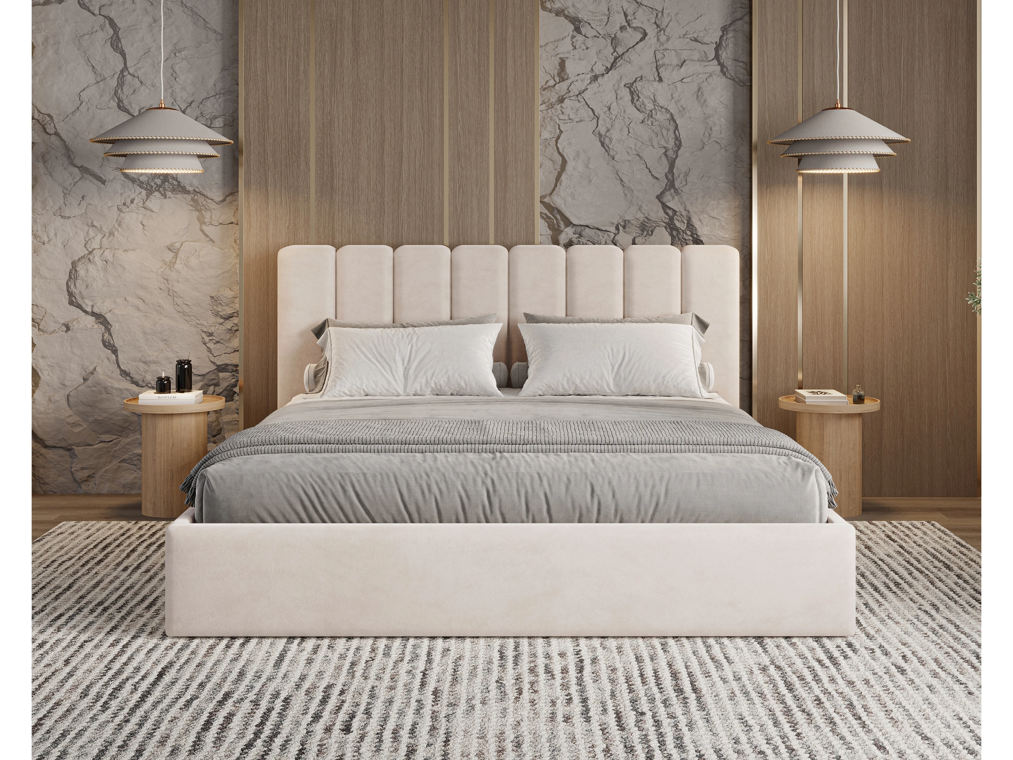 BESILIO Polsterbett mit Stauraum 200x200 Nuvia – schlankes Bett mit weichem Kopfteil und Metallrahmen – Beige