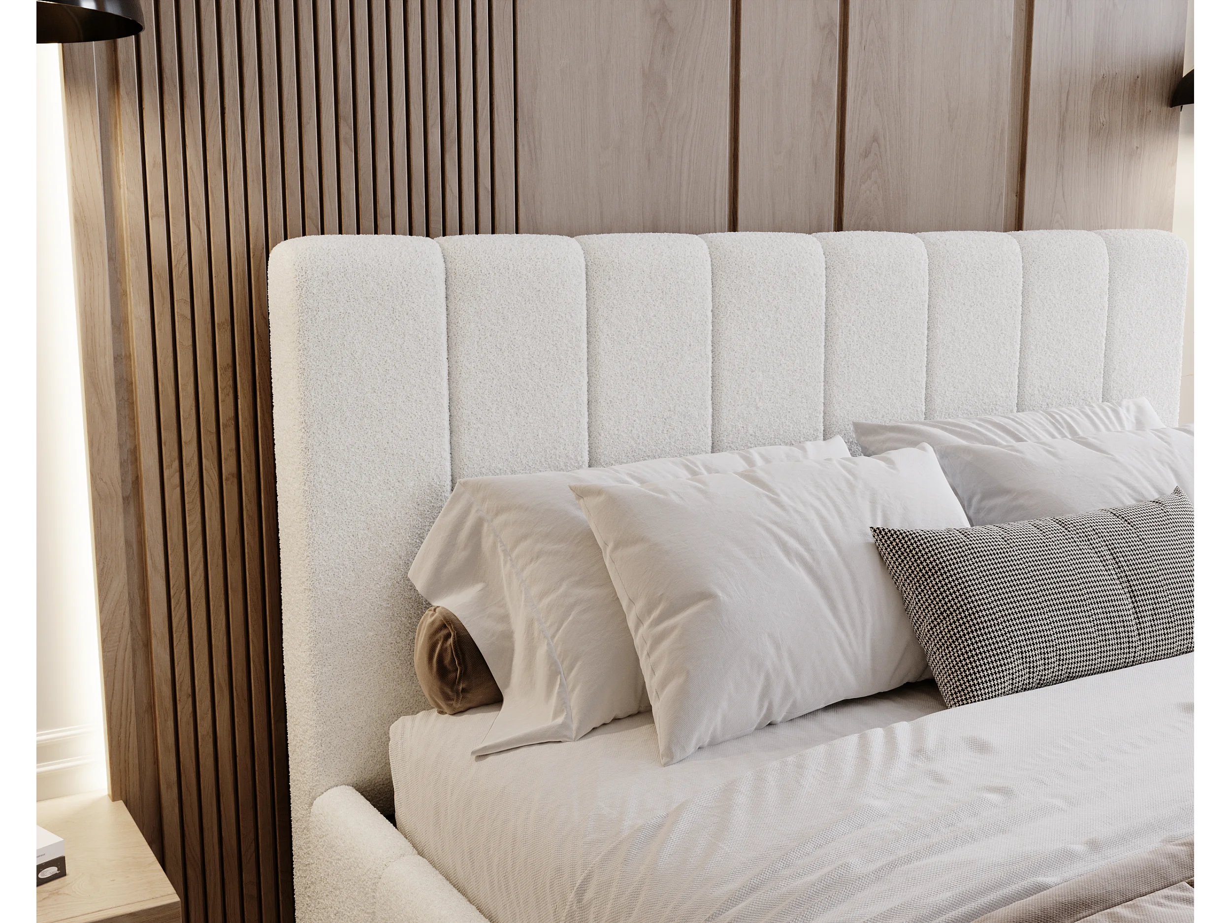 BESILIO Schlafzimmerbett Slim 160x200 Lexy – Metallrahmen, Bettkasten, schlankes Bett, Boucle-Stoff – Weiß