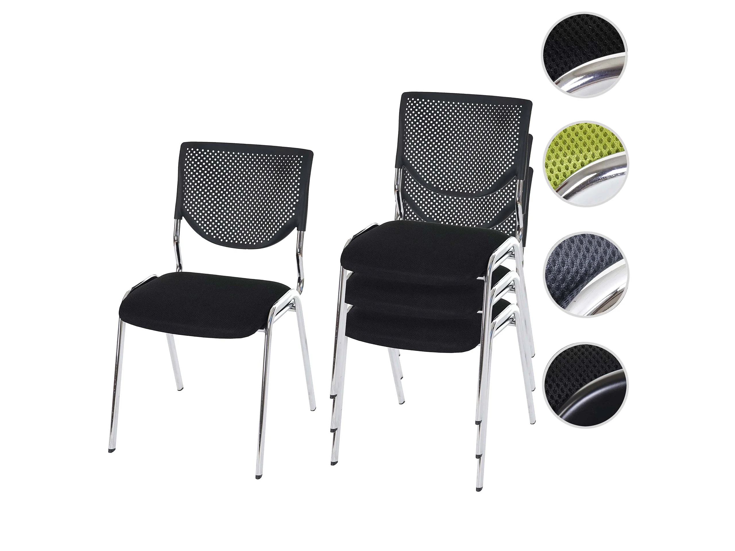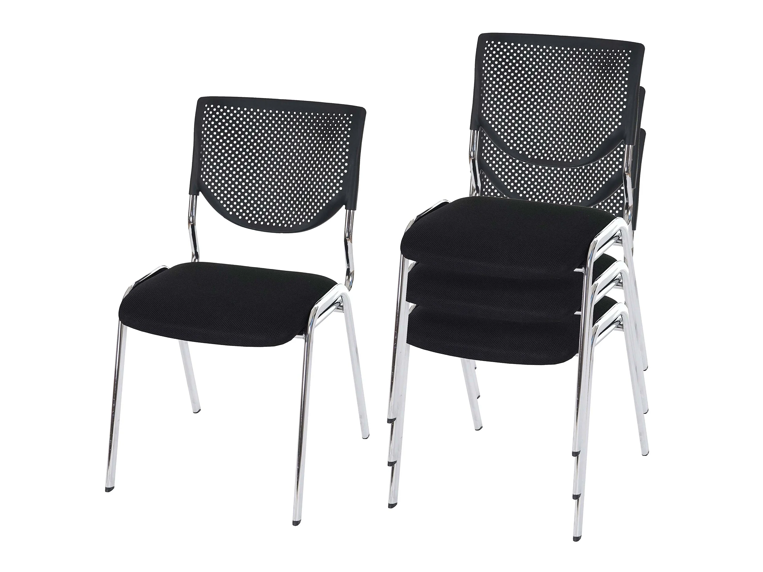 Besucherstuhl H401 Stapelbar (4er-Set), Sitz schwarz, Füße chrom