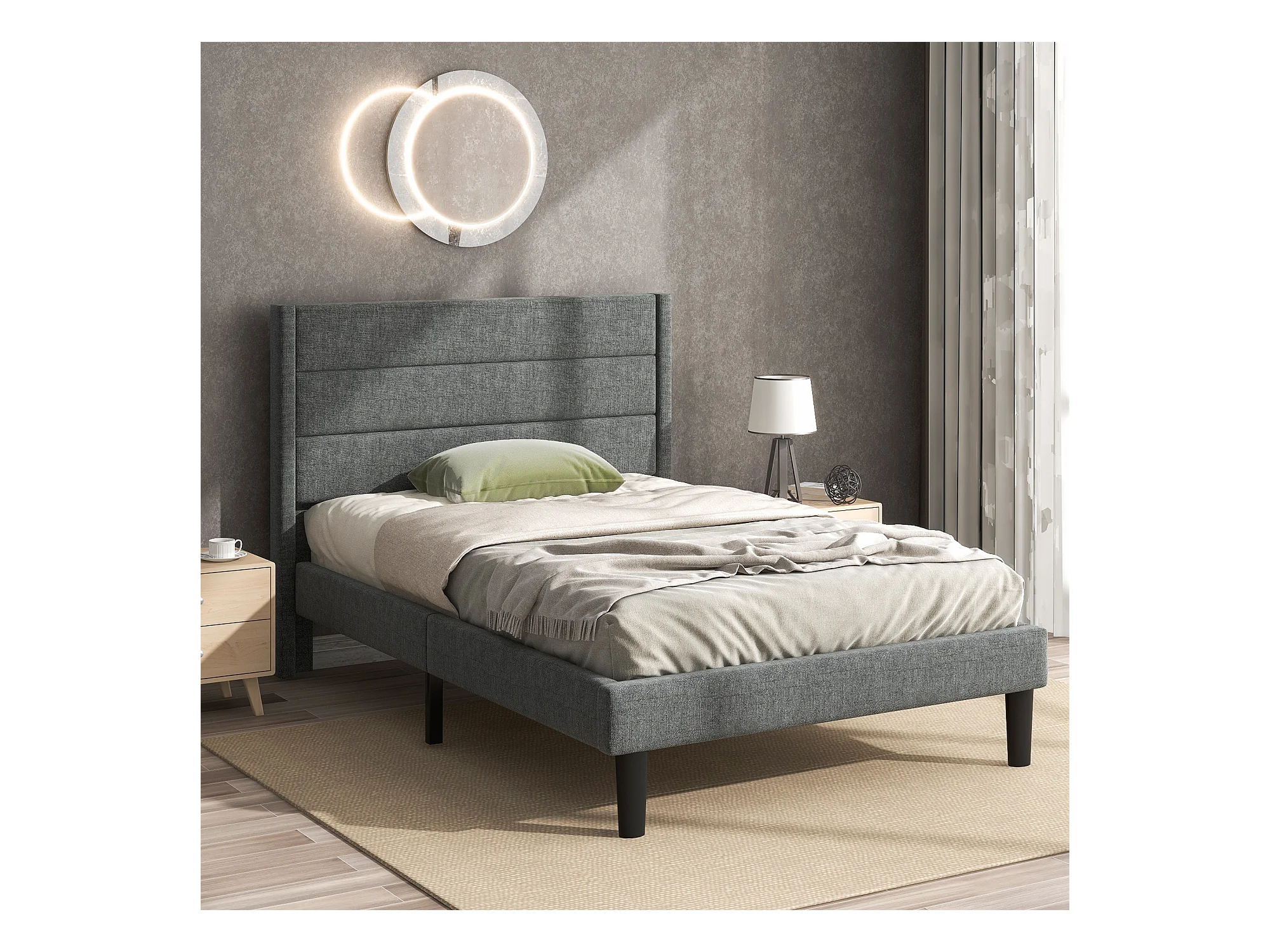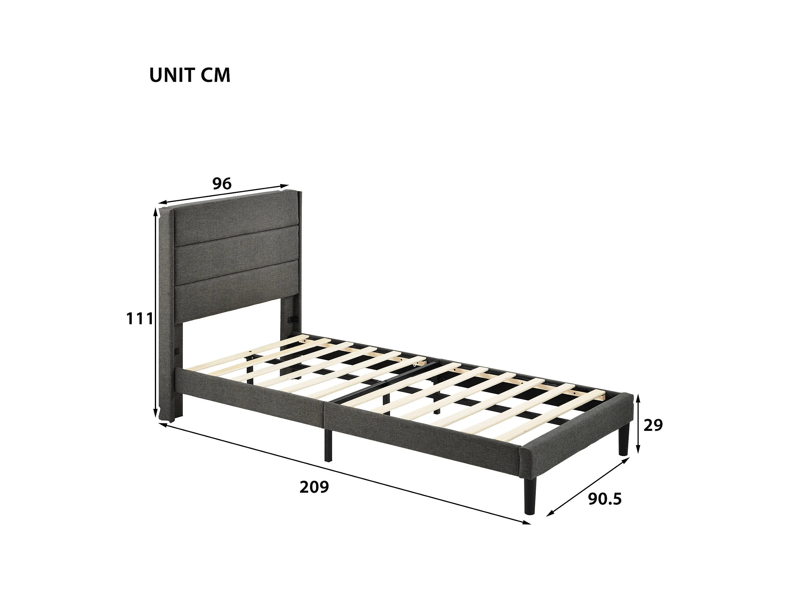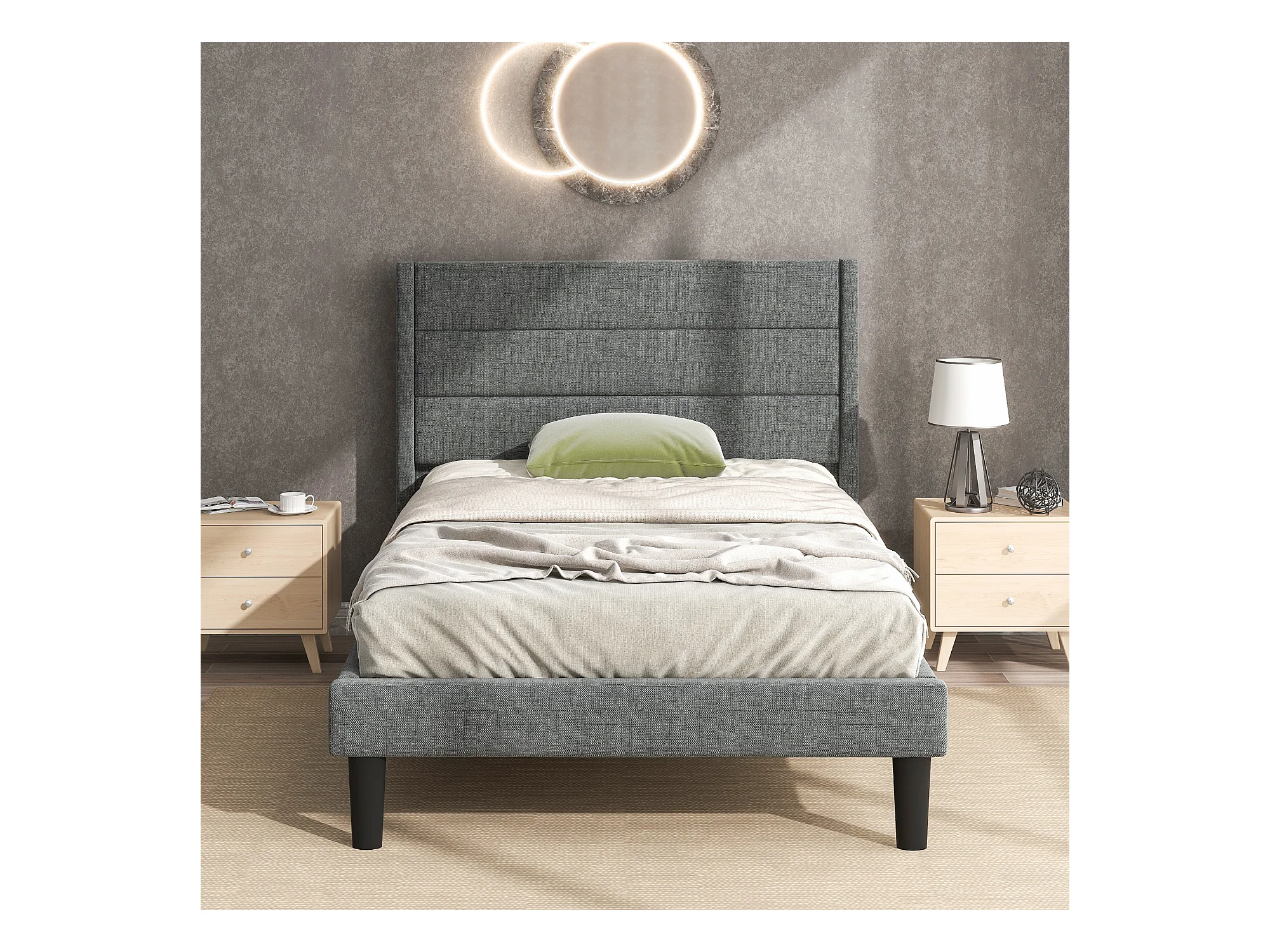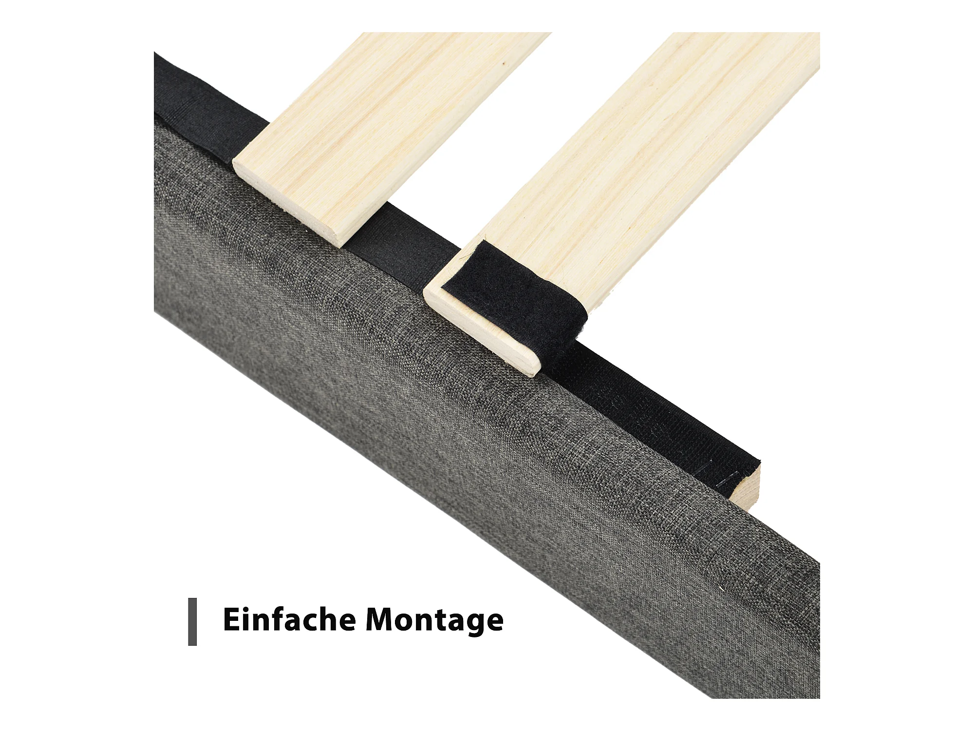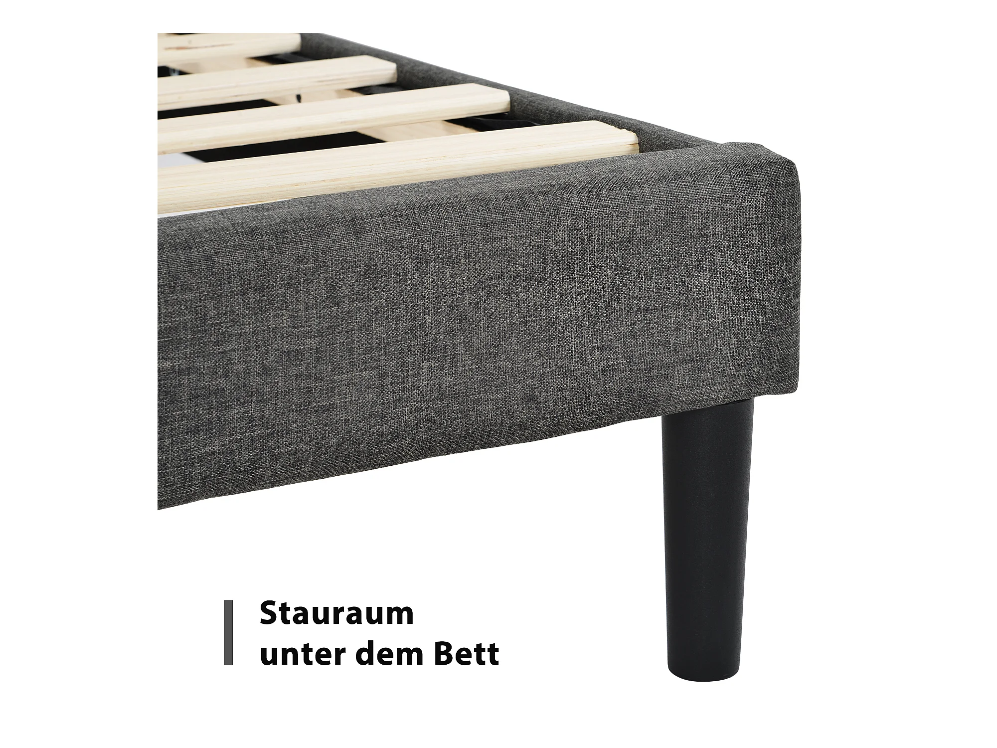 Bett 90 x 200 cm – dunkelgraues Leinen – Einzelbett mit Lattenrost und Kopfteil – Matratze nicht inklusive