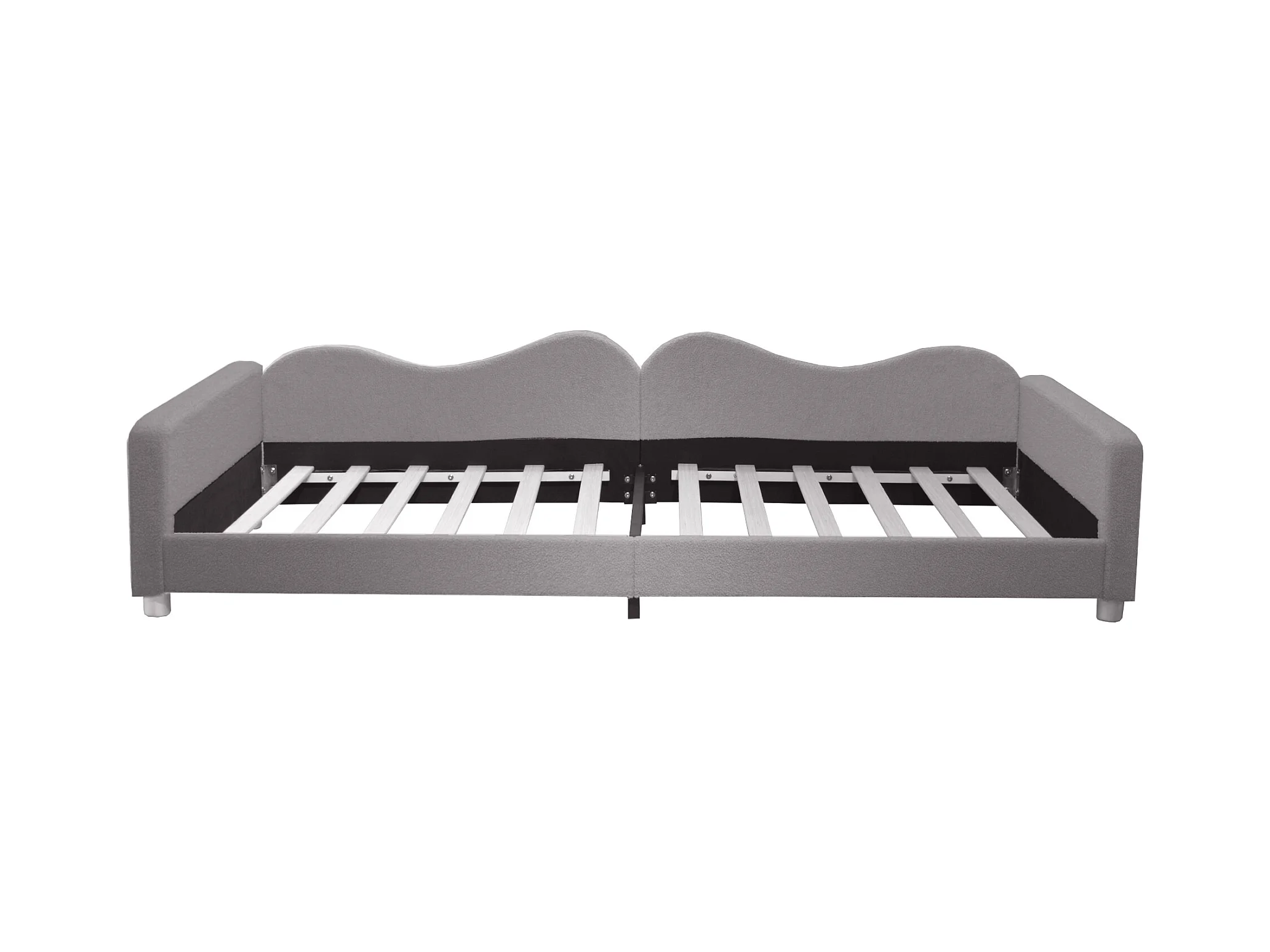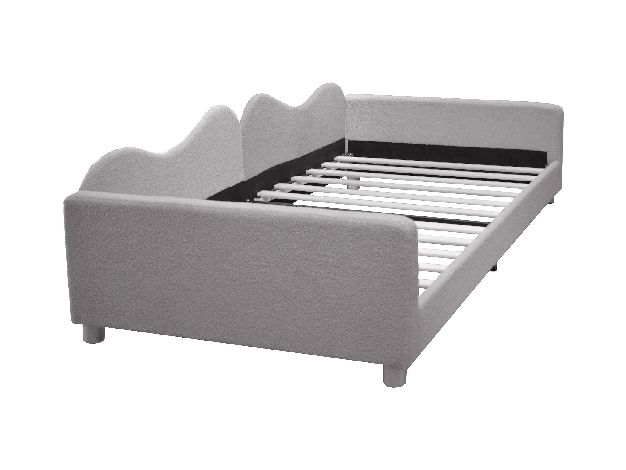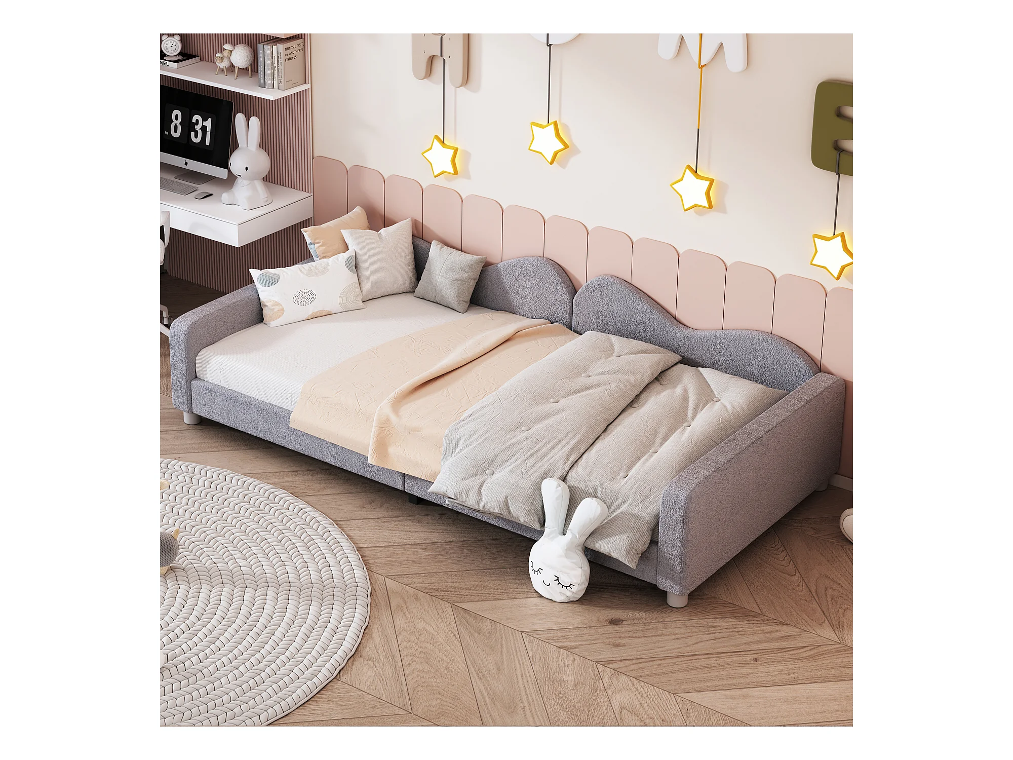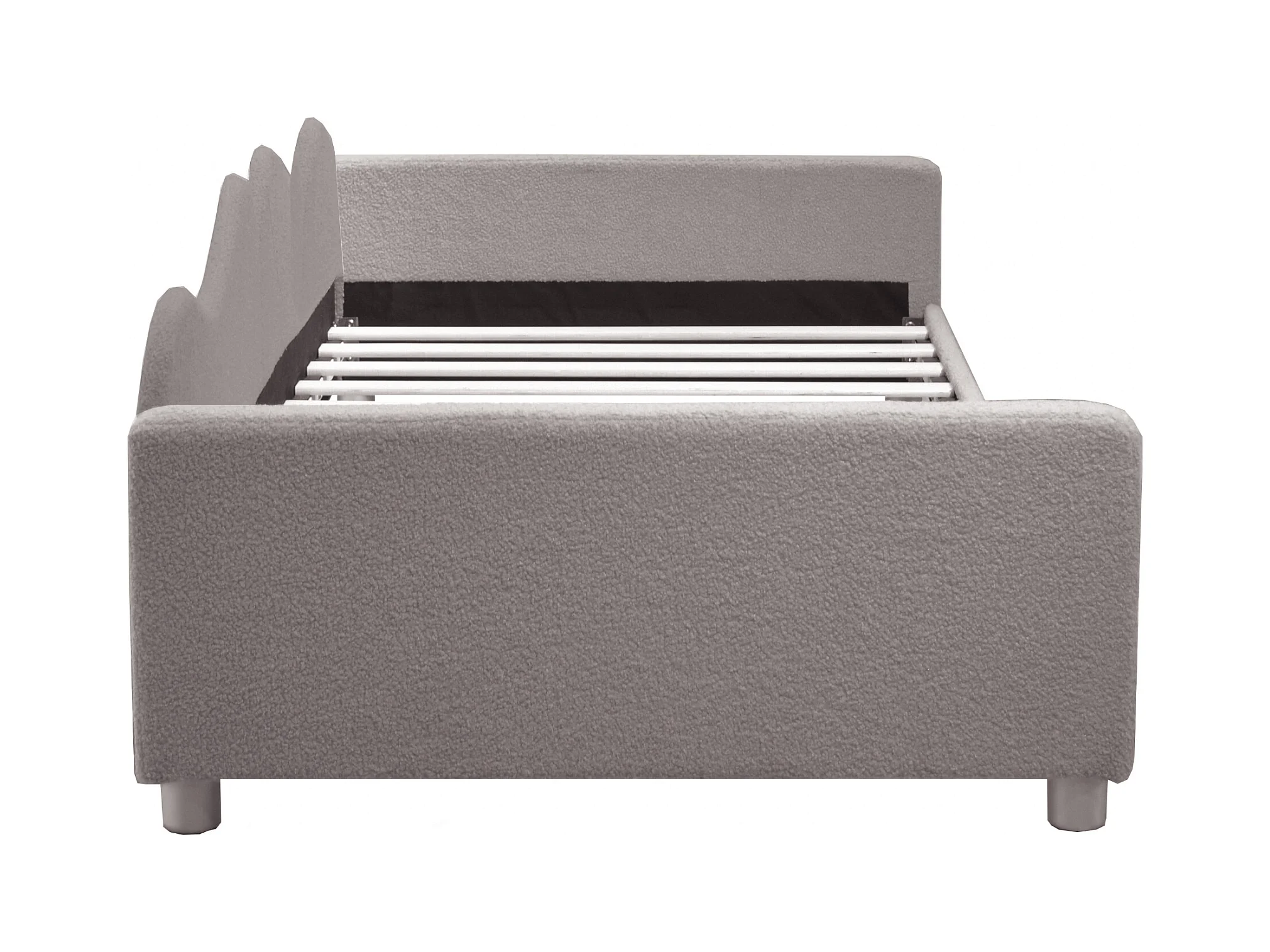 Bett 90x200 cm - Schlafsofa mit Rückenlehne und Armlehnen - Holzlattenrost - Plüsch grau
