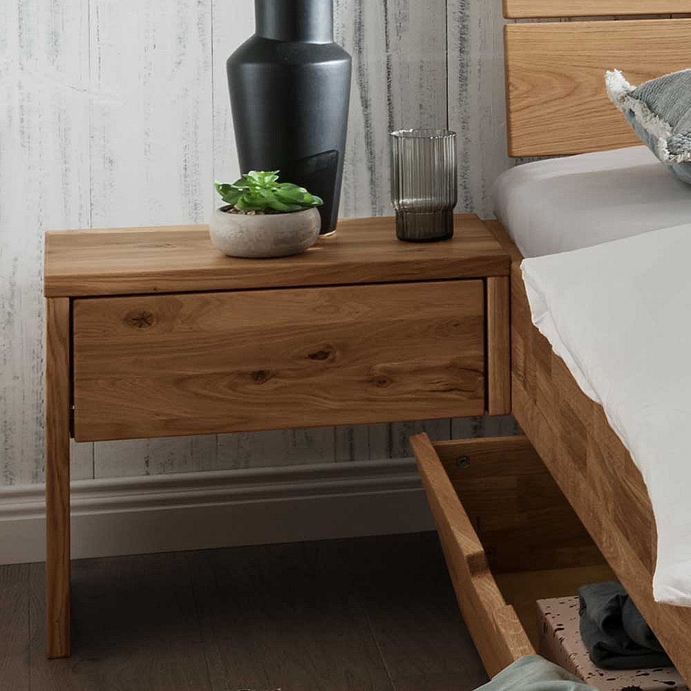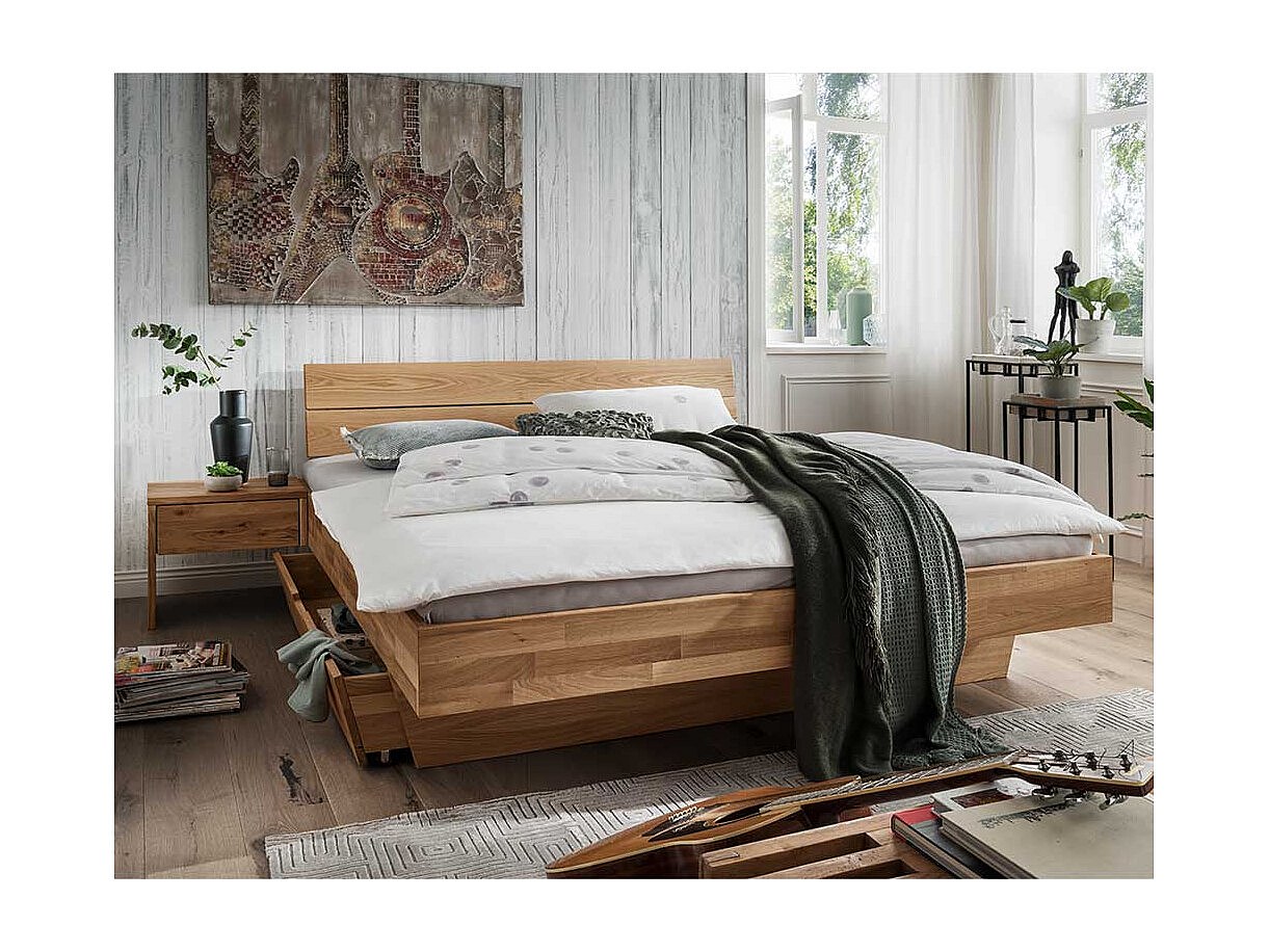 Bett aus Wildeiche Massivholz geölt Schubkasten und Nachtkommoden (dreiteilig)