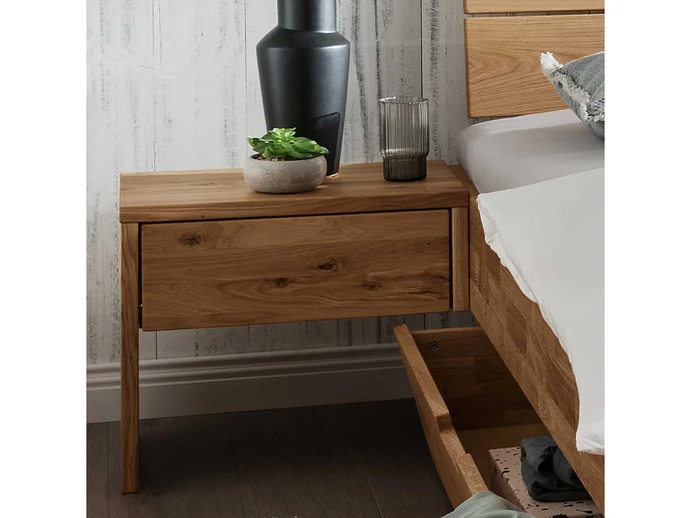 Bett aus Wildeiche Massivholz geölt Schubkasten und Nachtkommoden (dreiteilig)