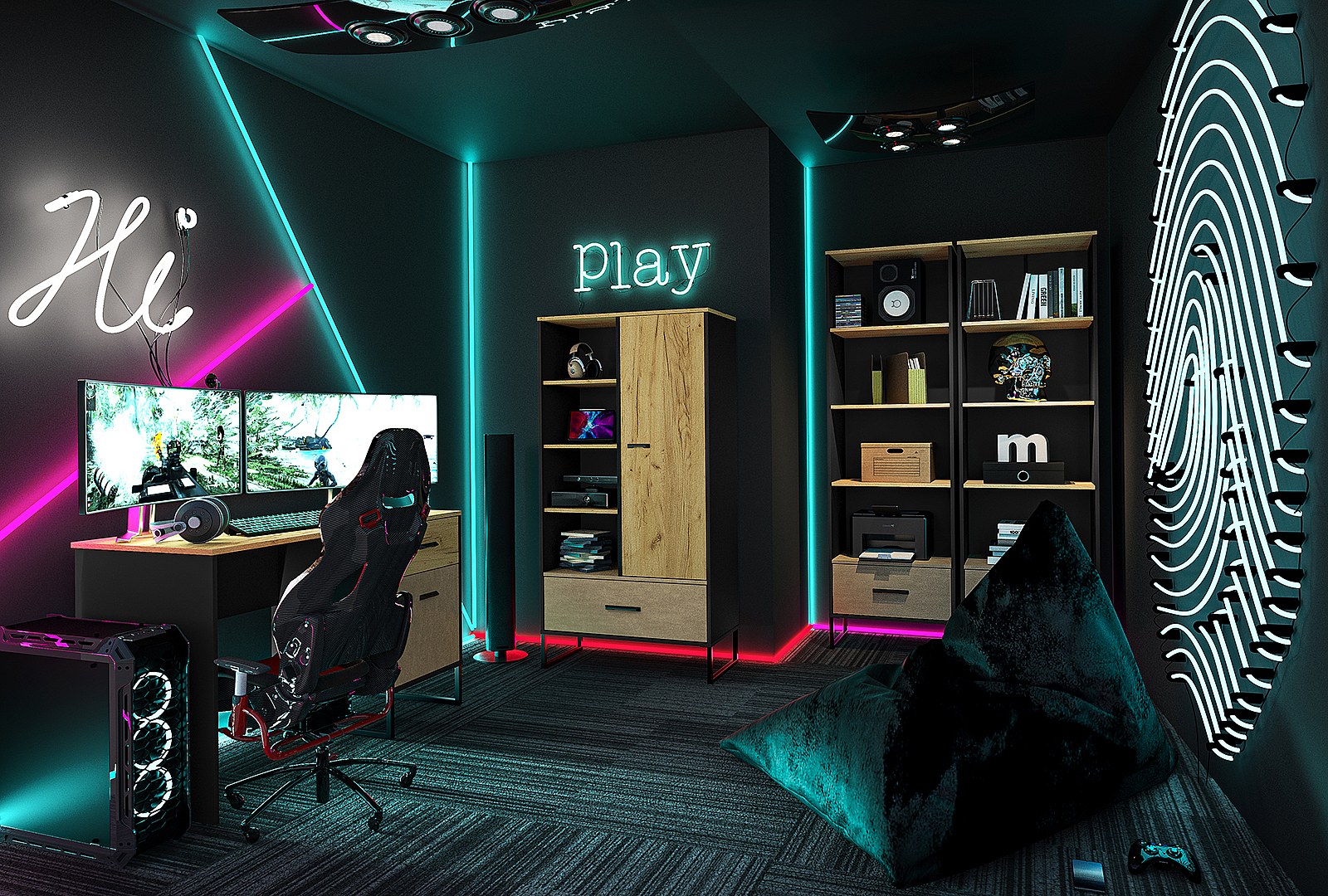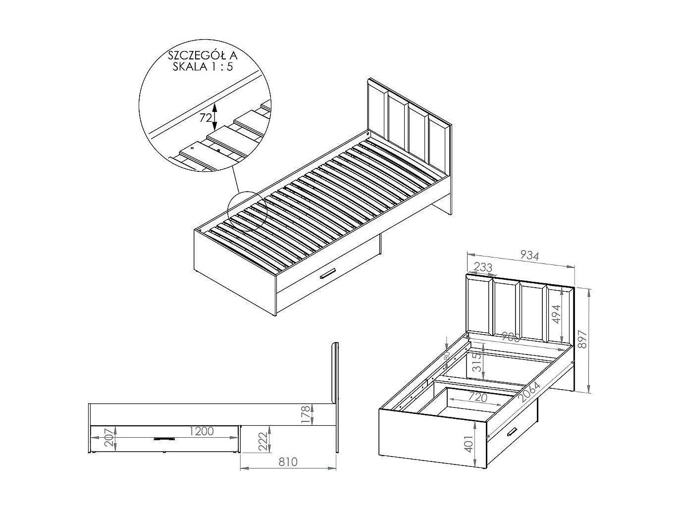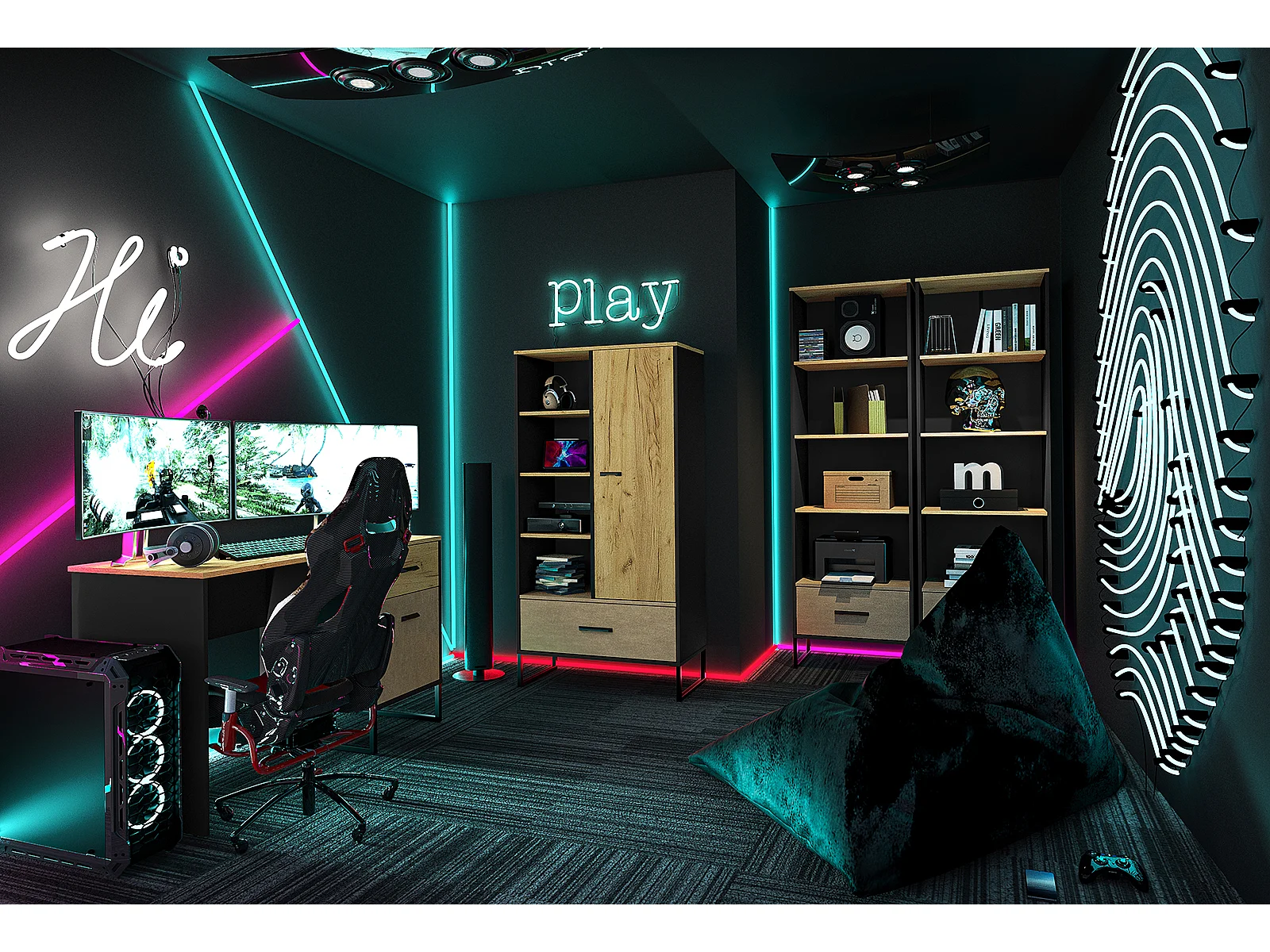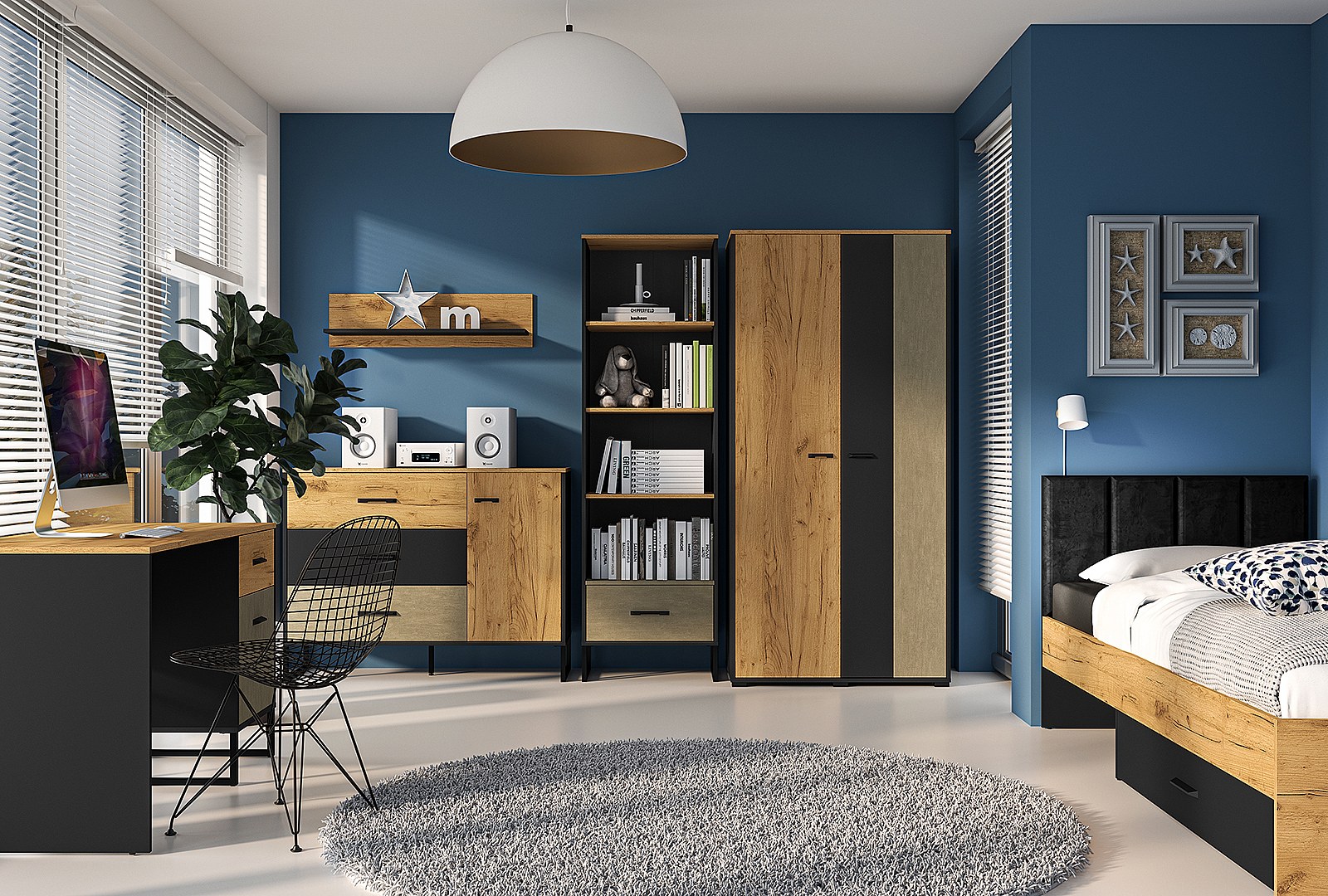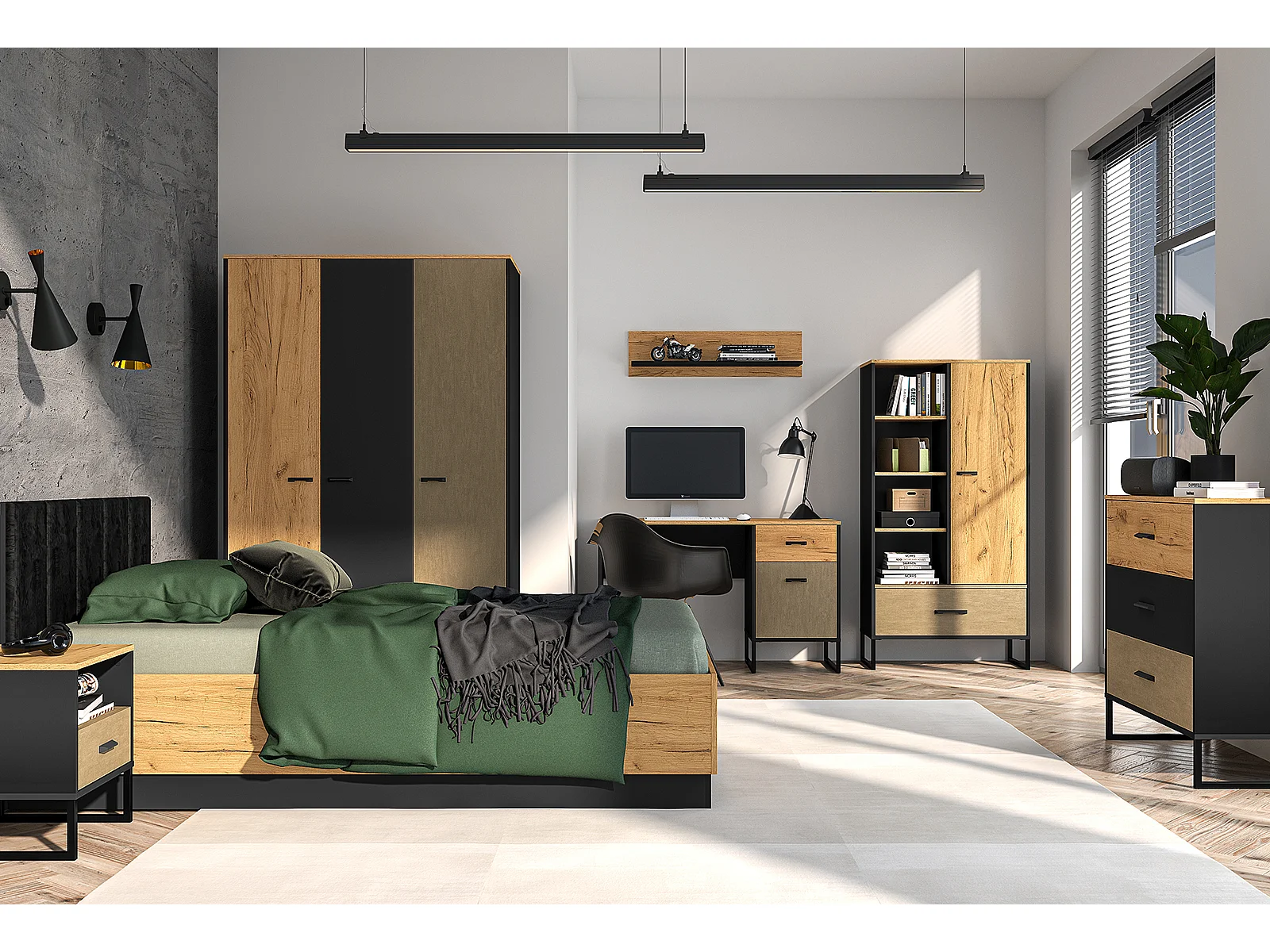 BETT Colt schwarz / Craft Gold Eiche 93 / 207 / 90cm