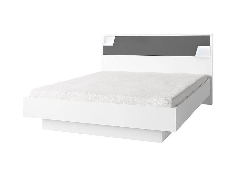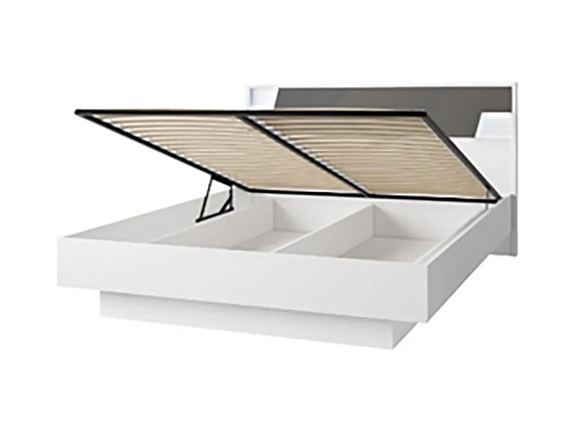 Bett FULMO 160 cm mit Stauraum - Farbe Weiß und Betongrau-Finish - 171 x 92 x 201 cm