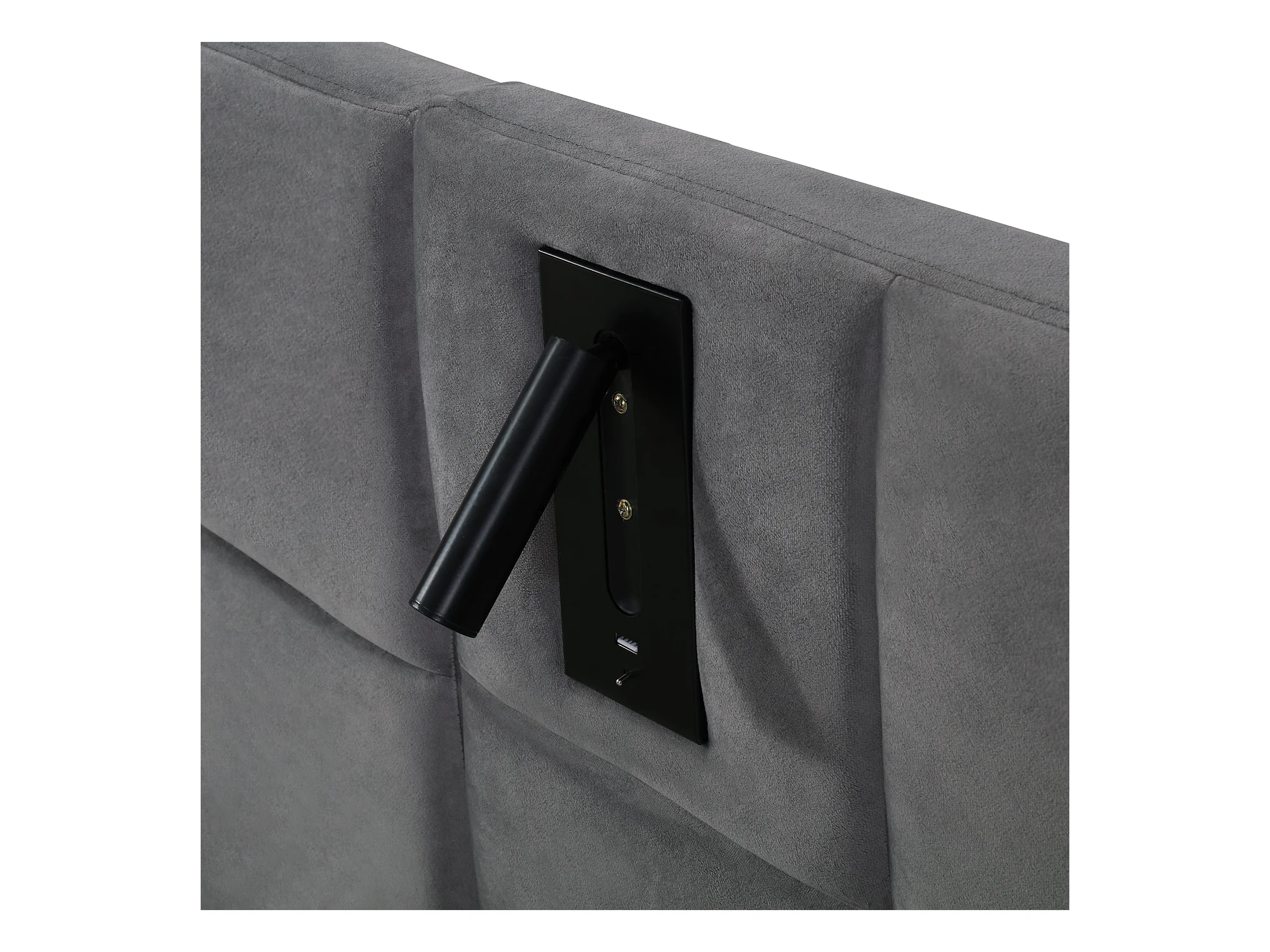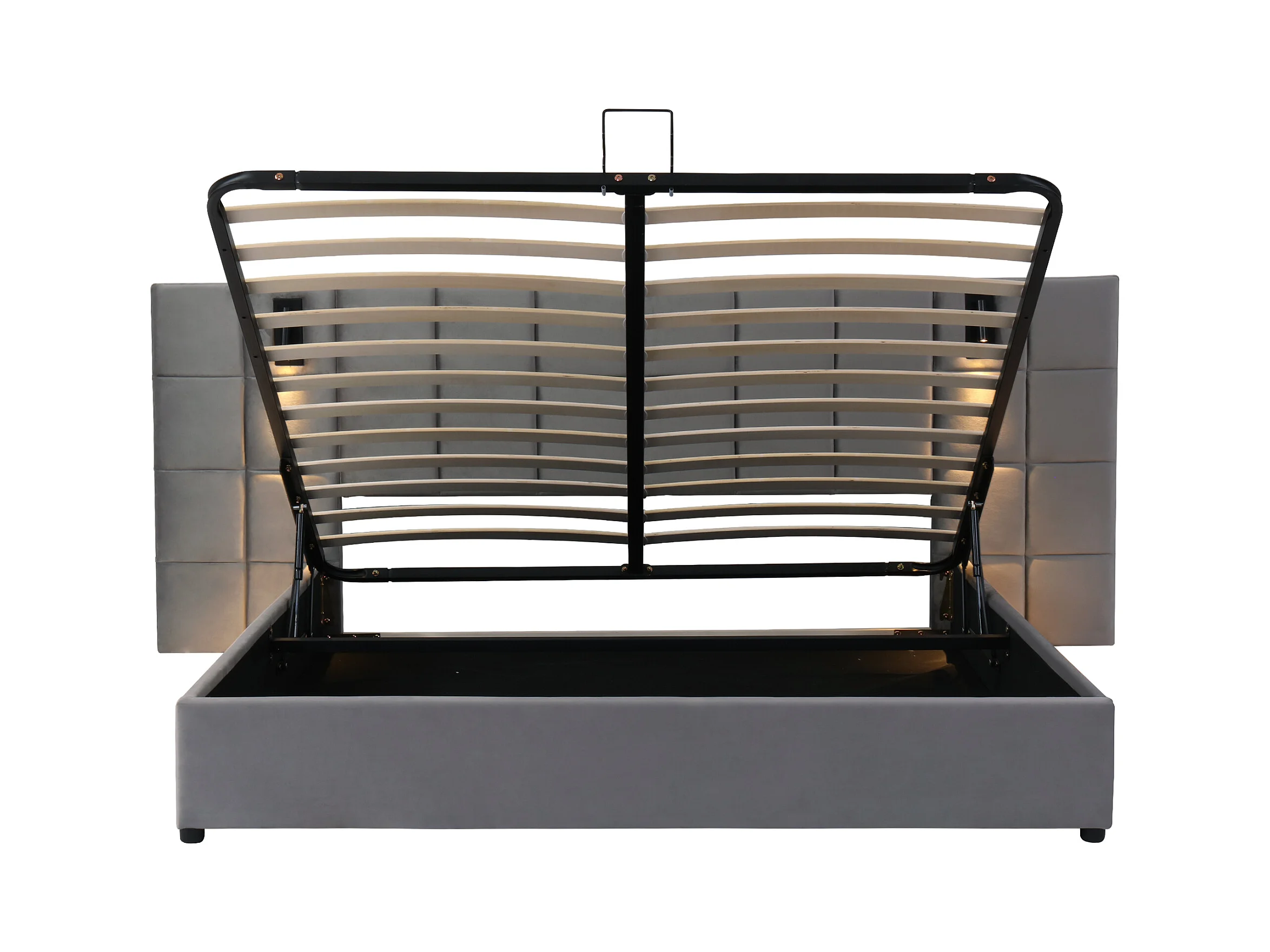 Samtbett mit Stauraum – 180 x 200 cm – mit LED und Ladeanschluss – Grau (Nachttisch nicht im Lieferumfang enthalten)