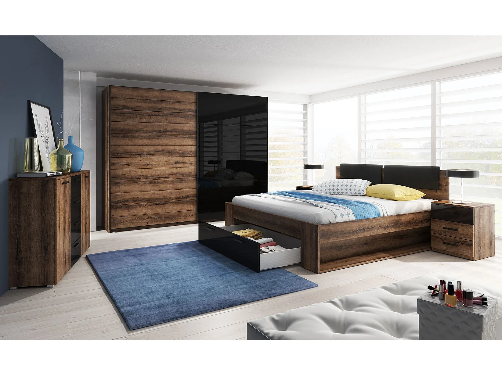 BETT Granada Monastery Eiche / Schwarz Hochglanz 186 / 205 / 94cm