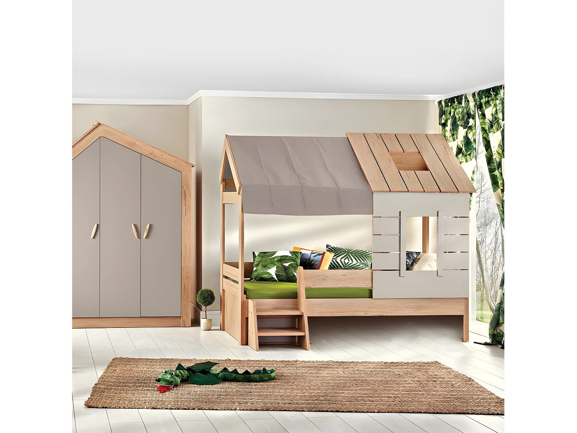 Bett Häuschen grau 90x200cm