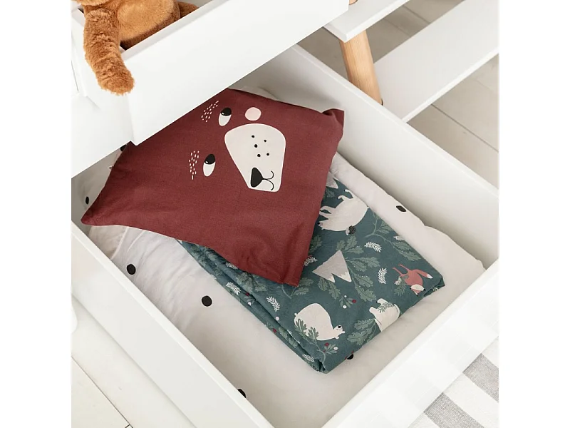 Bett Häuschen mit Tafel + 1 Schublade MDF weiß 90x200cm