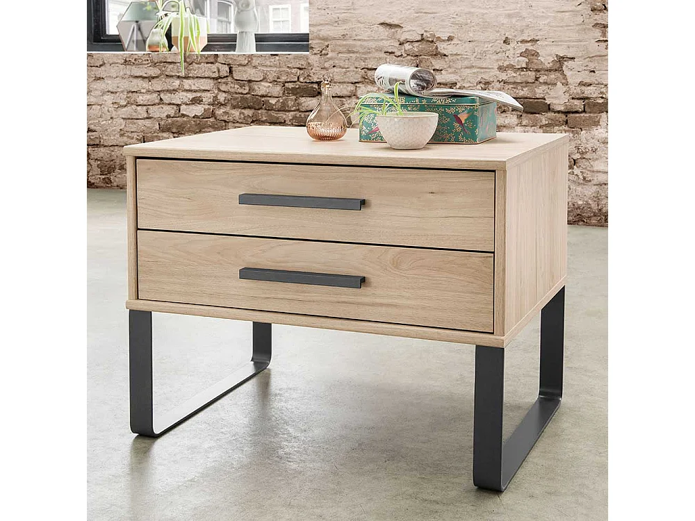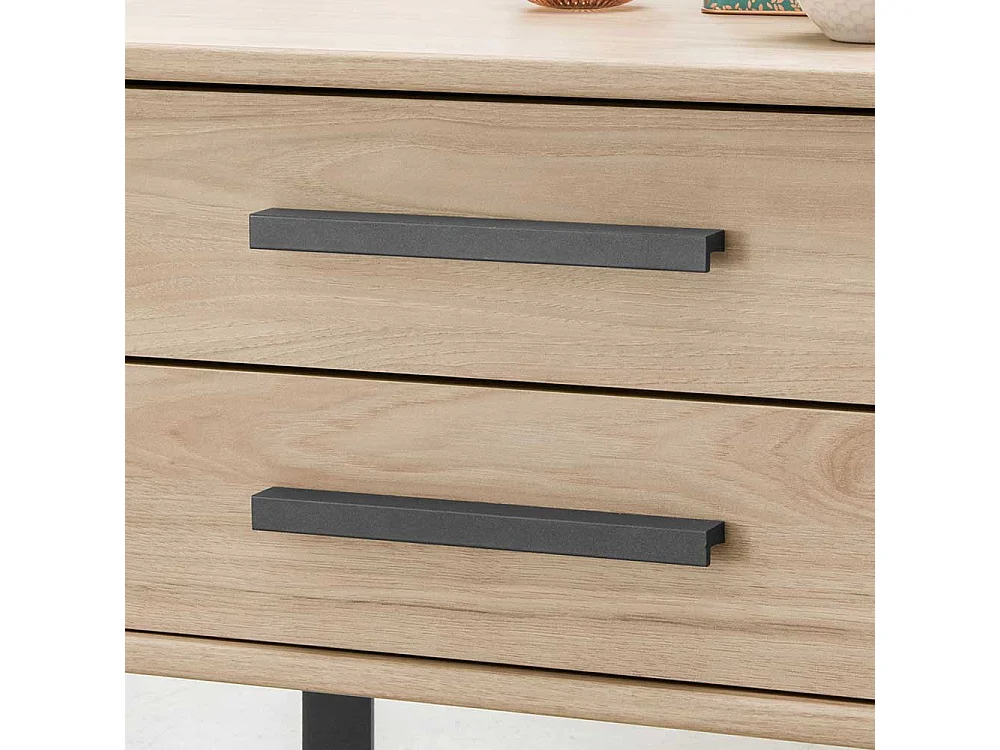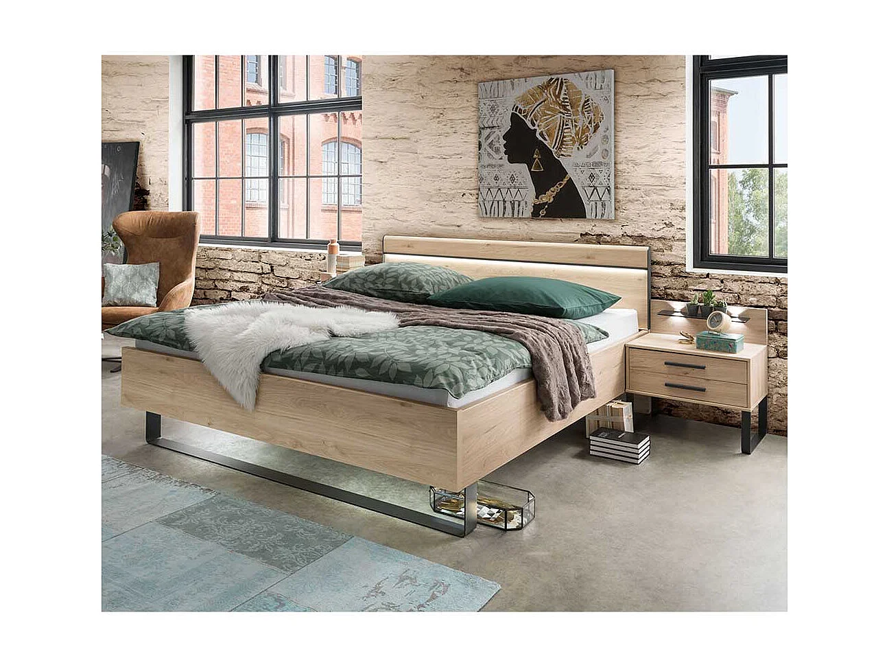 Bett in Eichefarben und Dunkelgrau LED Beleuchtung (dreiteilig)