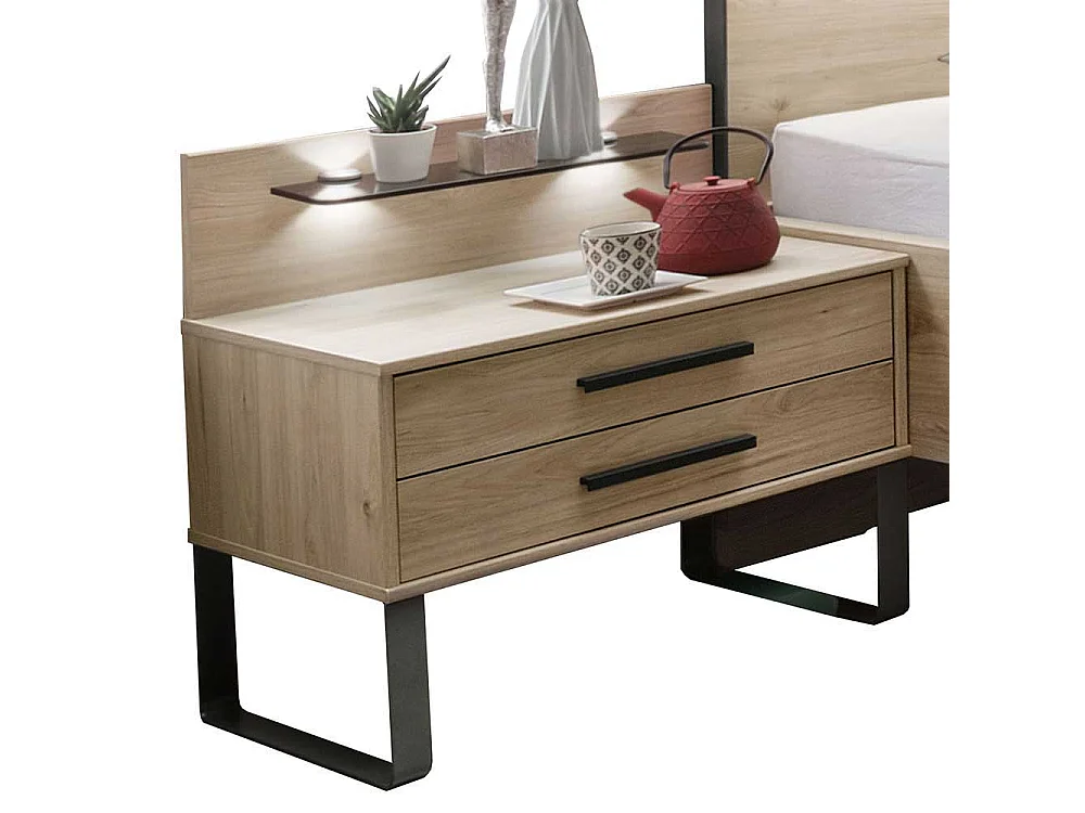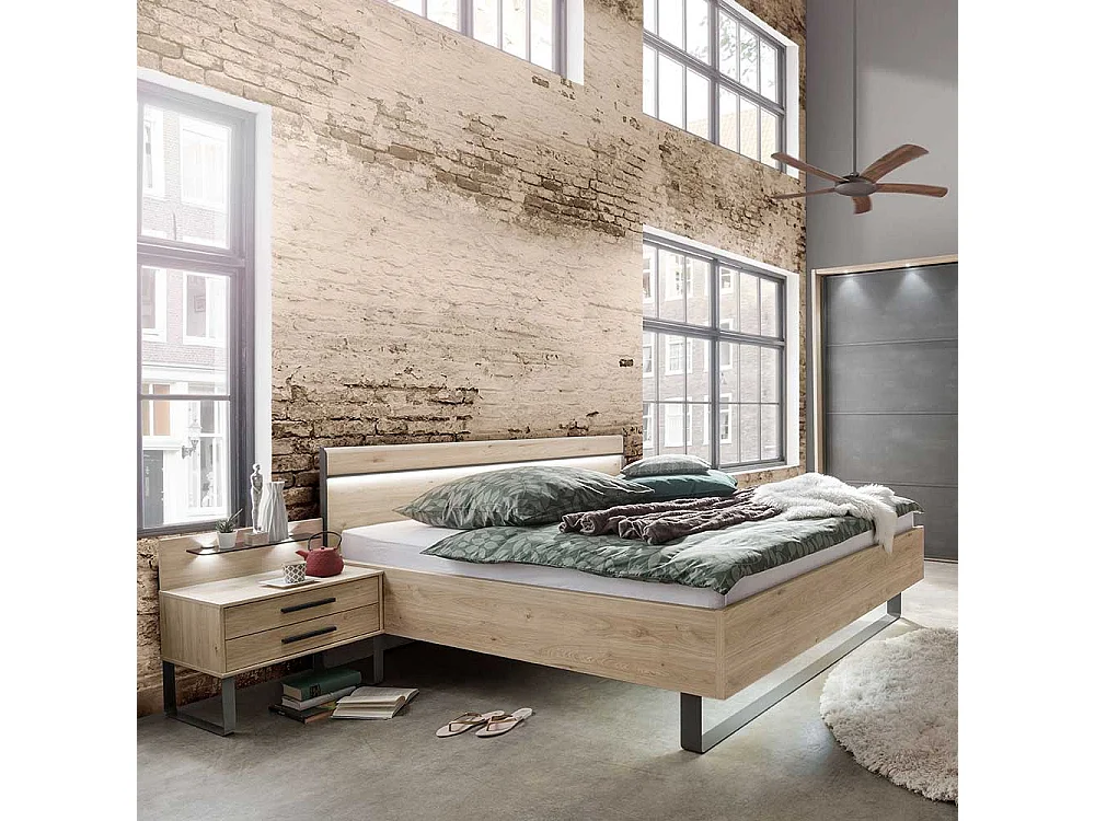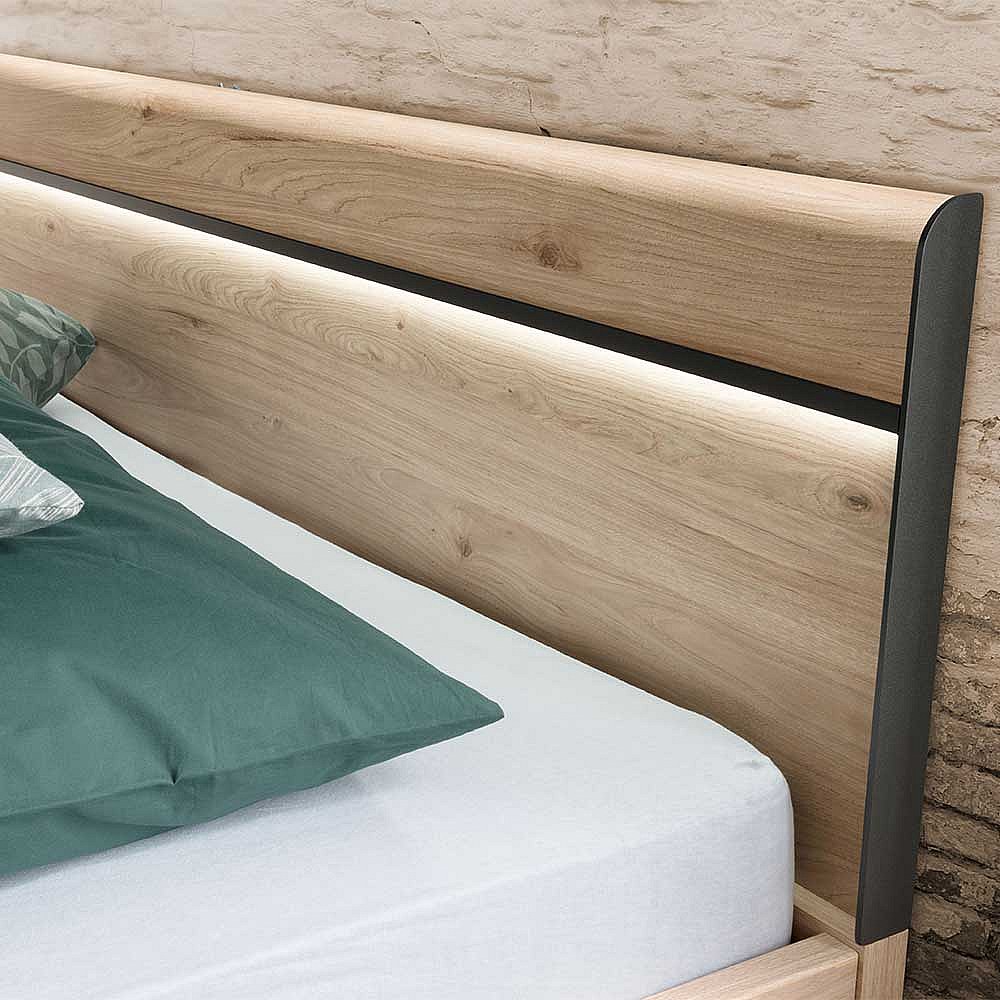 Bett in Eichefarben und Dunkelgrau LED Beleuchtung (dreiteilig)
