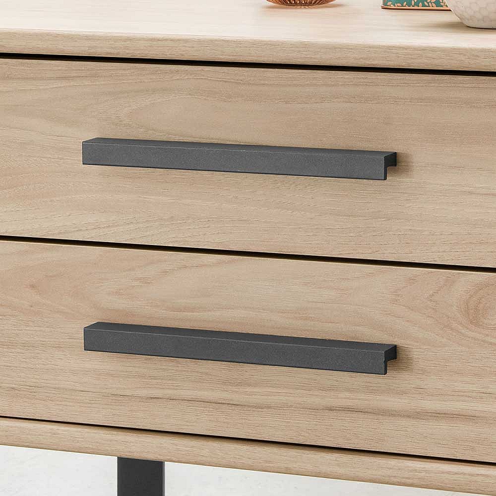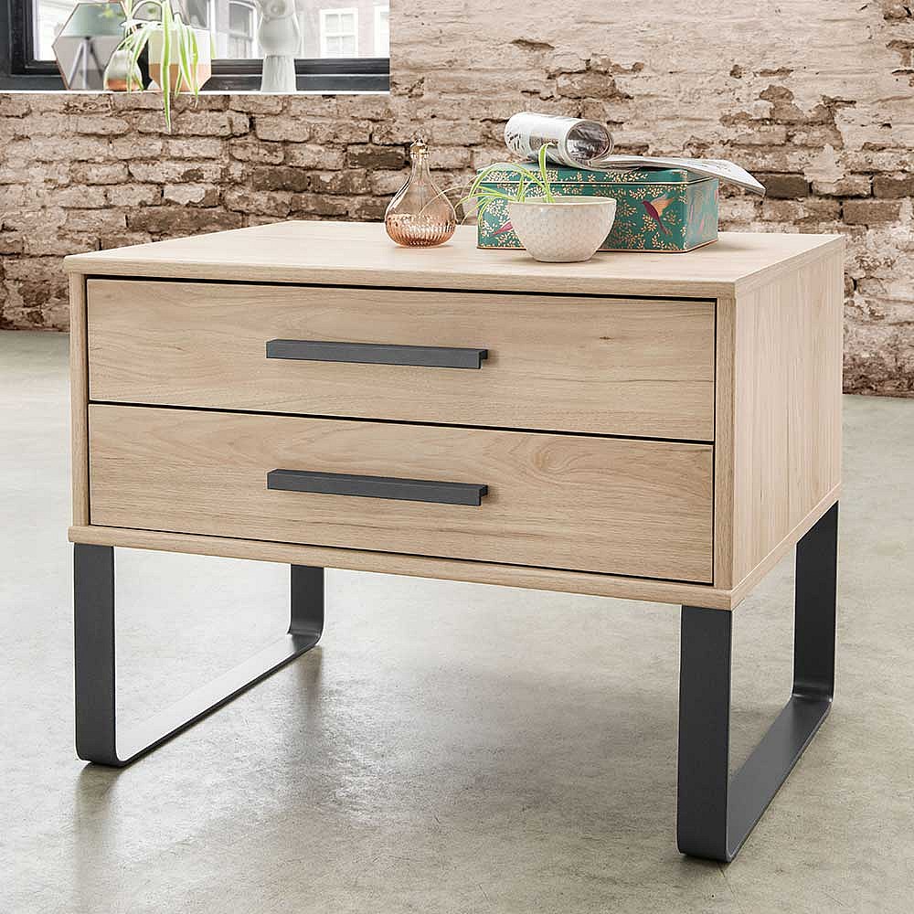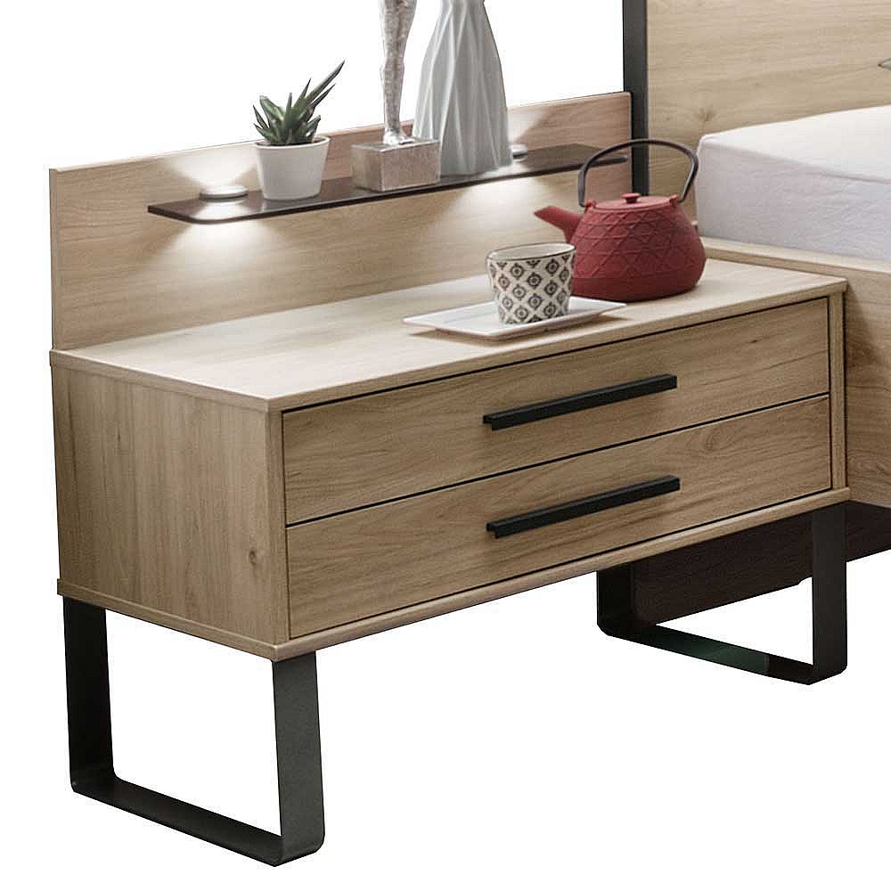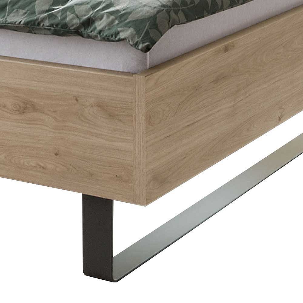 Bett in Eichefarben und Dunkelgrau LED Beleuchtung (dreiteilig)
