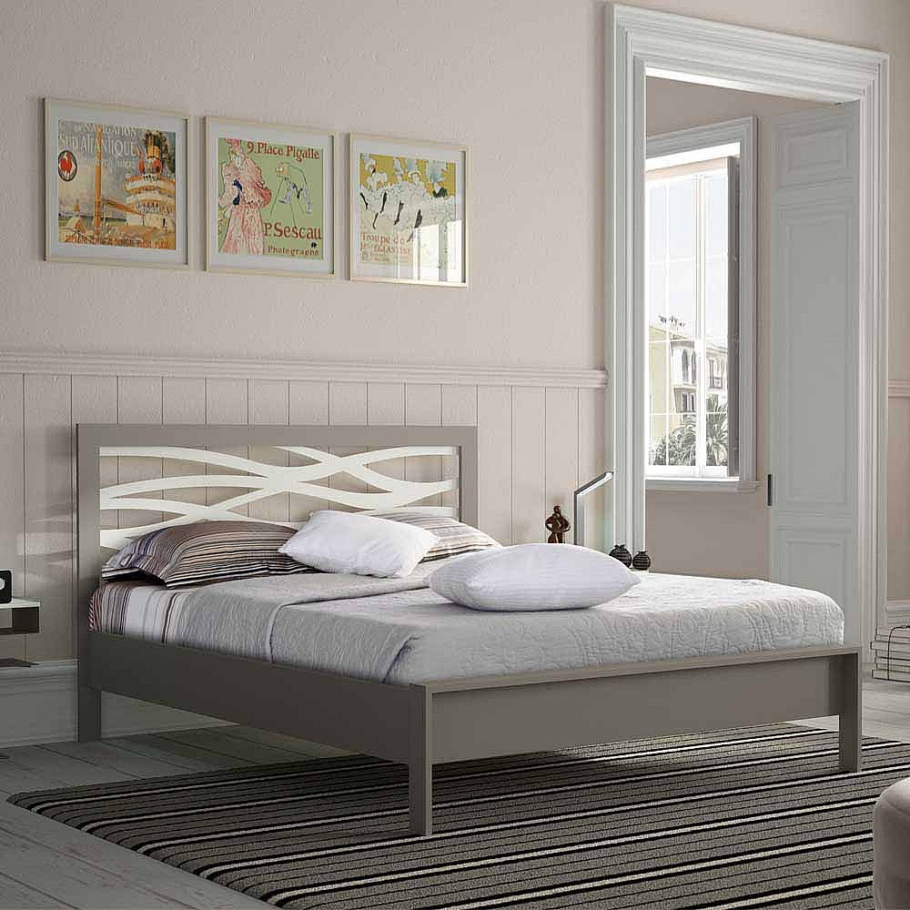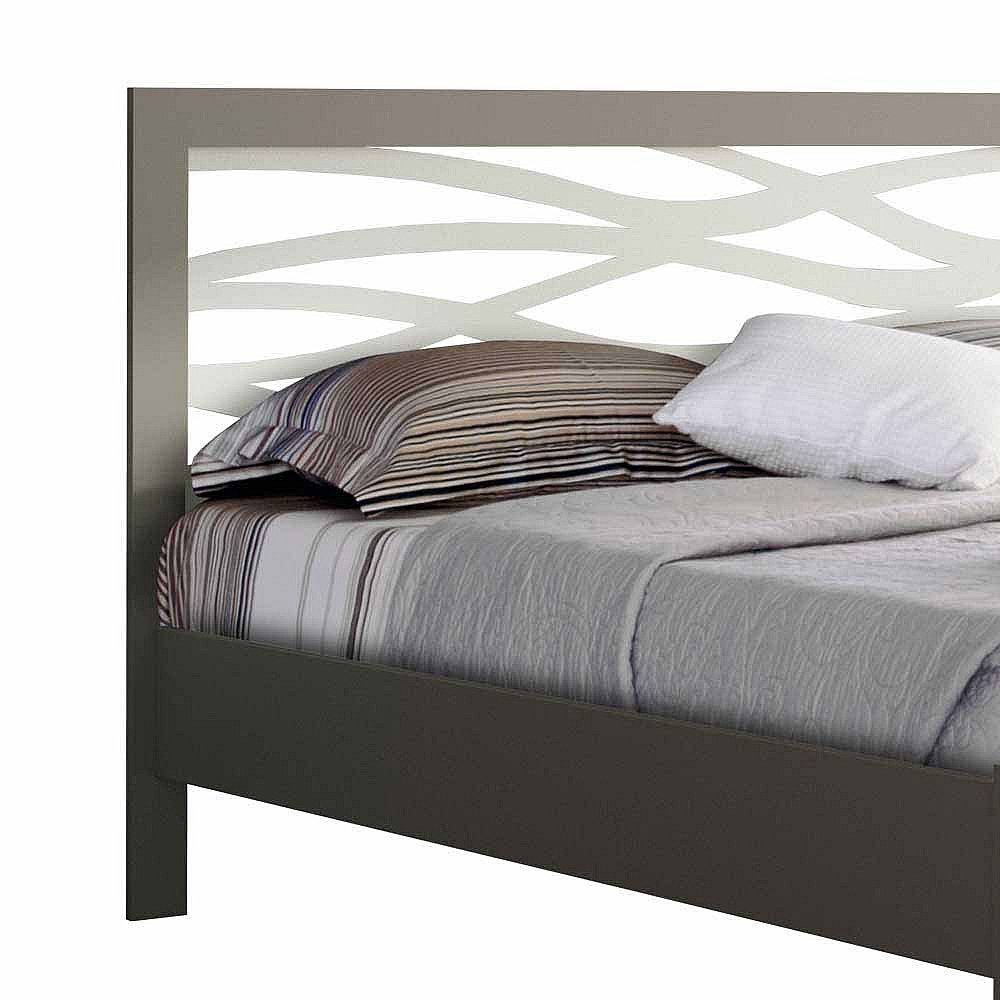 Bett in Grau Metall mit Eichenholz
