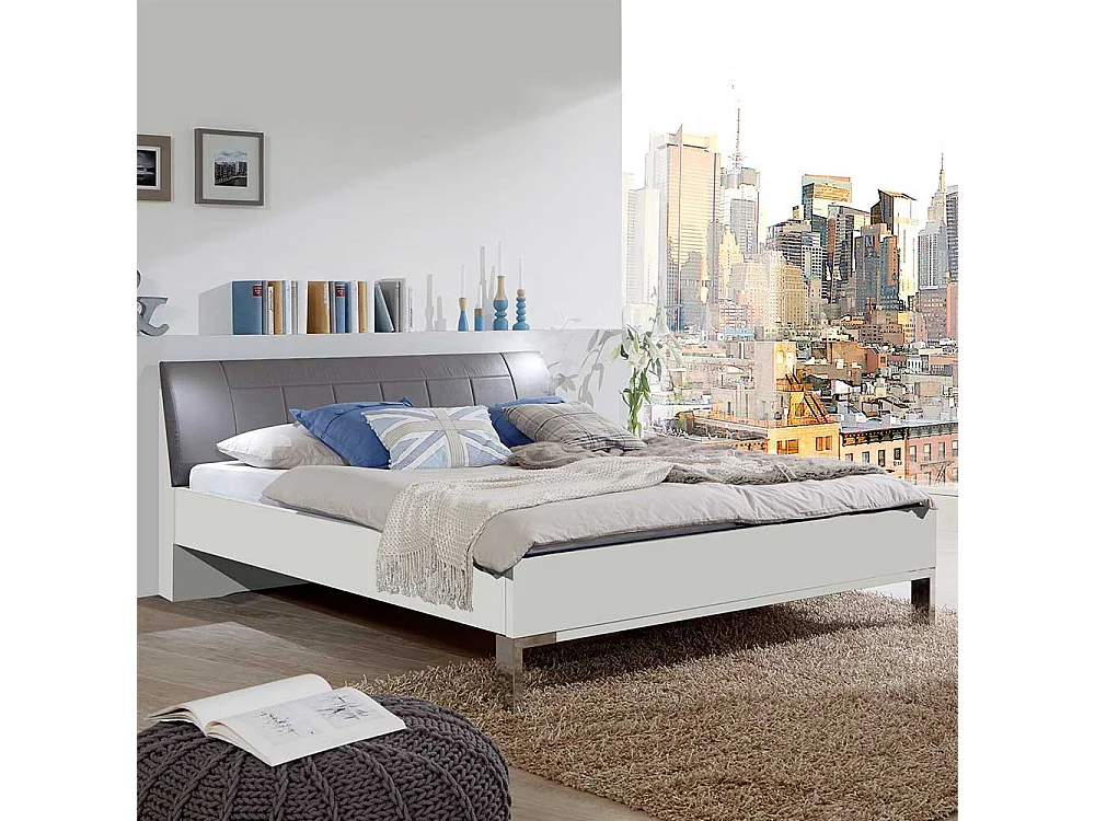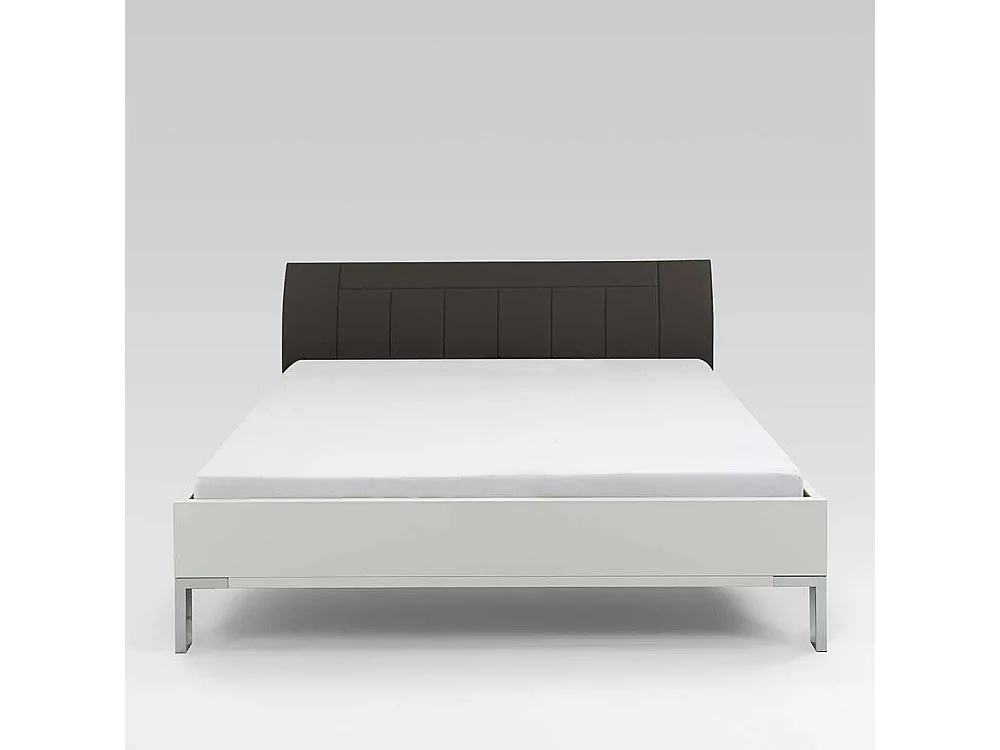 Bett in Polsterkopfteil in Grau Braun LED Beleuchtung