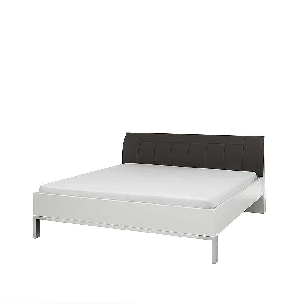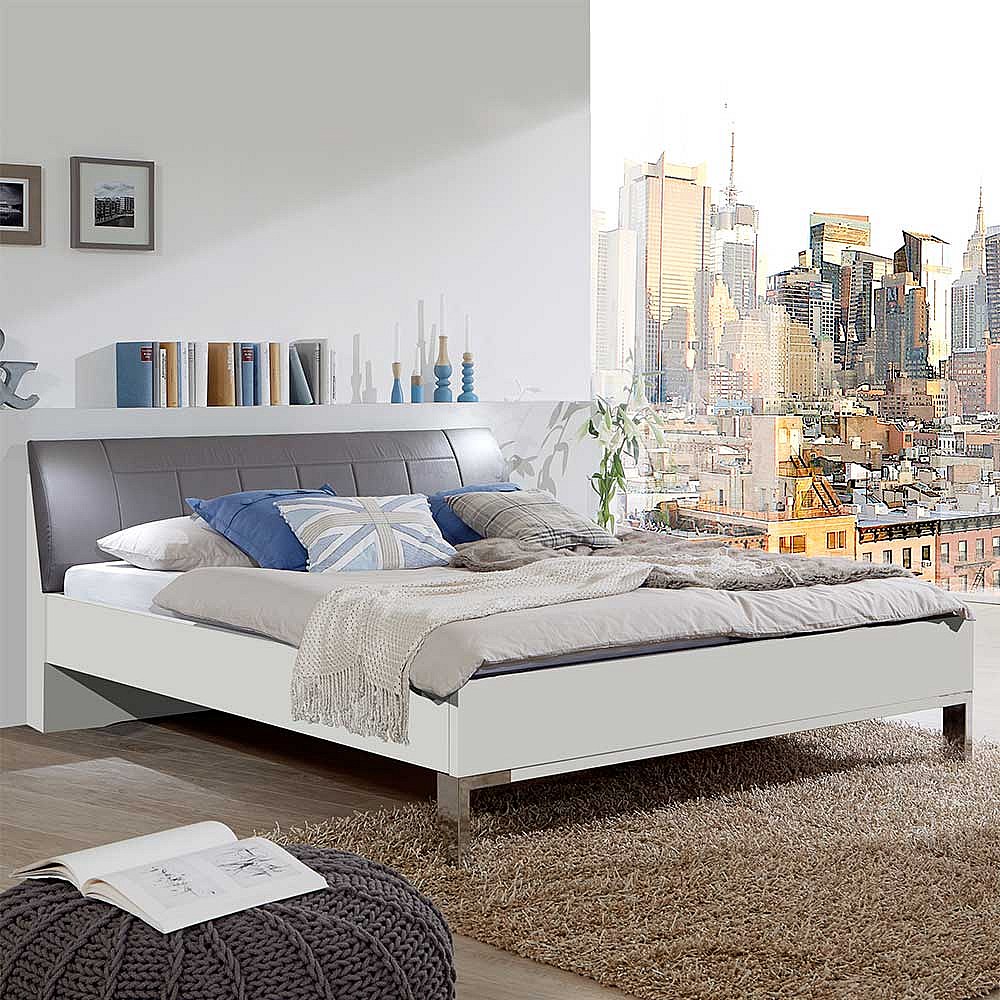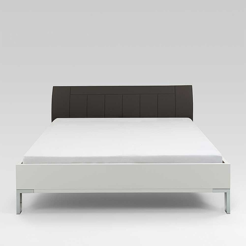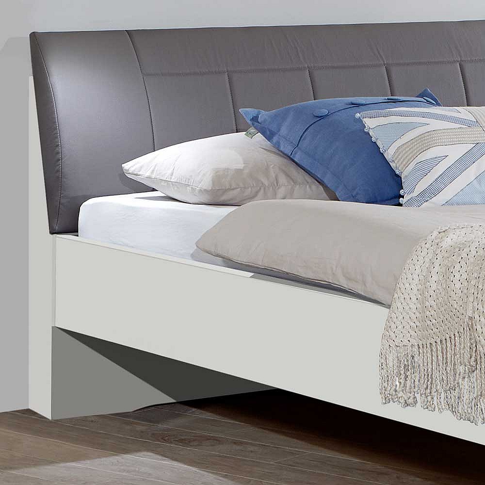 Bett in Polsterkopfteil in Grau Braun LED Beleuchtung