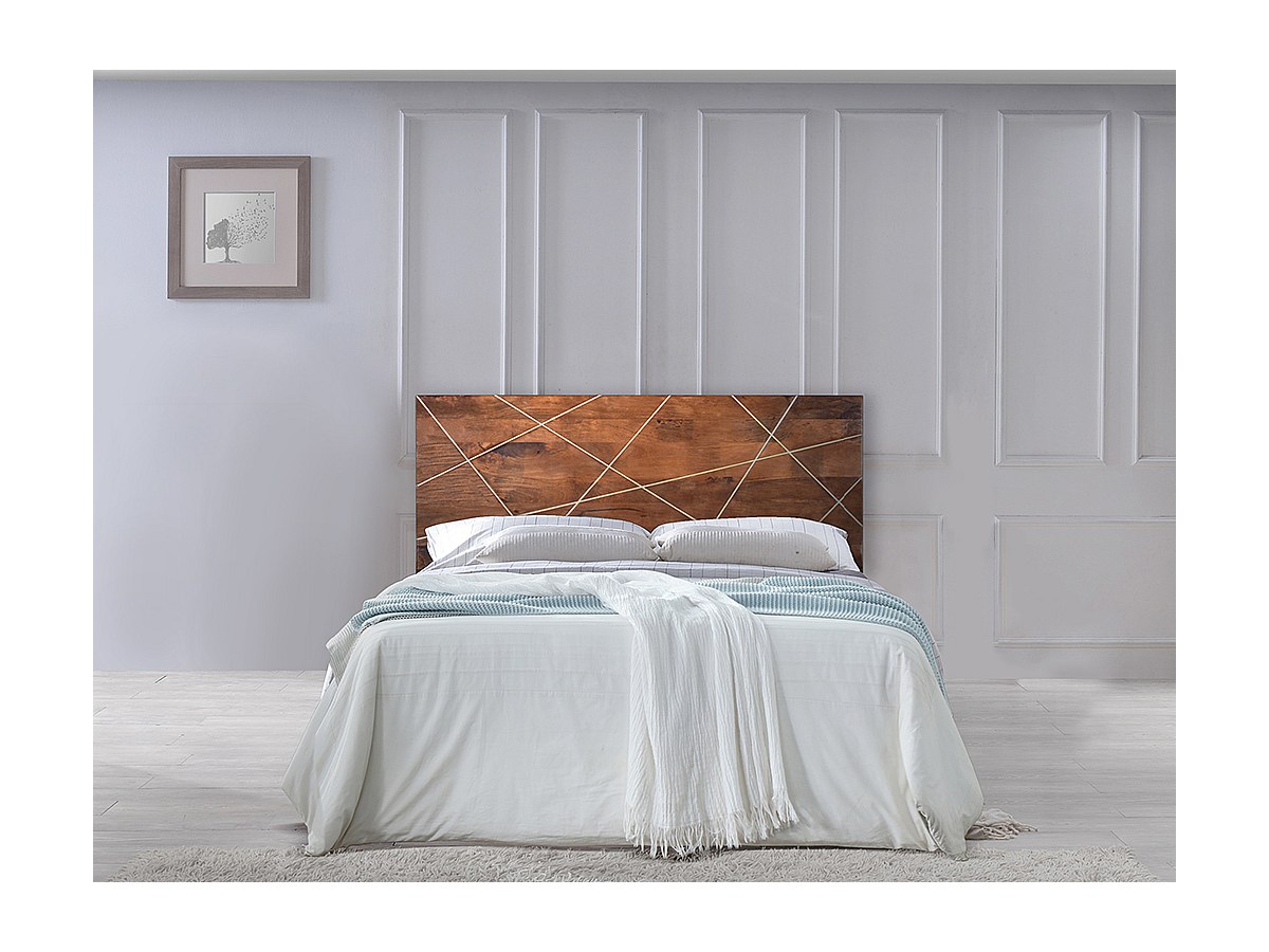 Bett-Kopfteil Art Déco MANGAIA - 160 cm - Mangoholz - Natur & Goldfarben