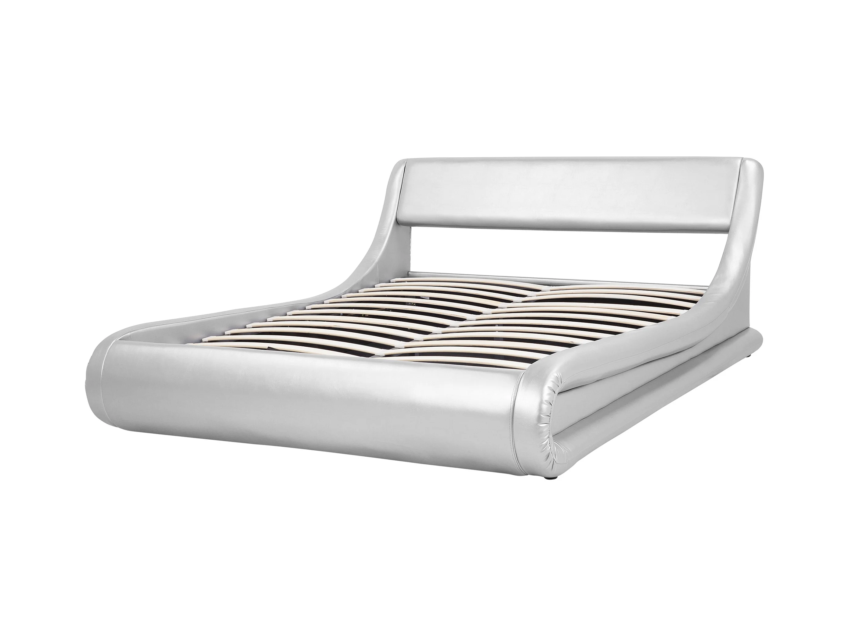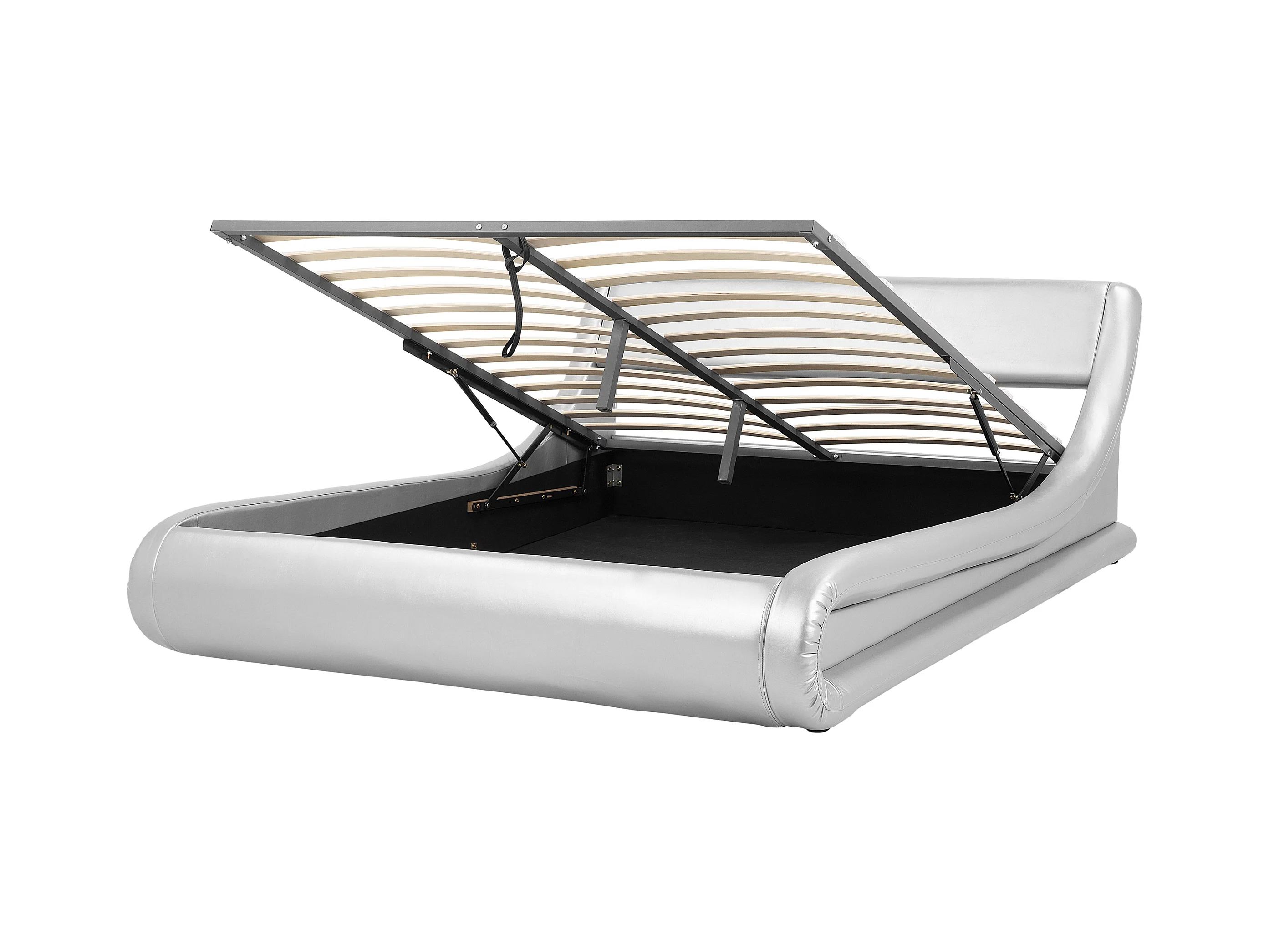 Modernes Bett aus Kunstleder in Silber 160 x 200 cm mit Bettkasen Avignon