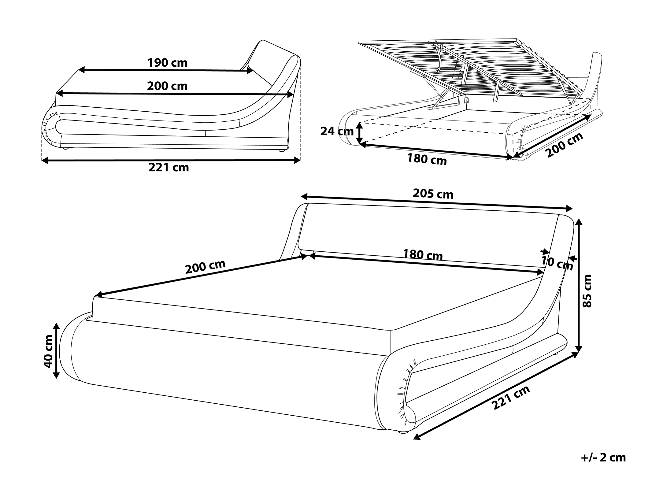 Modernes Bett aus Kunstleder in Silber 180 x 200 cm mit Bettkasen Avignon
