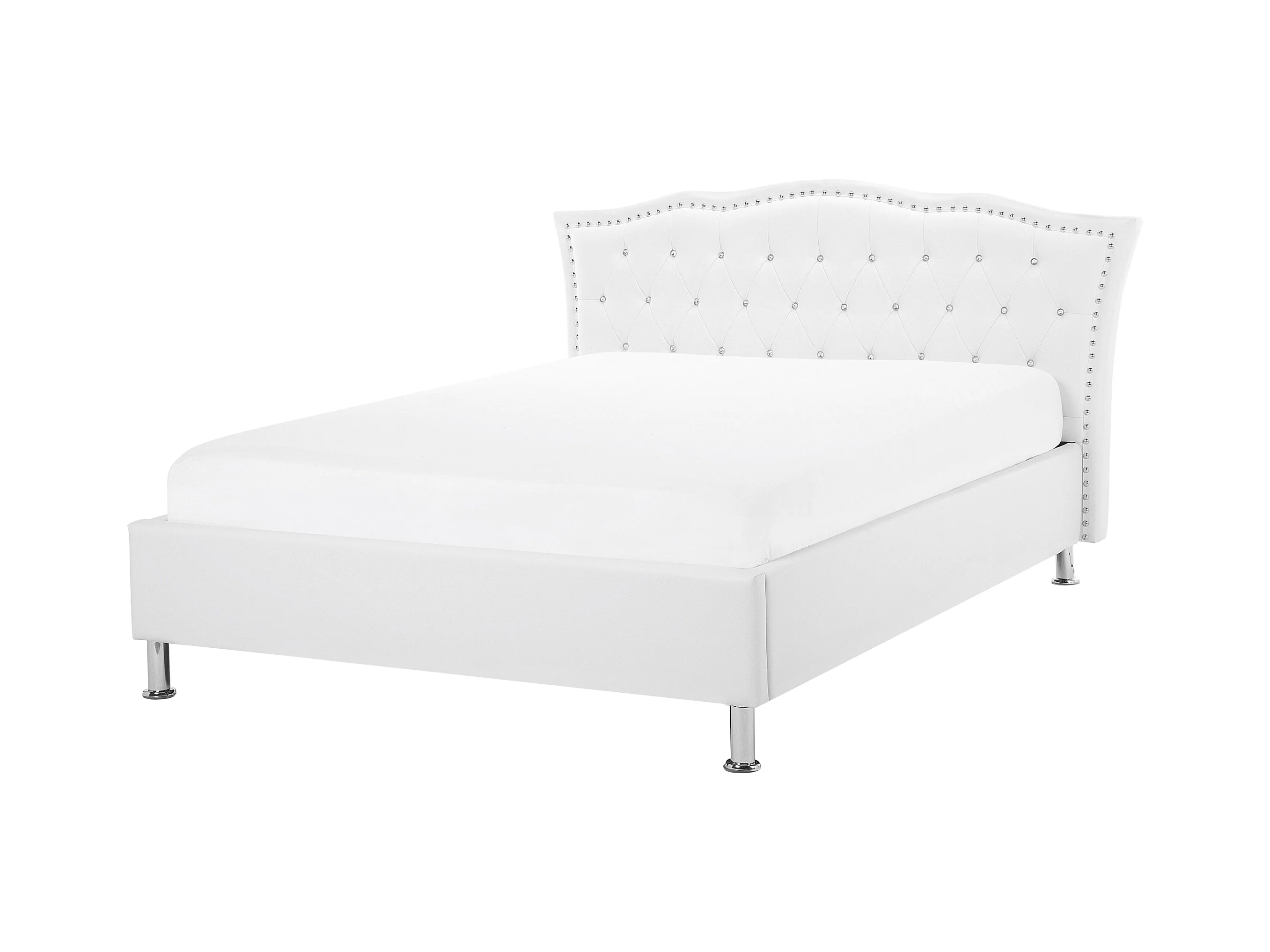 Glamouröses Bett weiß mit Bettkasten Kunstleder hochklappbar 140 x 200 cm Metz