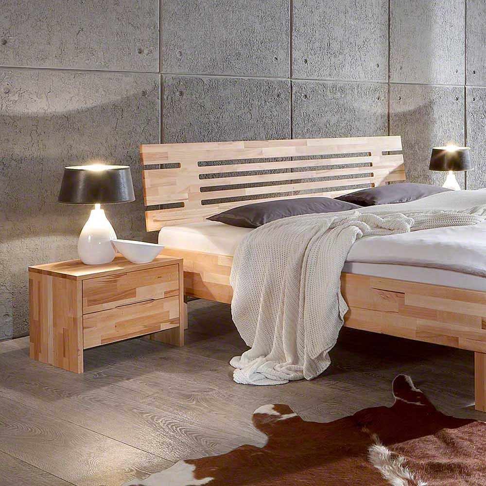 Bett mit 2 Nachtkonsolen Kernbuche Massivholz (dreiteilig)