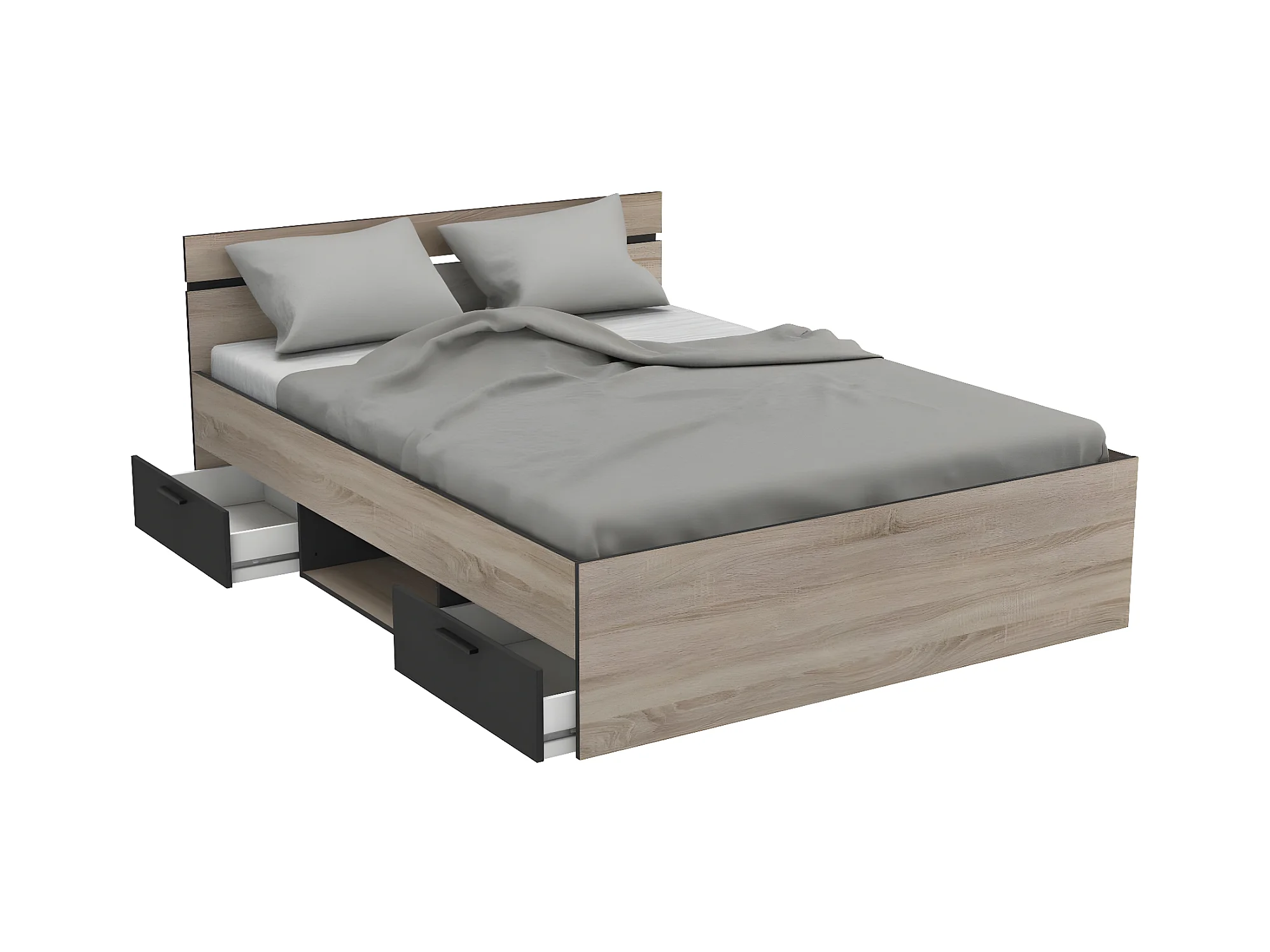Bett mit 2 Schubladen und 1 Nische - 140 cm x190 cm - Michigan
