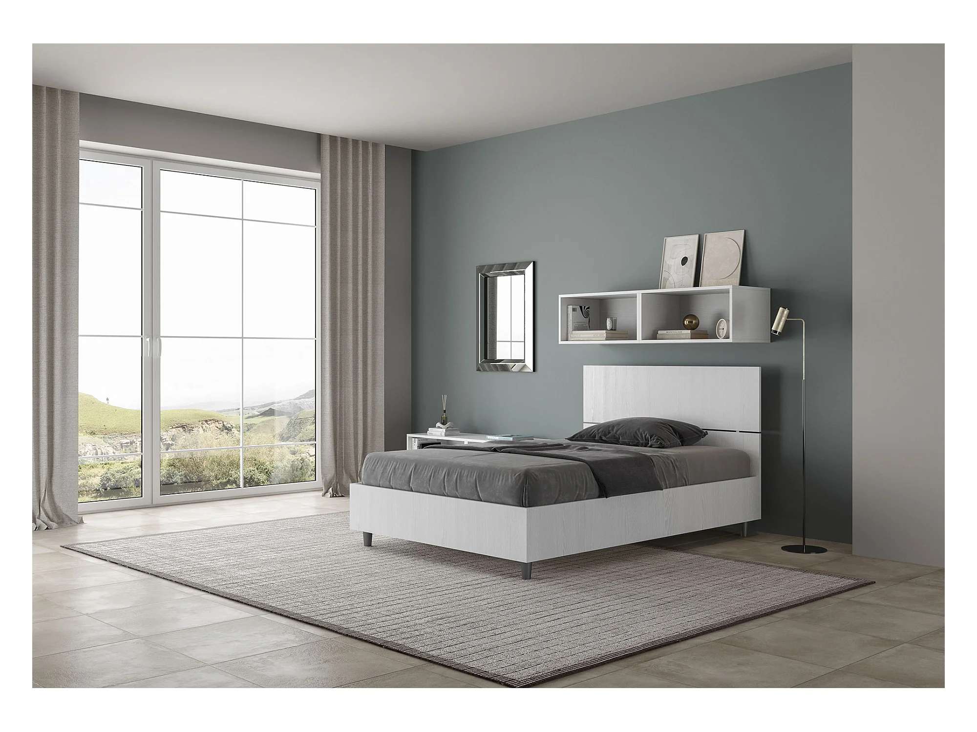 Queensize-Bett mit Container 120x190 geradem Kopfteil in weißer Esche Demas