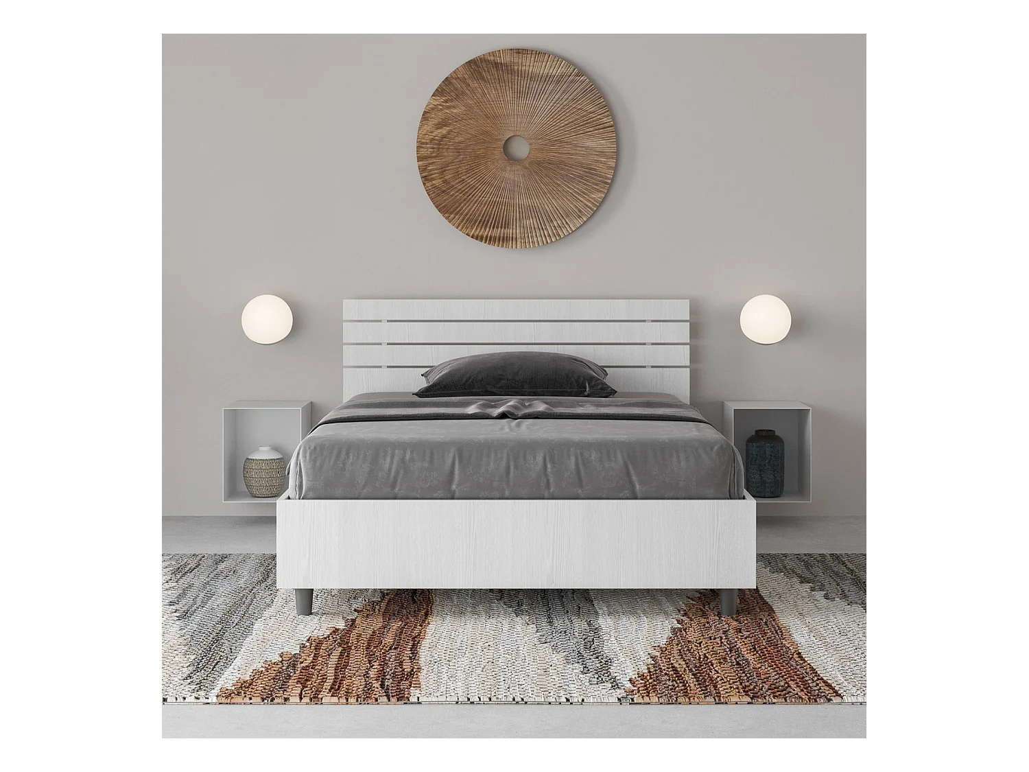 Bett mit Stauraum, 120 x 190 cm, gerades Kopfteil mit Ankel-Latten aus weißer Esche
