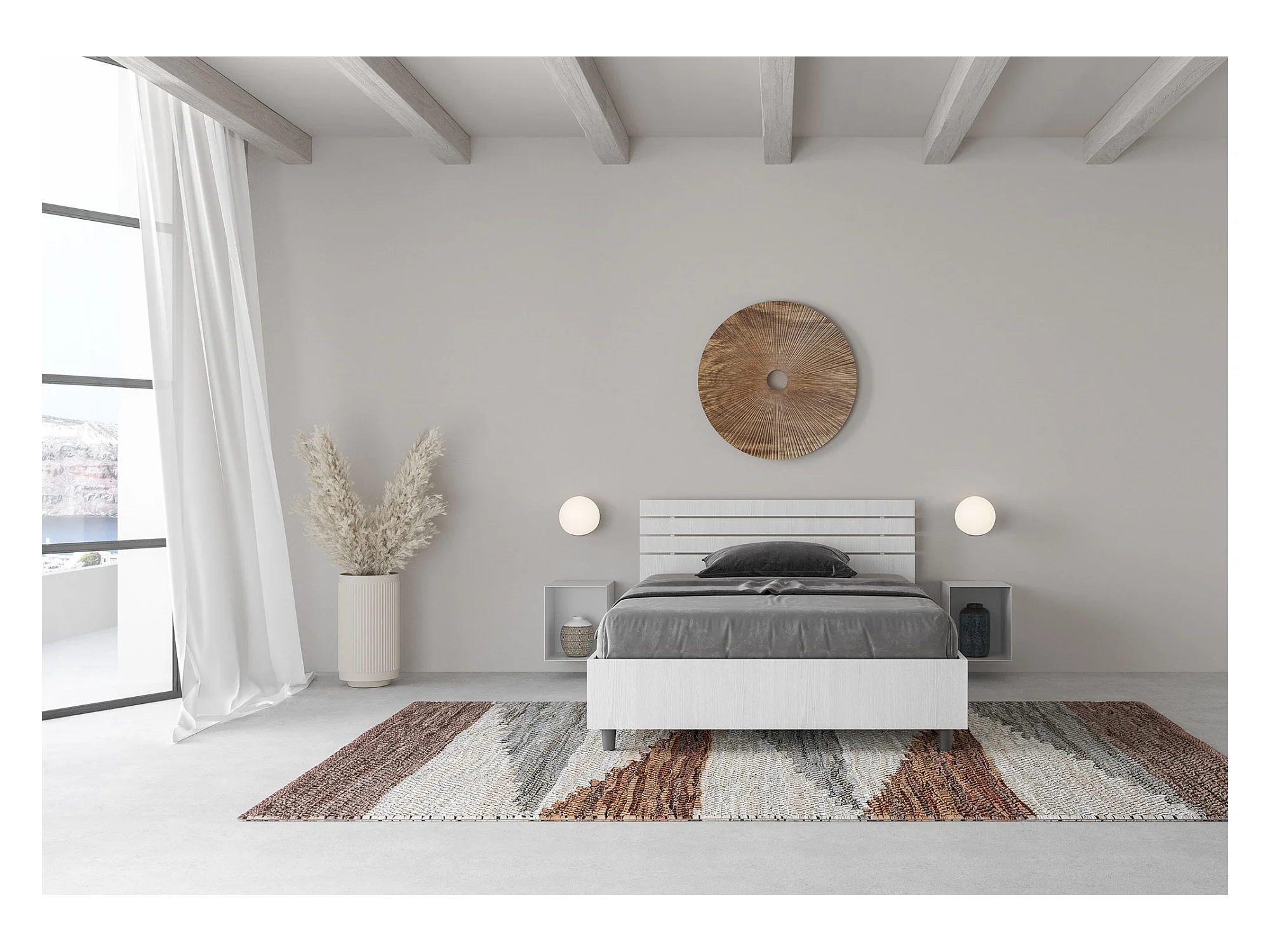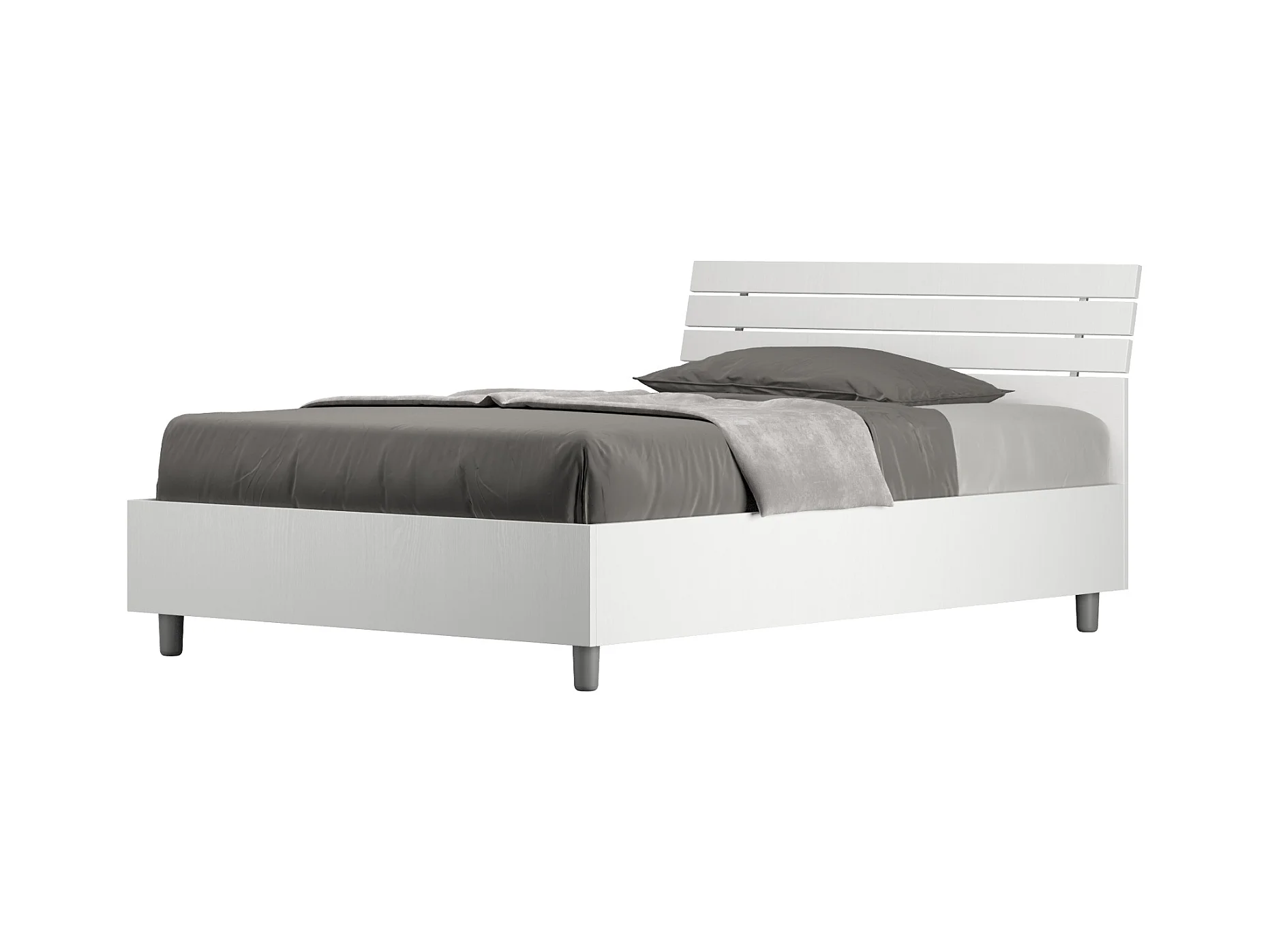 Bettkasten 120x200 mit geneigtem Kopfteil und Ankel-Latten aus weißer Esche
