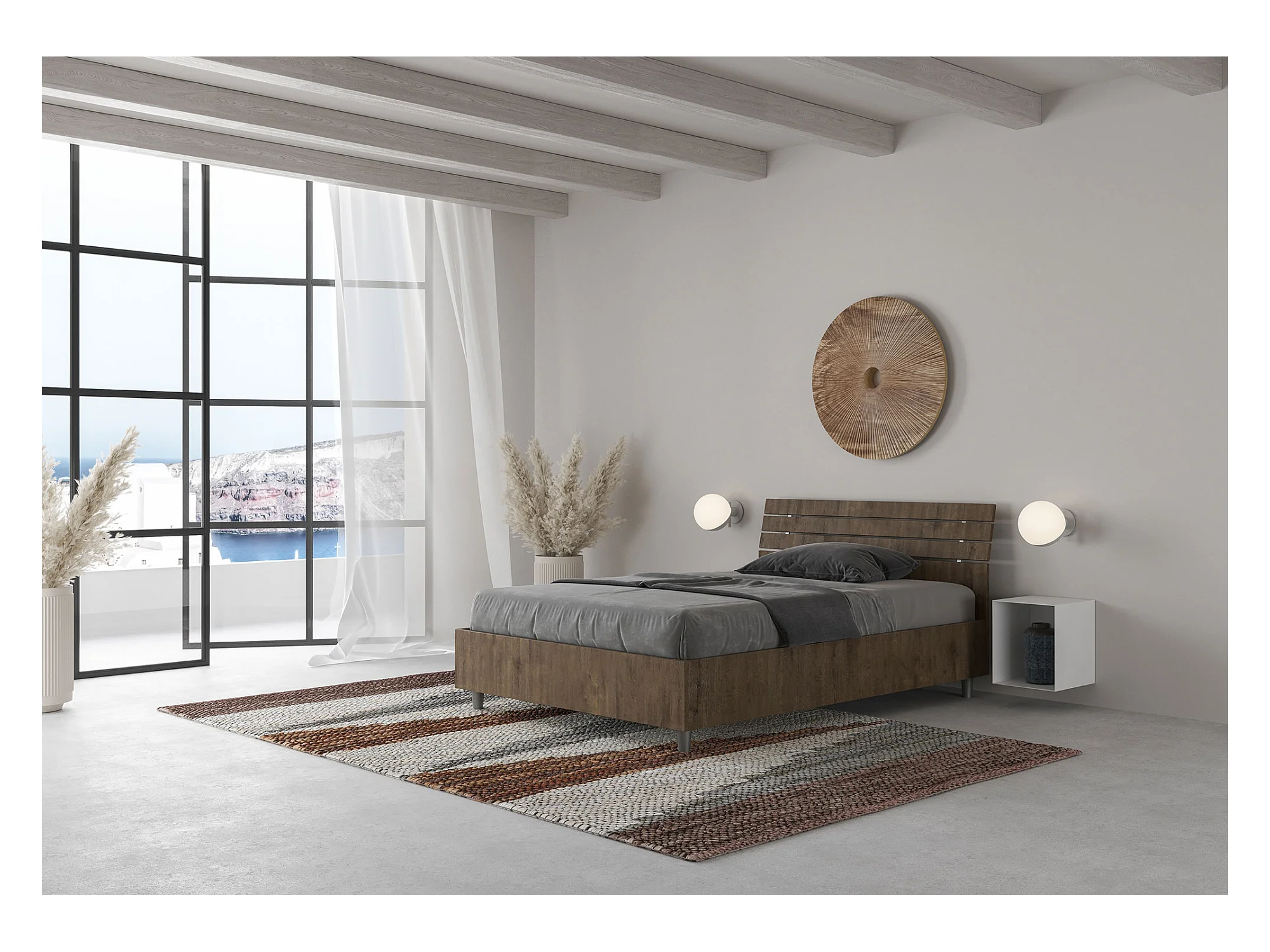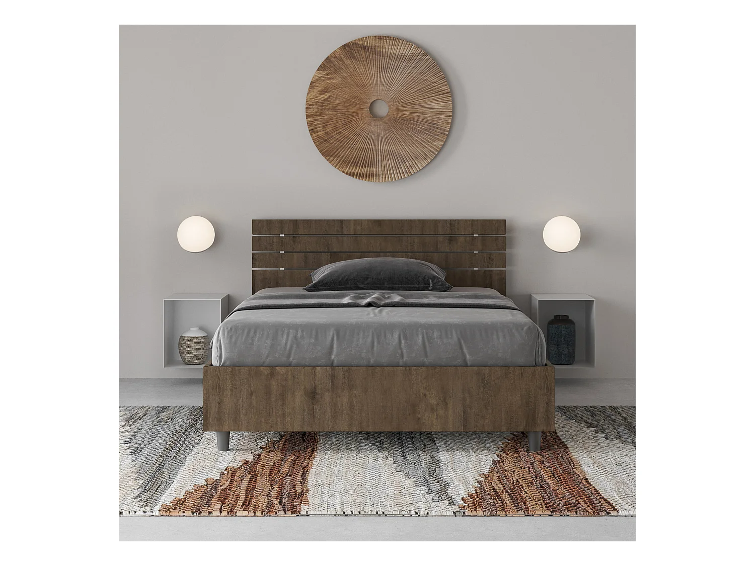 Bettkasten 120x200 mit geneigtem Kopfteil und Lattenrost aus Ankel-Walnussholz