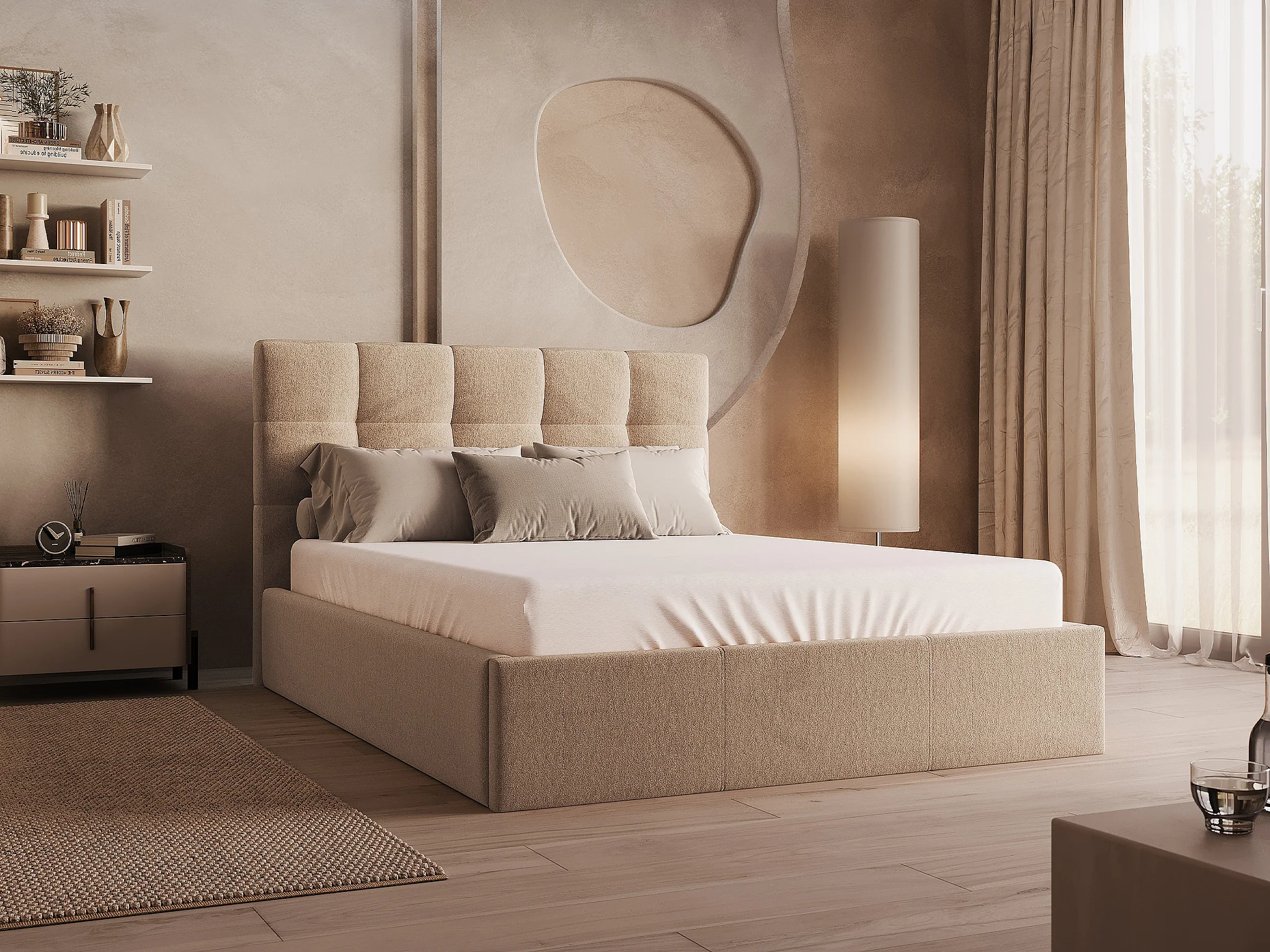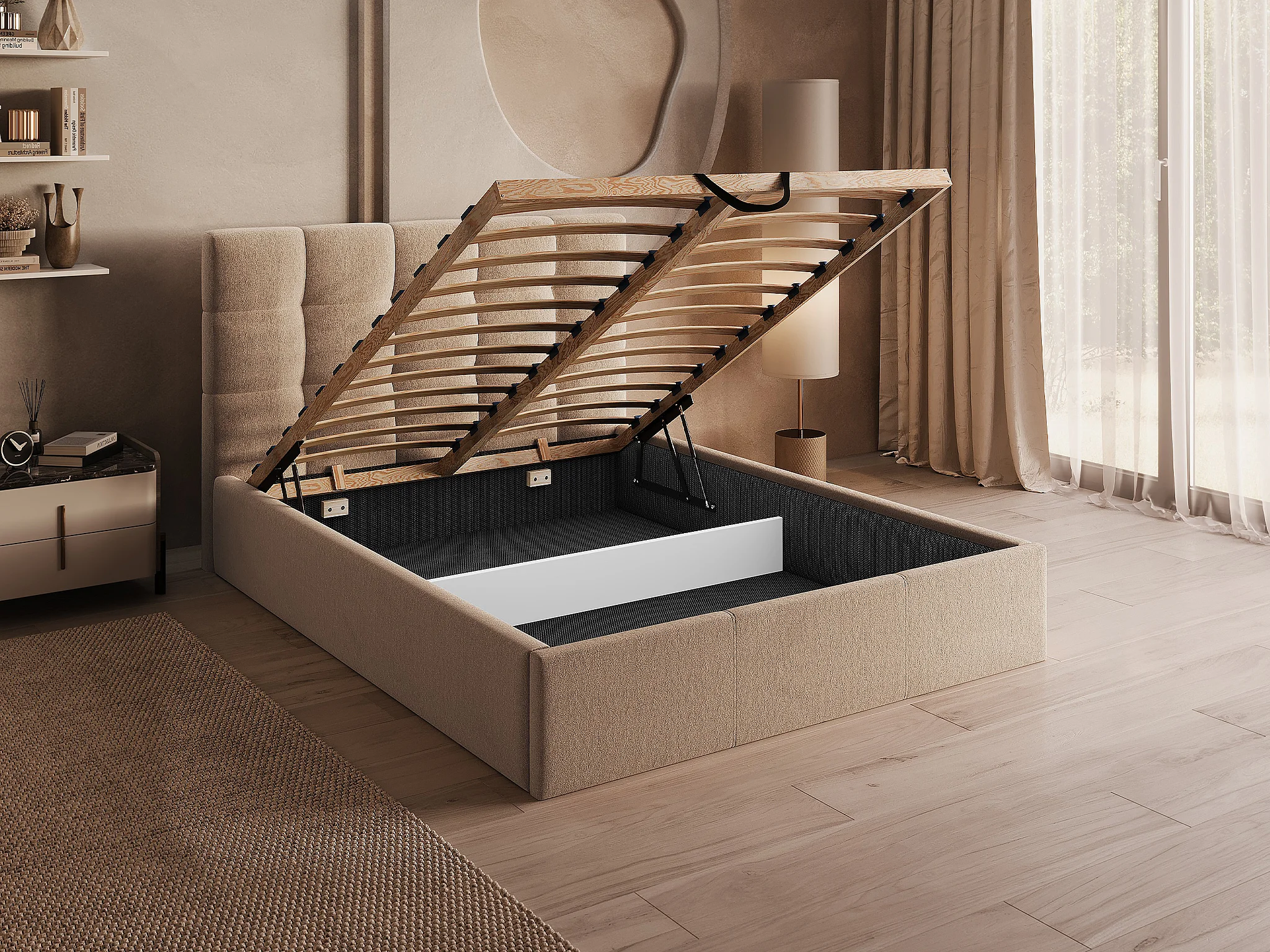 Bett mit Bettkasten - 140 x 190 cm - Samt - Beige - MIRDAL von Pascal Morabito