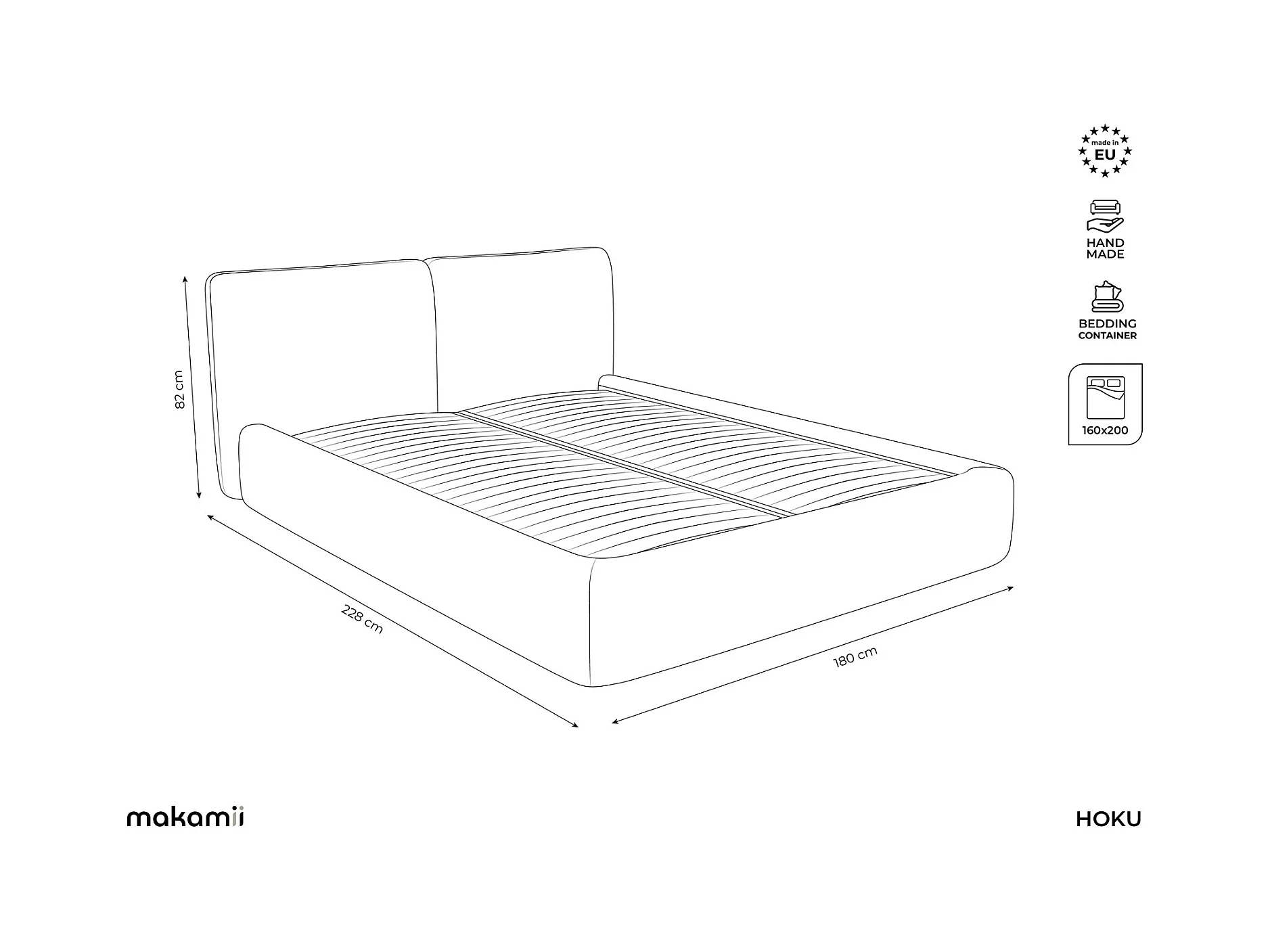 Bett mit Bettkasten - 180 x 228 - Chenille - Hellgrau - HOKU